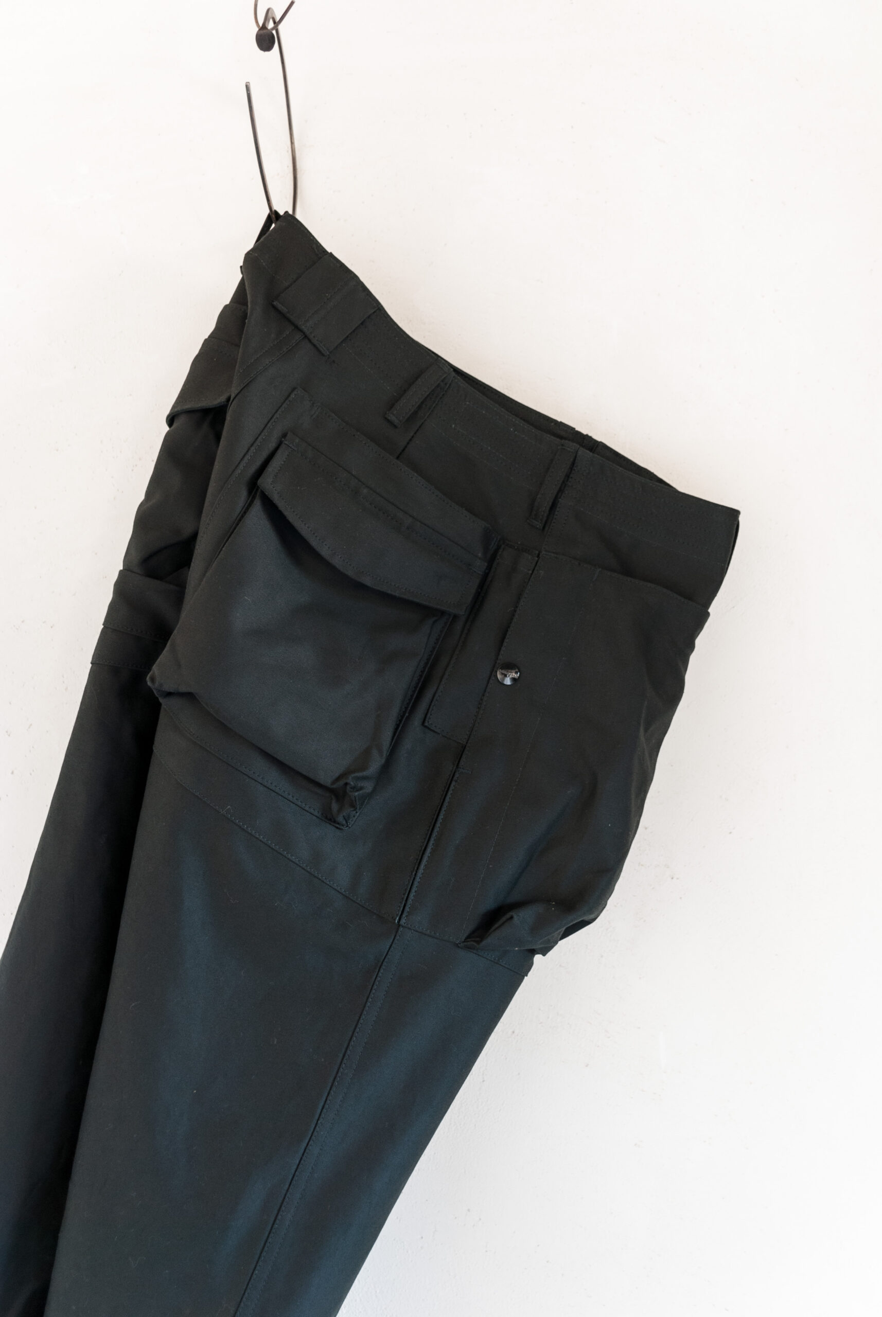 股にはササフラスお馴染みの180度開脚できるガゼットクロッチが付き、裾に設けられたボタン留めストラップによって、ワイドストレートから強烈なテーパードまで、3段階に調節可能。