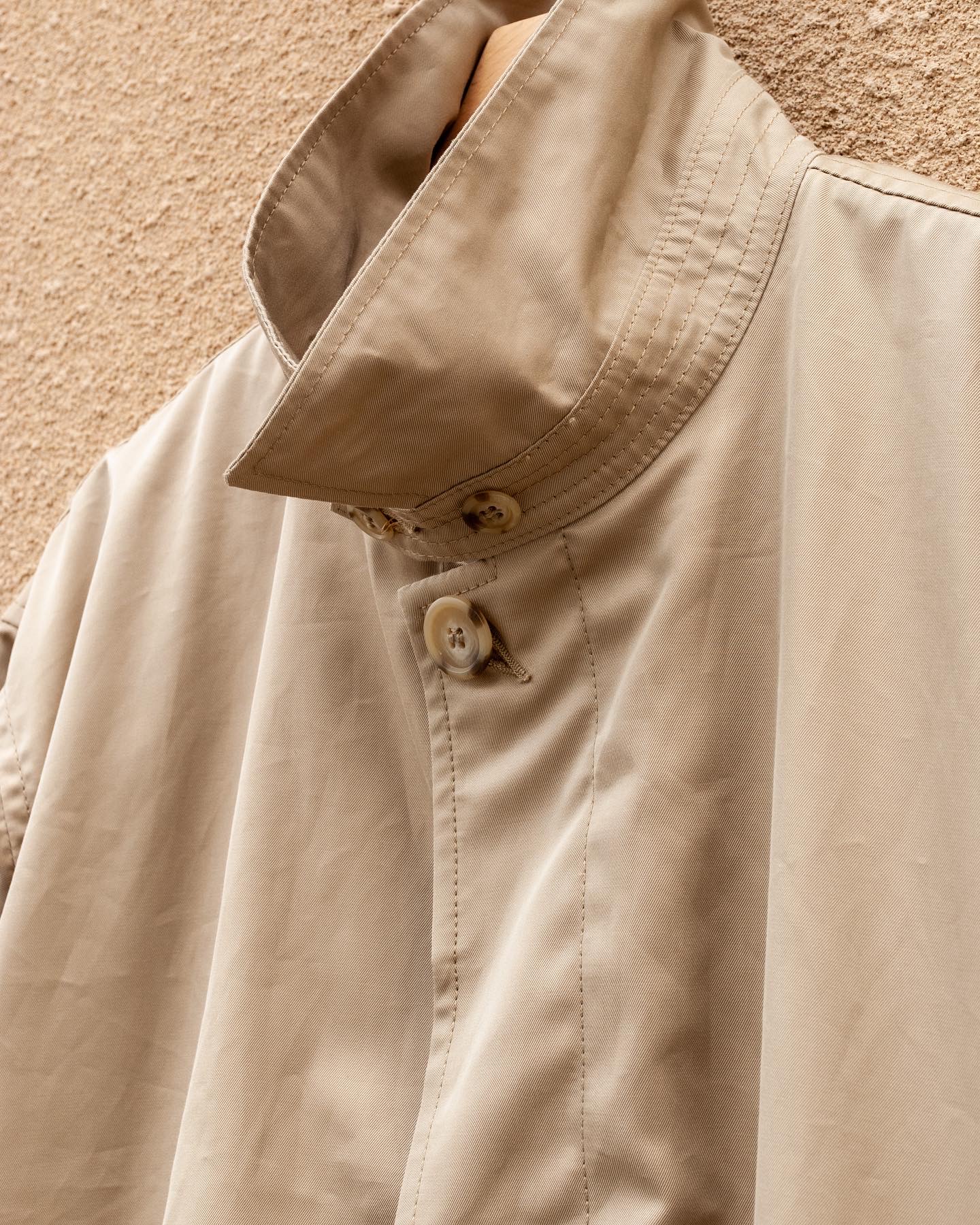 デザイナーが持つ90’sのP社の都市型レインコートをベースに、ササフラスでは珍しいポケット控えめなあっさりとした表側、裏側にはコットンレーヨンのライニングとツールポケットを装着、見えないところにササフラスらしいギミックを搭載した一風変わったコートです。