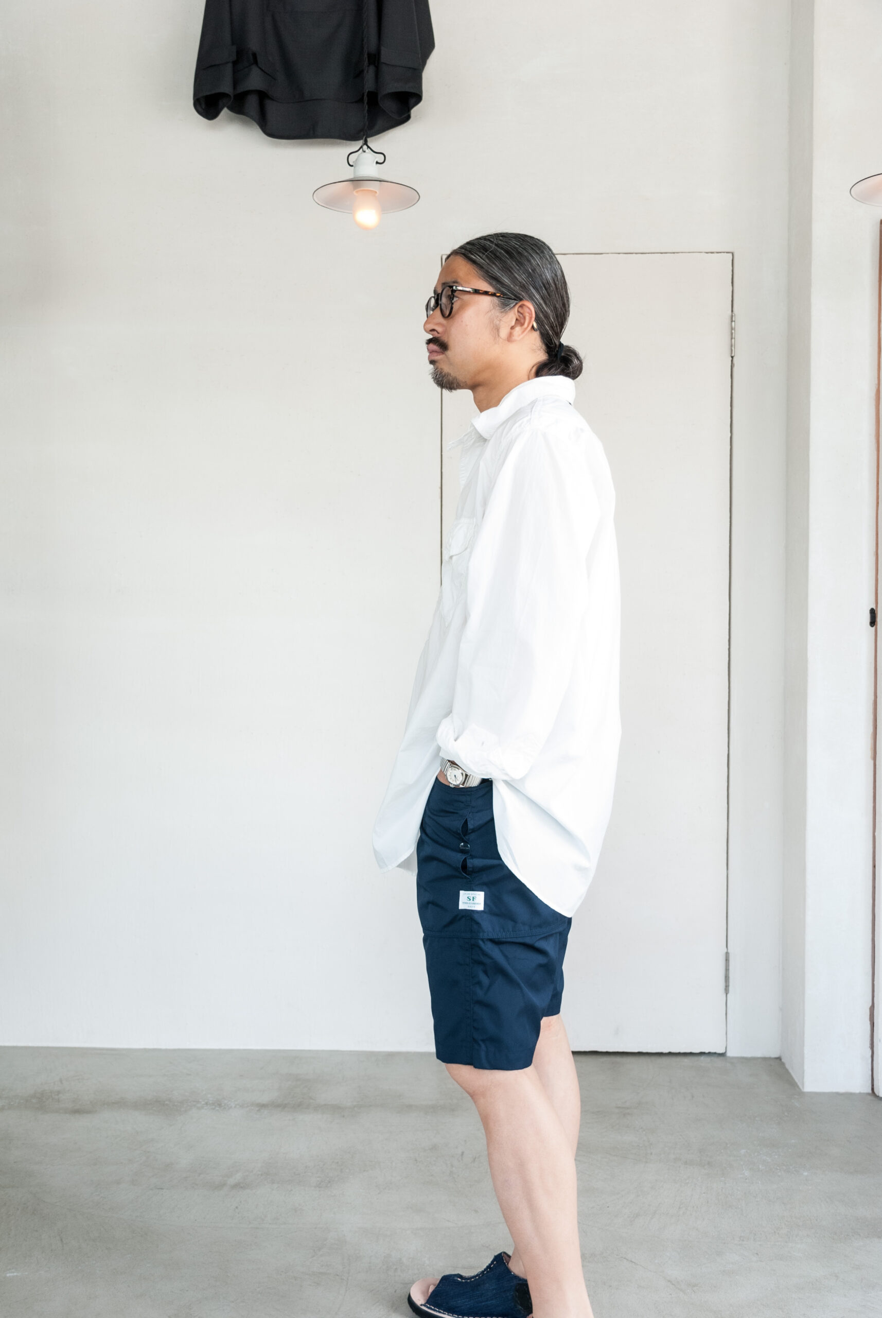 ディテール満載ですが、バランスの良いカタチなので、暑苦しくなく、シャリッとした生地の冷たさが心地よい、これからのシーズンにもってこいのショーツになってます。