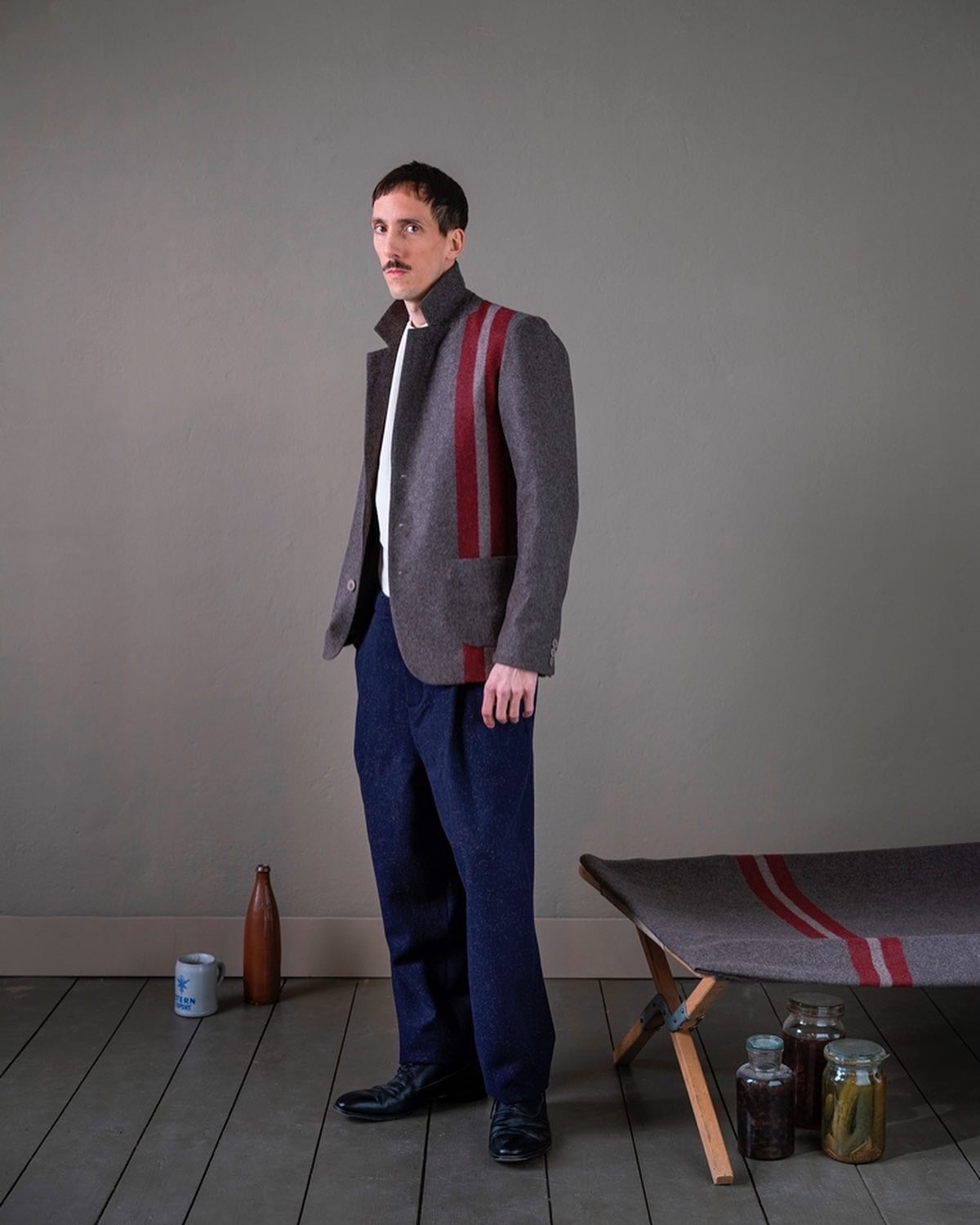 フランクの友人を介して手に入れたオーストリア軍のビンテージブランケットは、スイス軍の物とよく似ていますが、洋服の生地としては、生地自体の美しさや厚み等、こちらの方が洋服の生地として、より優れているそうです。