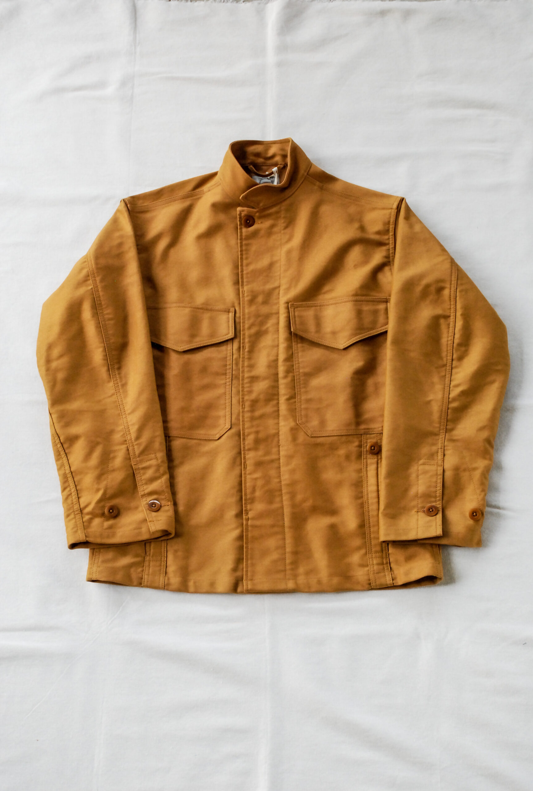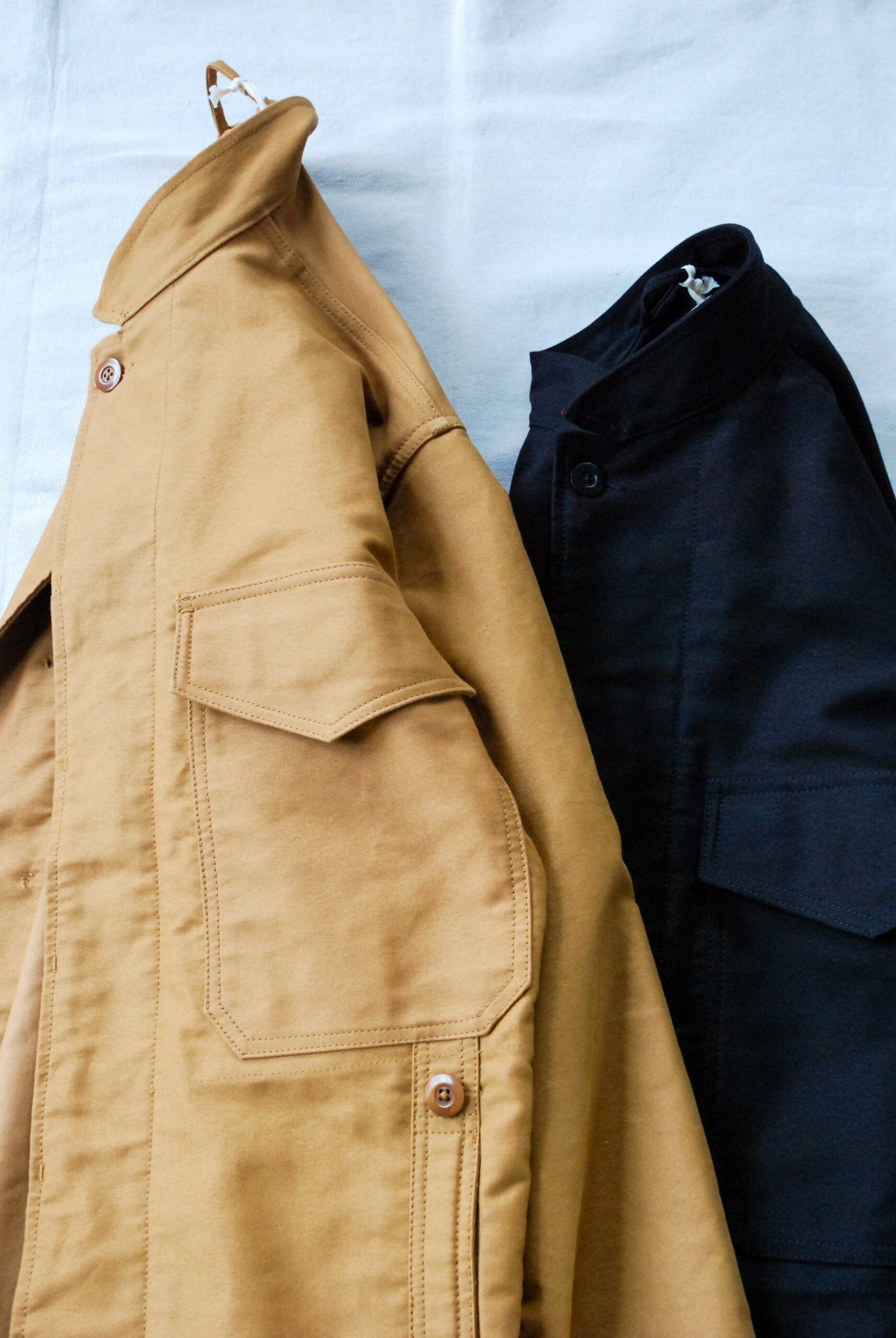 モールスキンは味わい深い表情に変化していく育て甲斐のある素材ですが、耐久性が高く、火にも強いし、秋冬の素材としてはかなり使い勝手のいい素材です(キャンパーにもお勧め)。