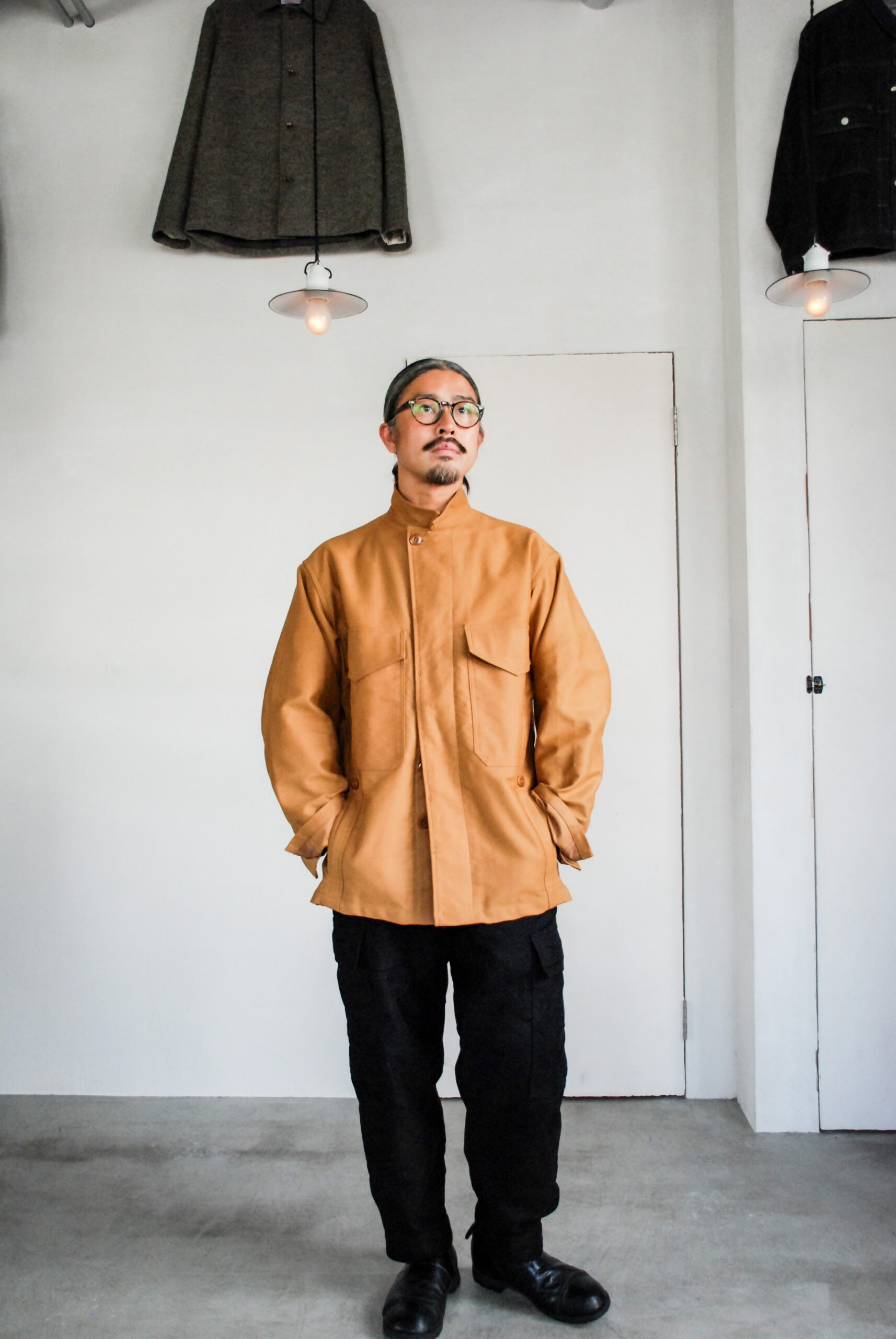 デザインに関してもオリジナルのドイツ軍のジャケットは、肩にエポレットが付いていたり、襟が尖っているような少しこってりしたデザインになっているのですが、普段着として着るときに要らない要素は排除してシンプルに仕上げています。