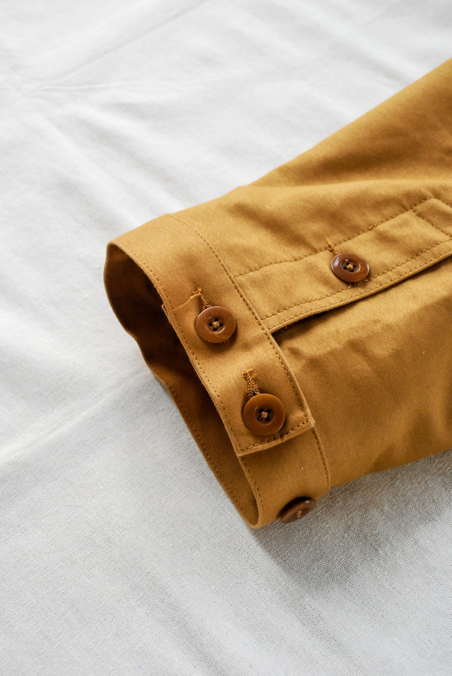 フロントのボタンは一番上以外は比翼仕立てになっていて、全部閉め着てもフルオープンにして着てもニュアンスが変えれるので便利です。