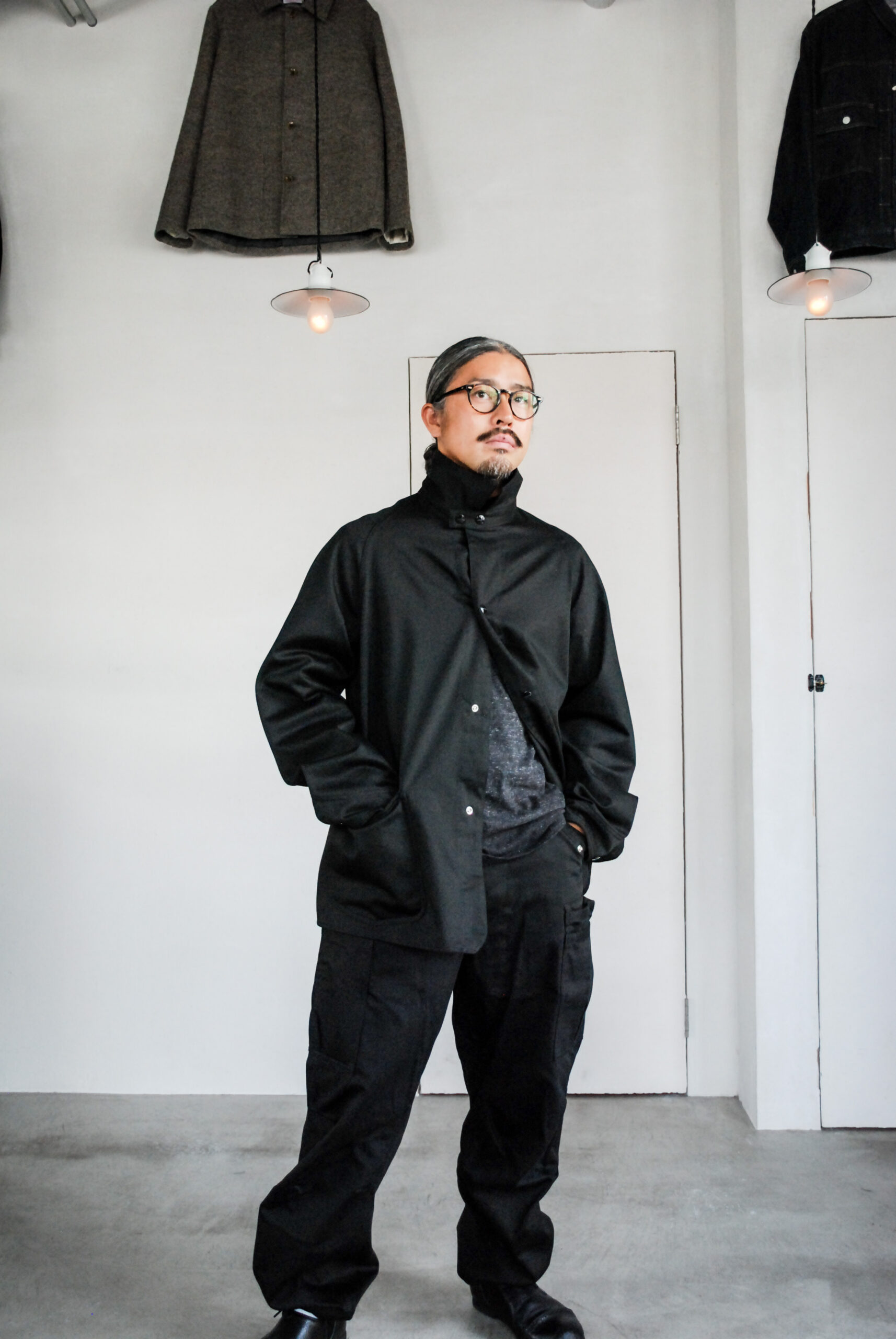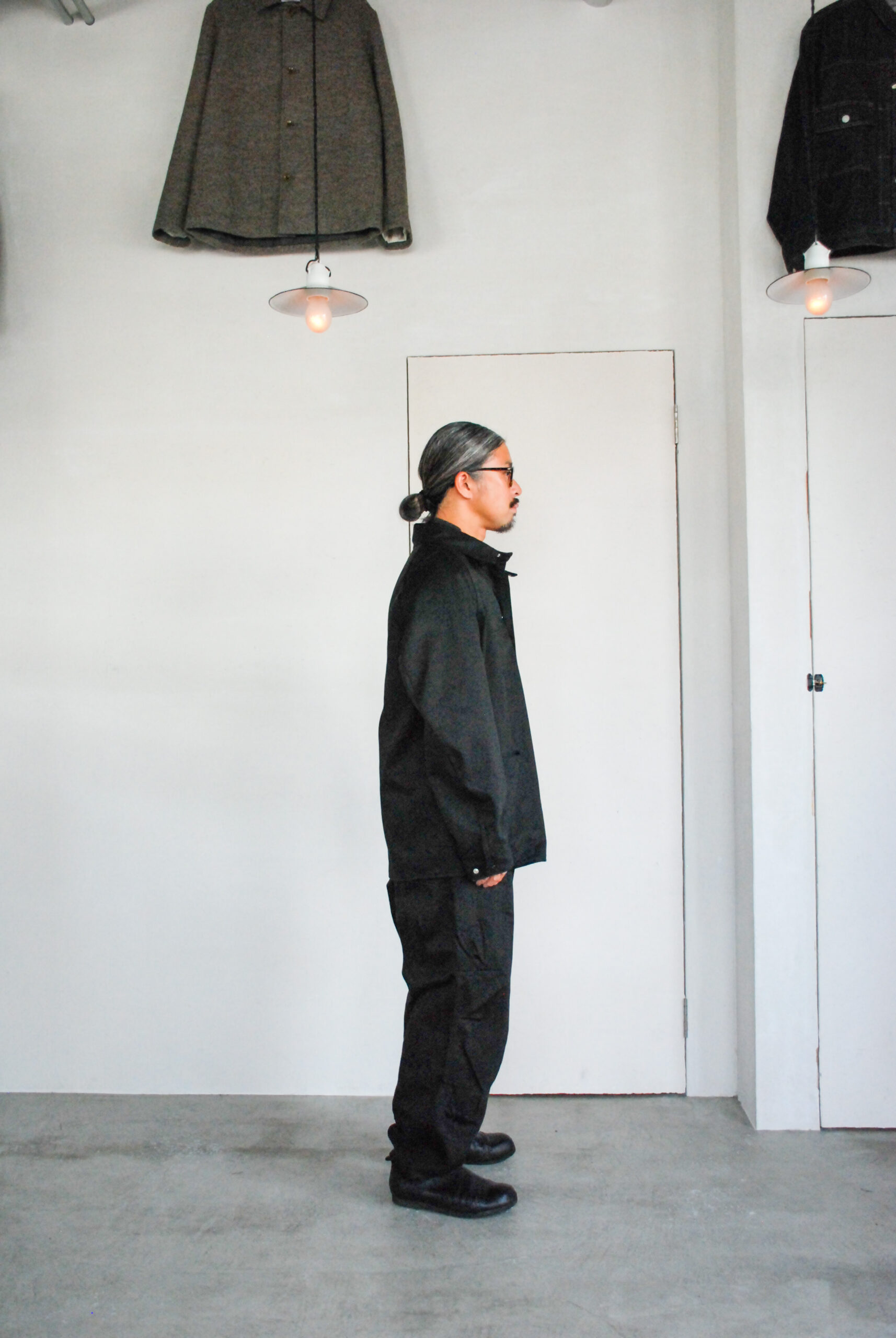 ボタンは全部スナップボタン、両サイドに付くポケットの内側にはゴムバンドを装備、と言ったササフラスらしいディテールは搭載しながら大人のカバーオールに仕上がっています。