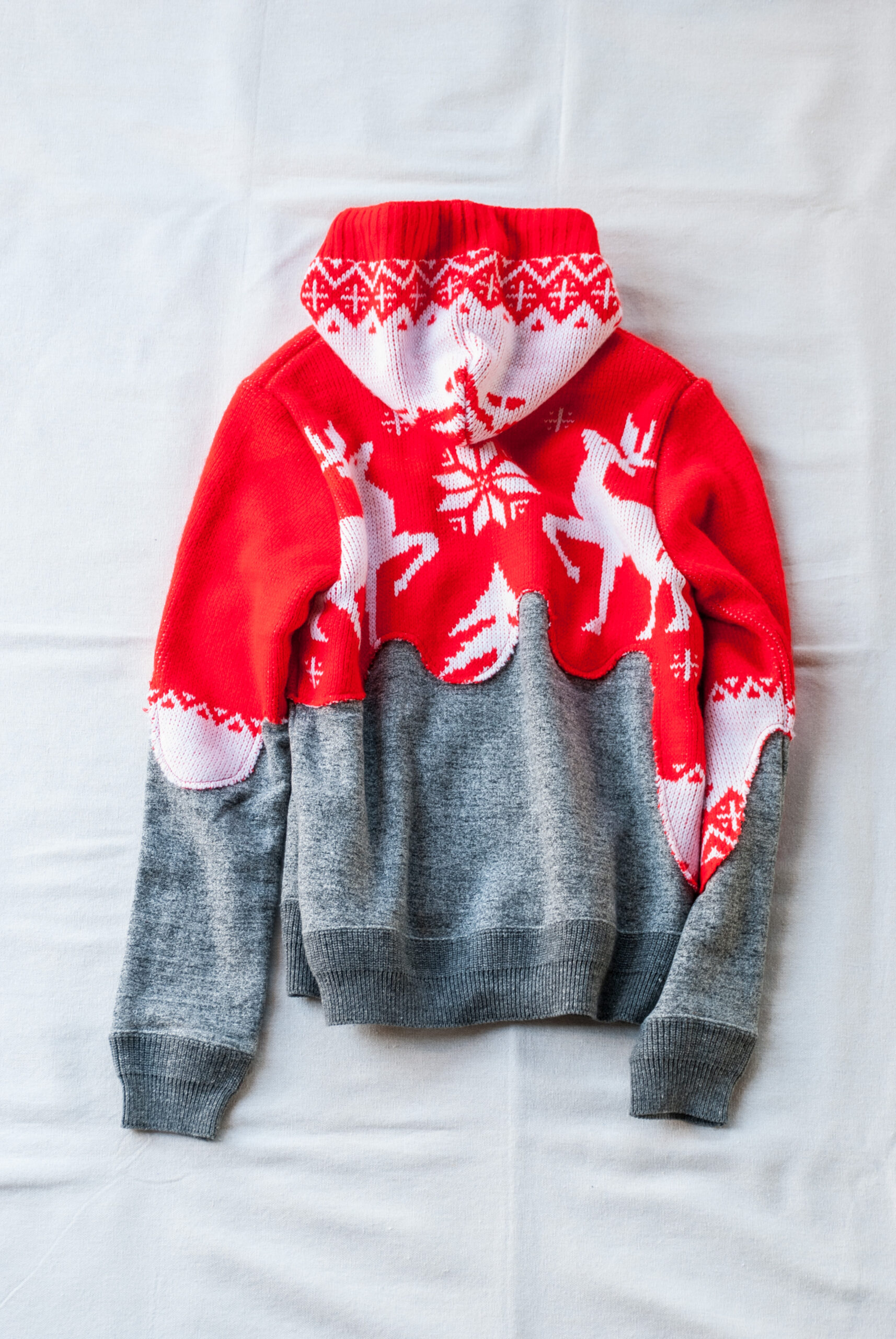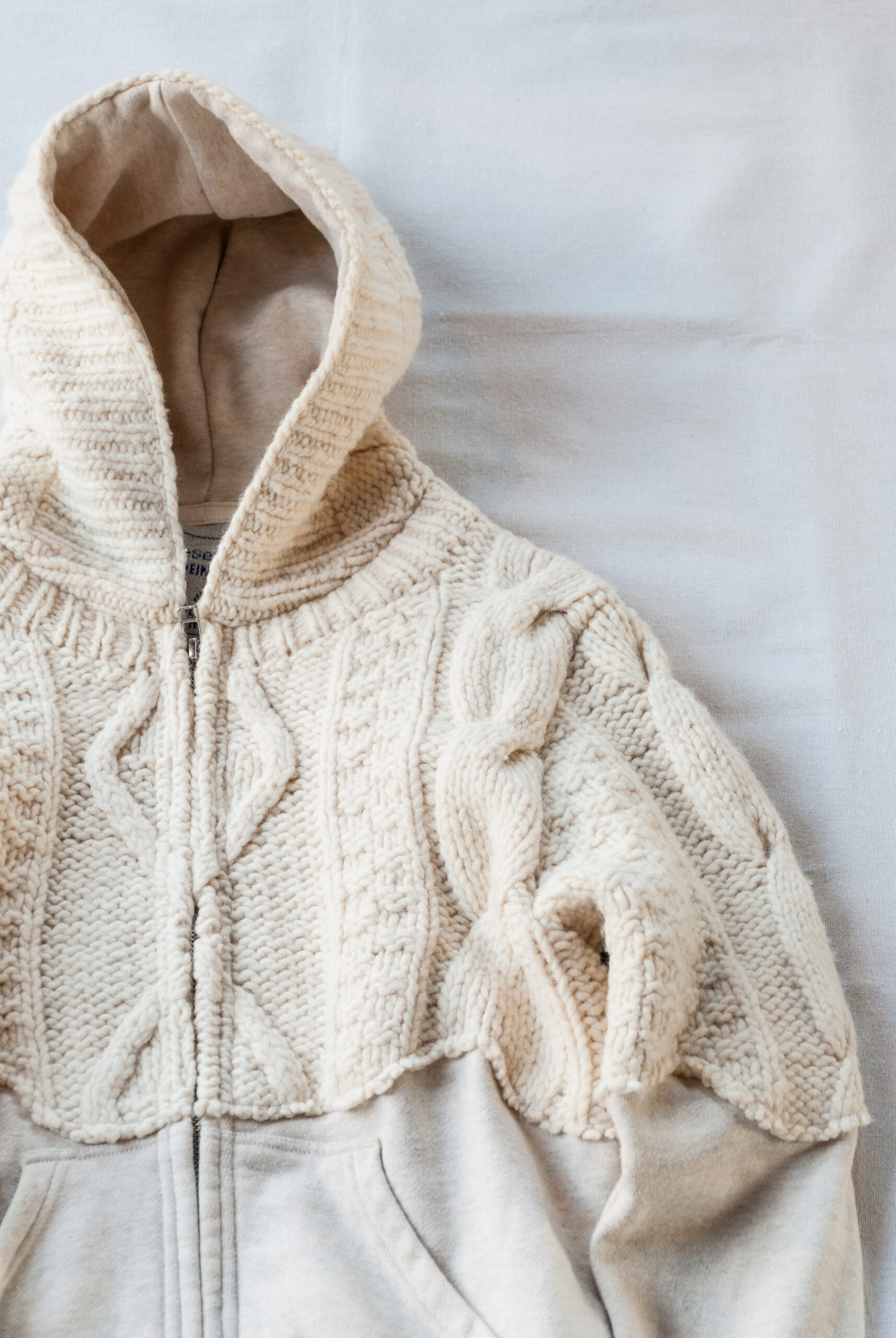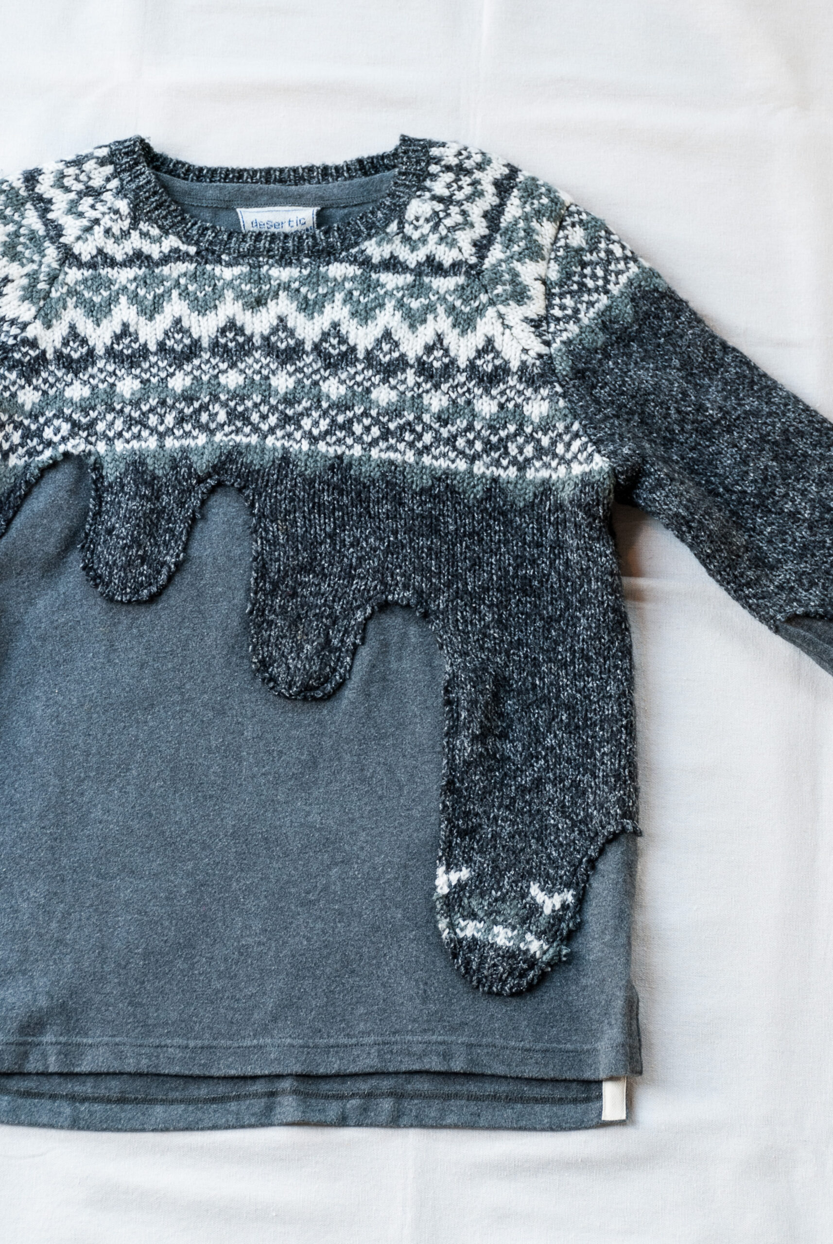 スウェットの上からビンテージセーターが液体のように垂れてきているデザインは、いつ観ても新鮮なデザーティックらしい可愛いデザイン。