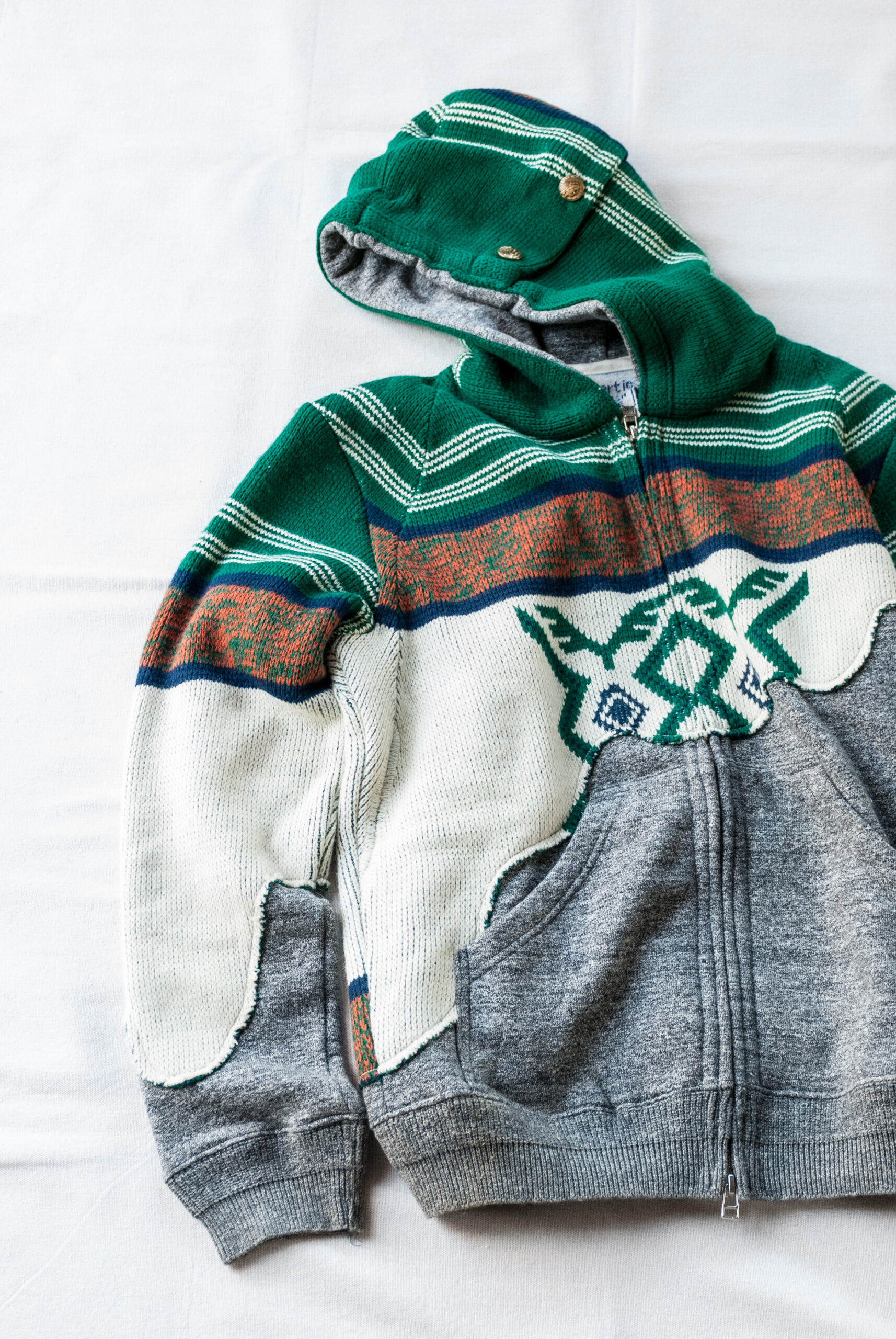 ビンテージセーターの柄はもちろん、ボディーのスウェットの色との組み合わせ、サイズ、全て一点ものなので、シンデレラのガラスの靴のようなご縁がありましたら買って下さいって感じです。