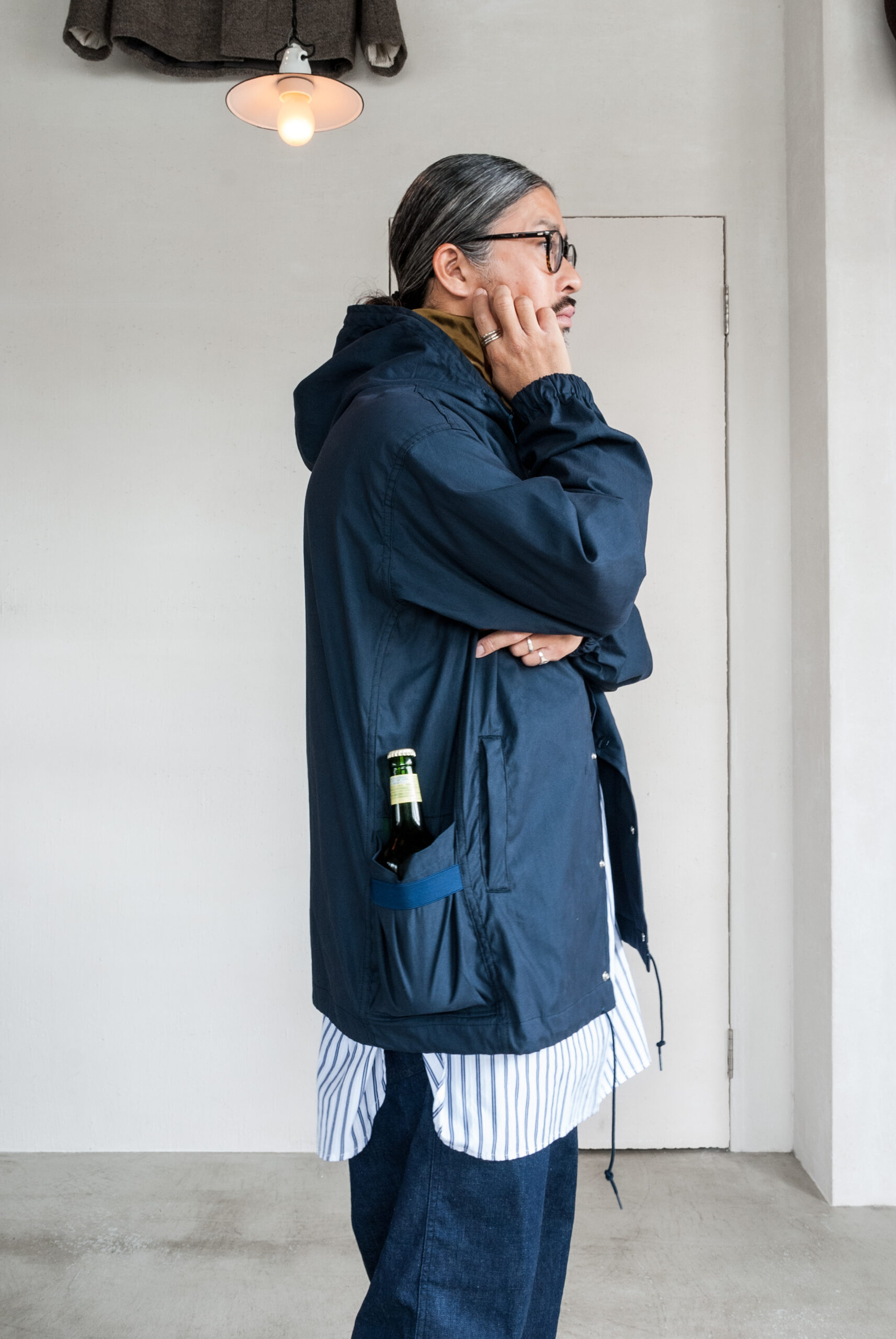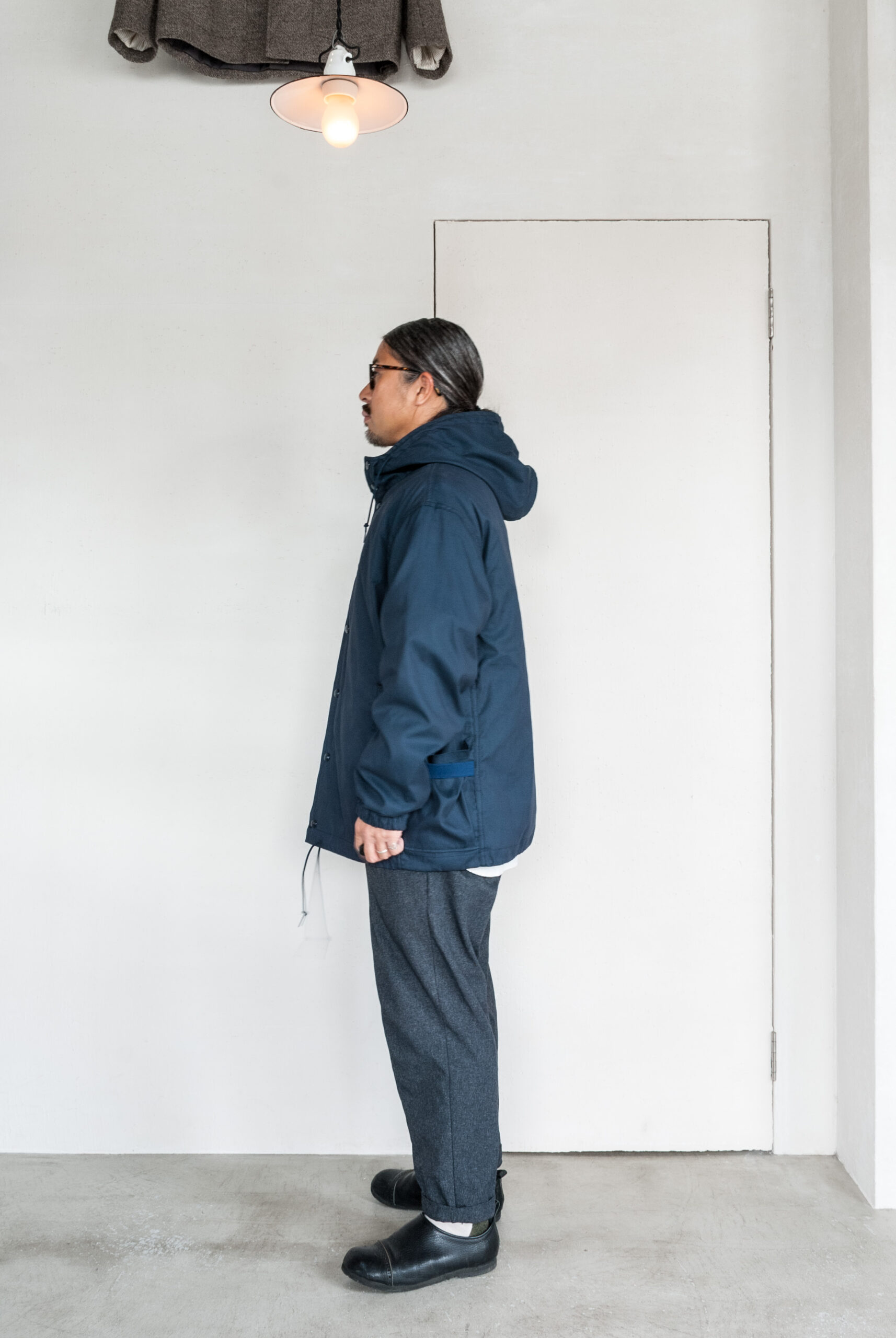 フードの付け方もスタンドカラーのような少し高さのある首元に改良され、前作譲りの大きめのフードとの絶妙なバランス感は横からのシルエットがとてもいい感じです。