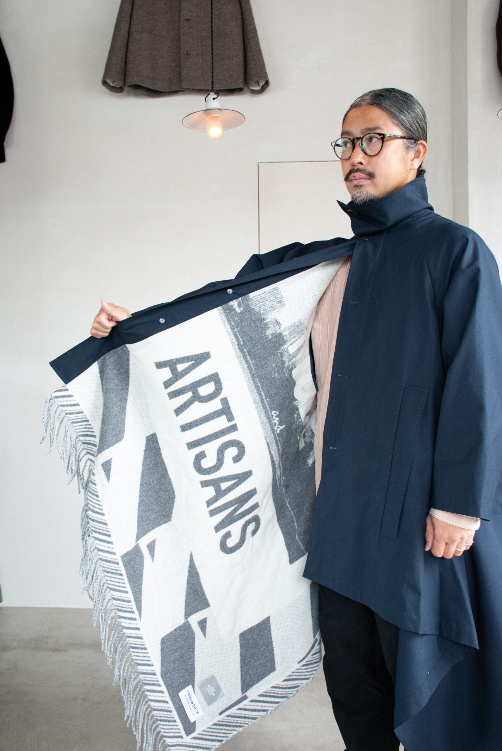ライニングには森下さんが大好きなHAINSWORTH社に作成してもらったオリジナルのメリノウールブランケットが一枚丸ごと使われており、かなり贅沢な仕様になってます。