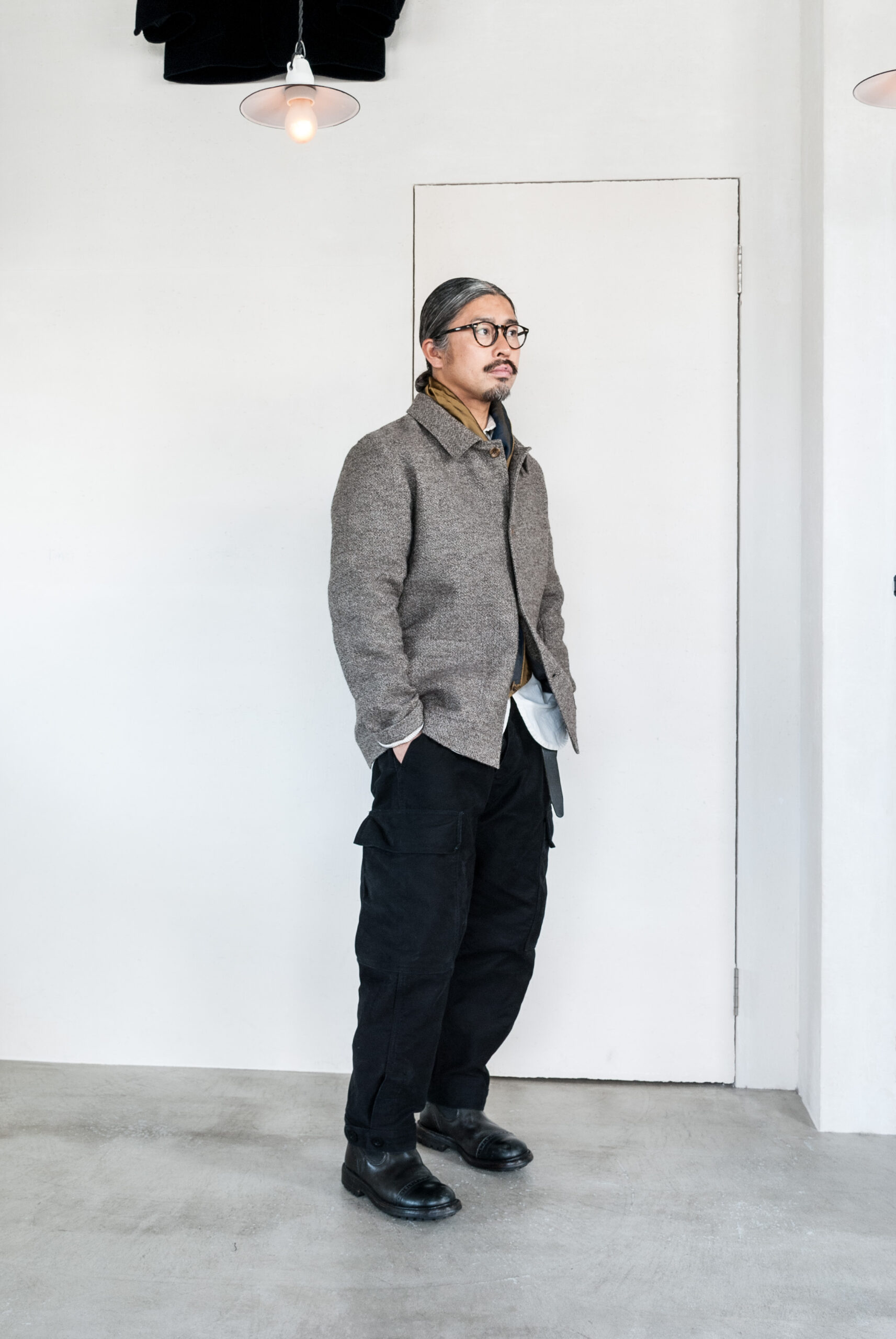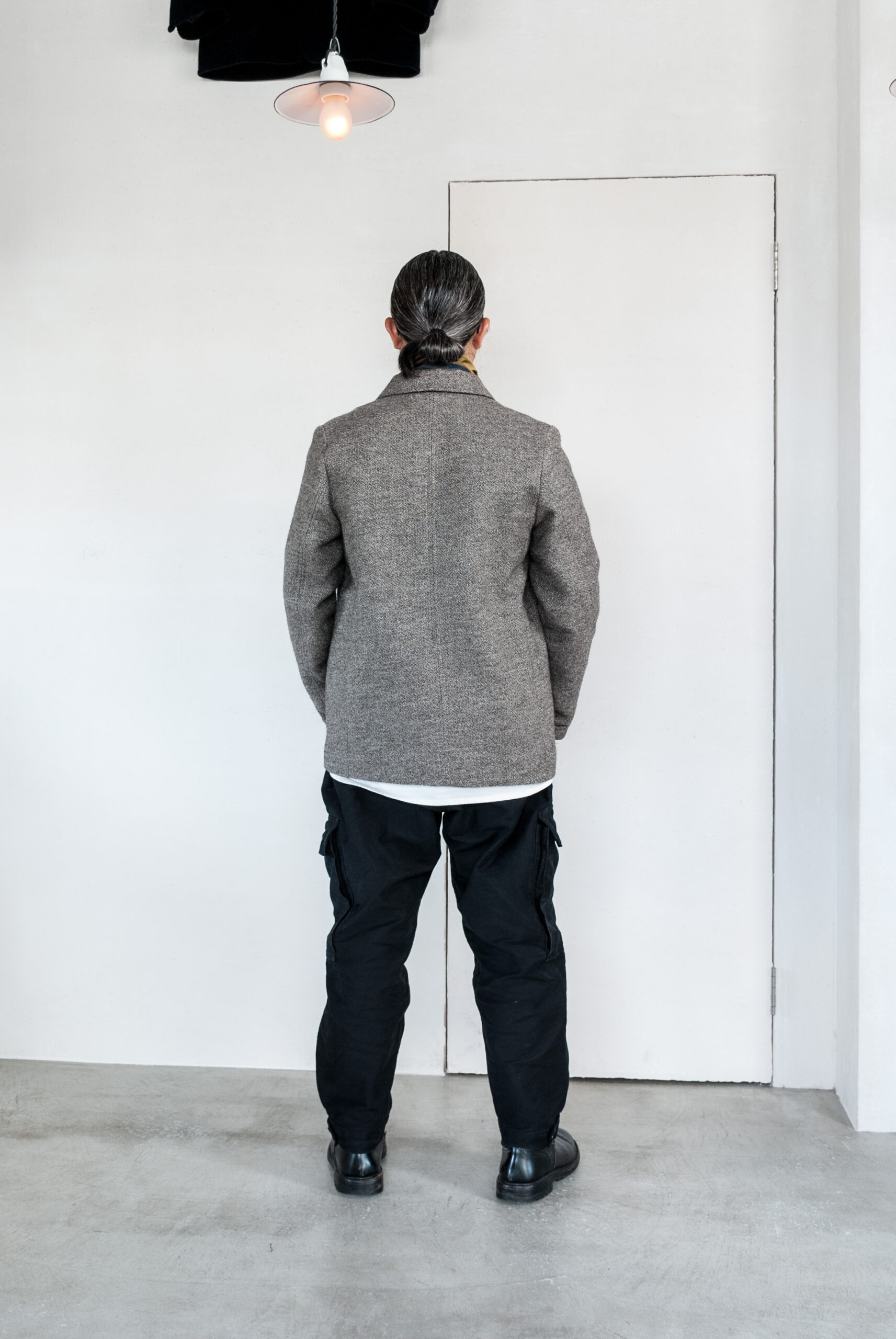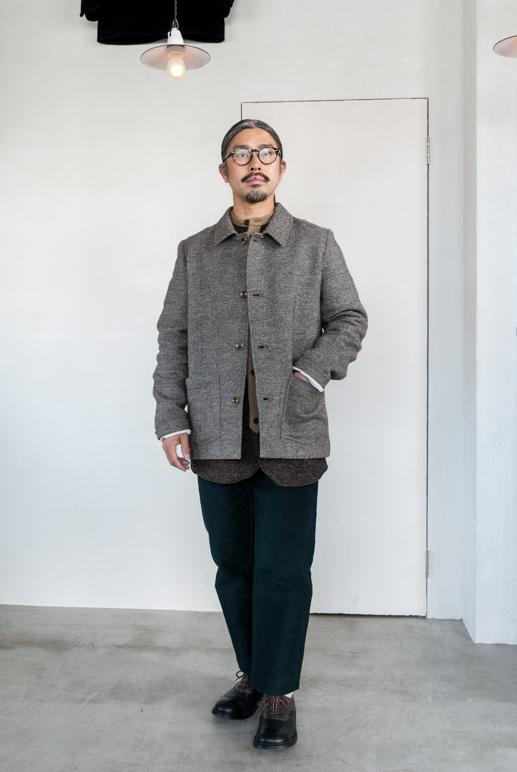 ドイツの伝統的なワークジャケットの形を踏襲しながらも胸ポケットを取り、丈夫な馬布で裏張りされているので、ジャケットとしてだけではなく、コートのような着方もできます。