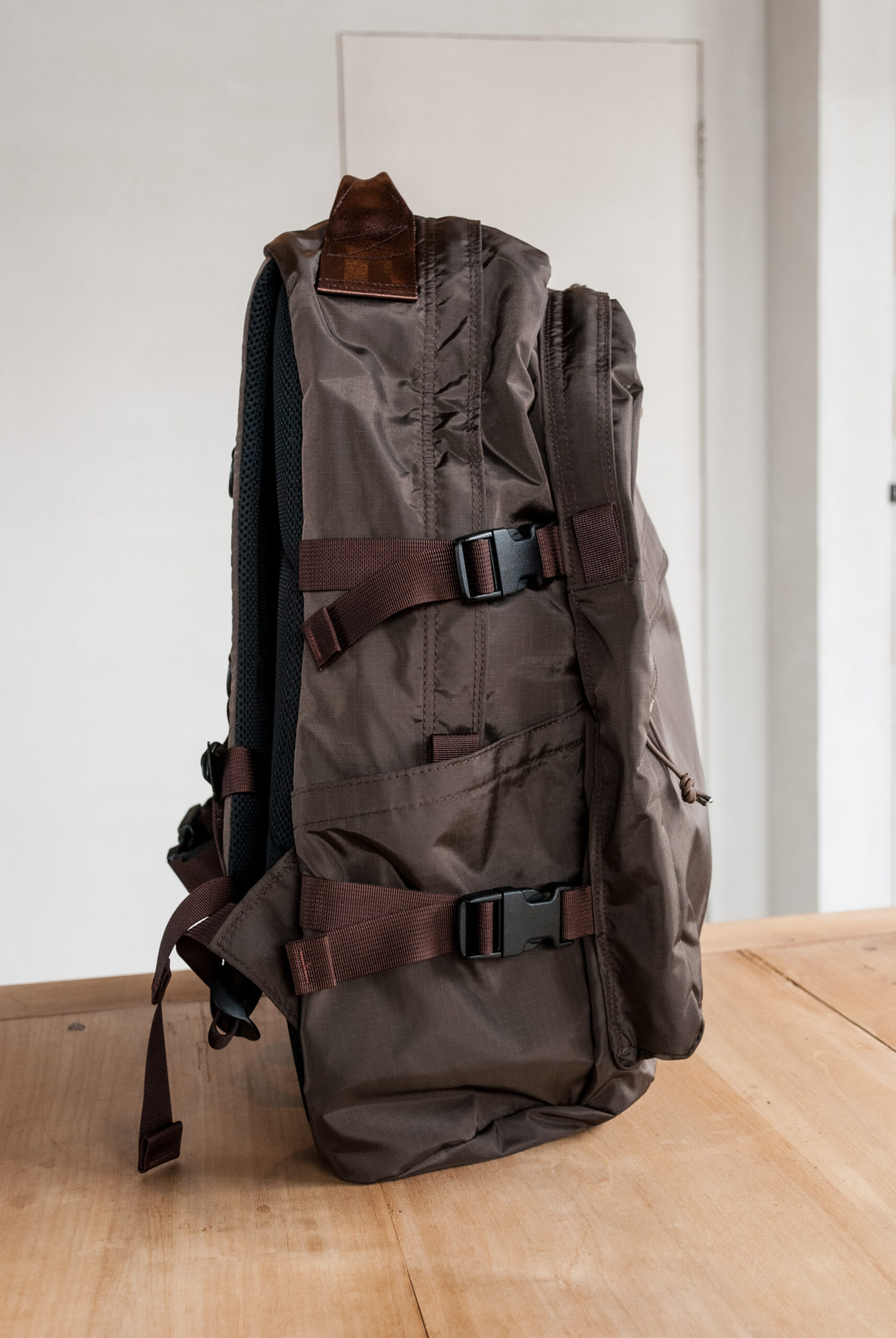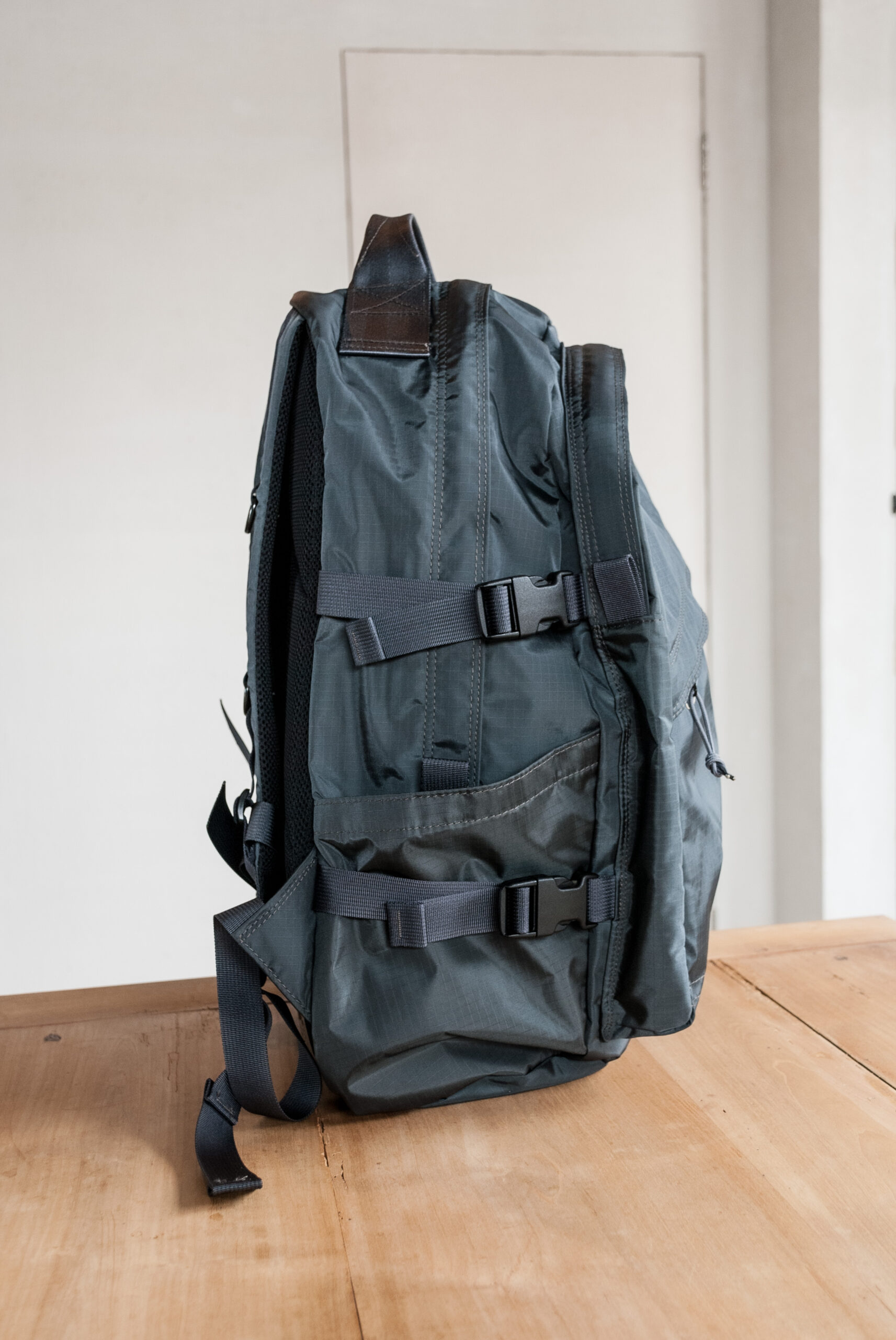トップやサイドにストラップが装備され、寝袋やジャケットなどを取りつけることができたり、しっかりとしたウエストパッドが搭載されていたのですが、街使いに不要な要素を整理して両サイドに大きめのポケットを追加したのがBALLISTICSモデルのA-Ⅲ Pack。