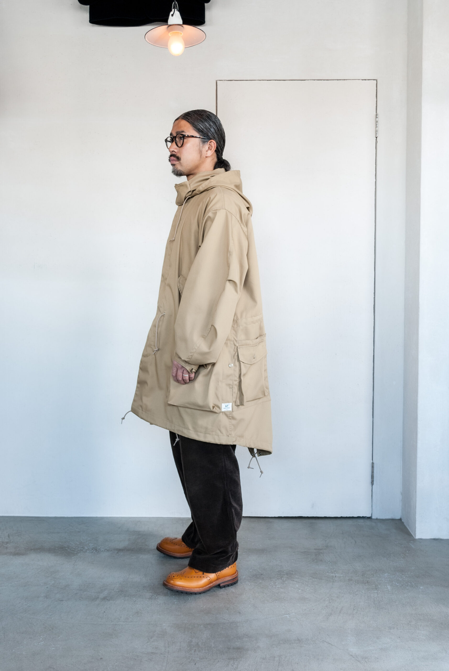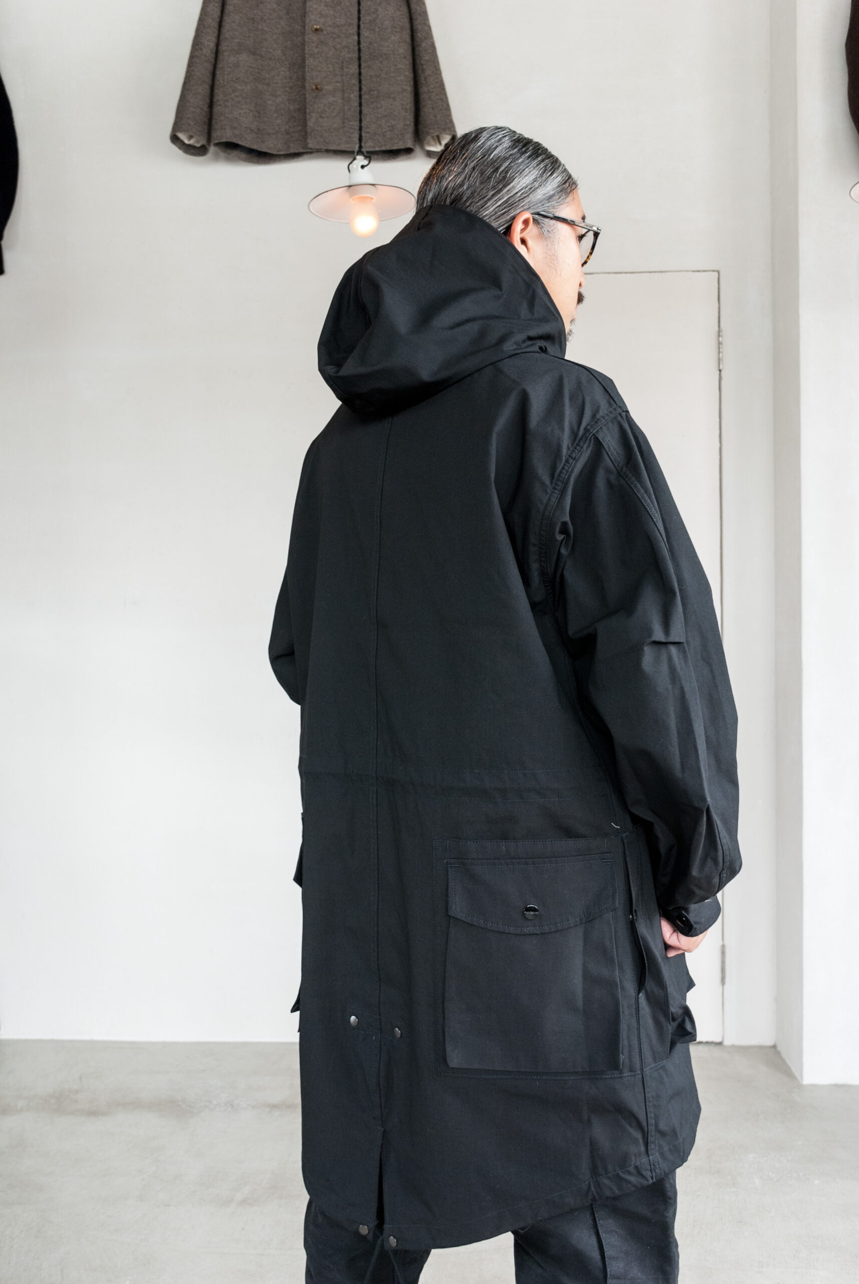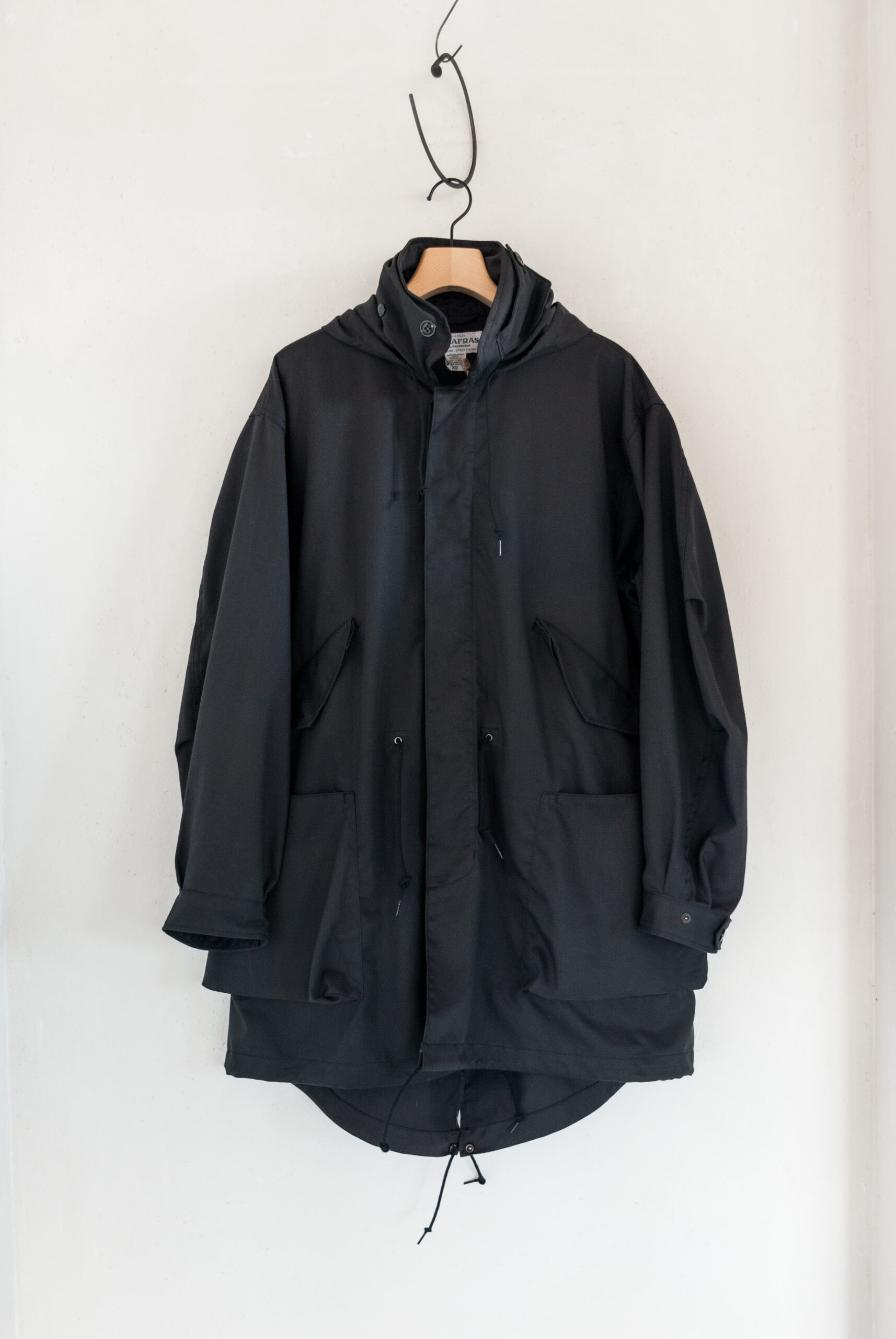 米軍が寒冷地向けに開発したコート「M-65フィッシュテールパーカ」をベースに、「M-65フィールドジャケット」のフード収納可能な首元のディテールなど、ササフラス流のアレンジを加えて製作したコートです。