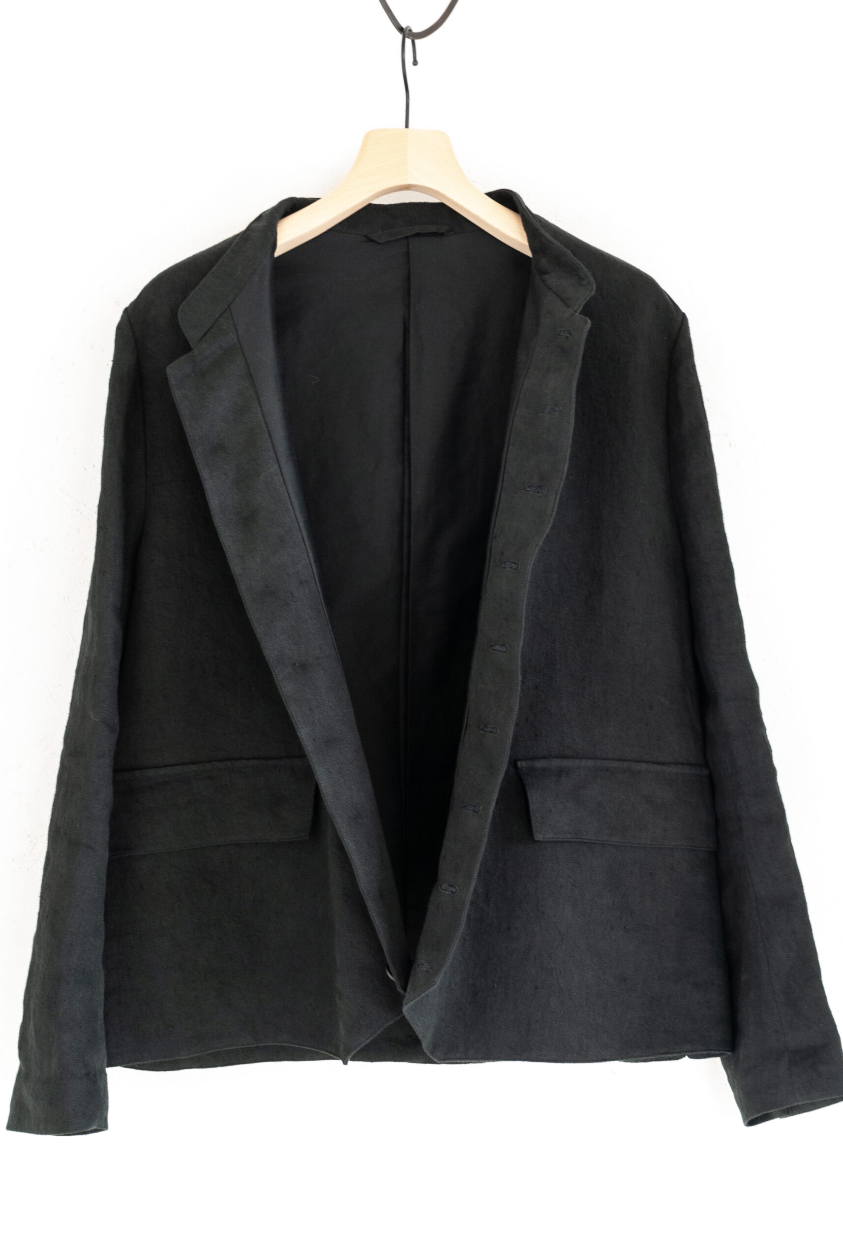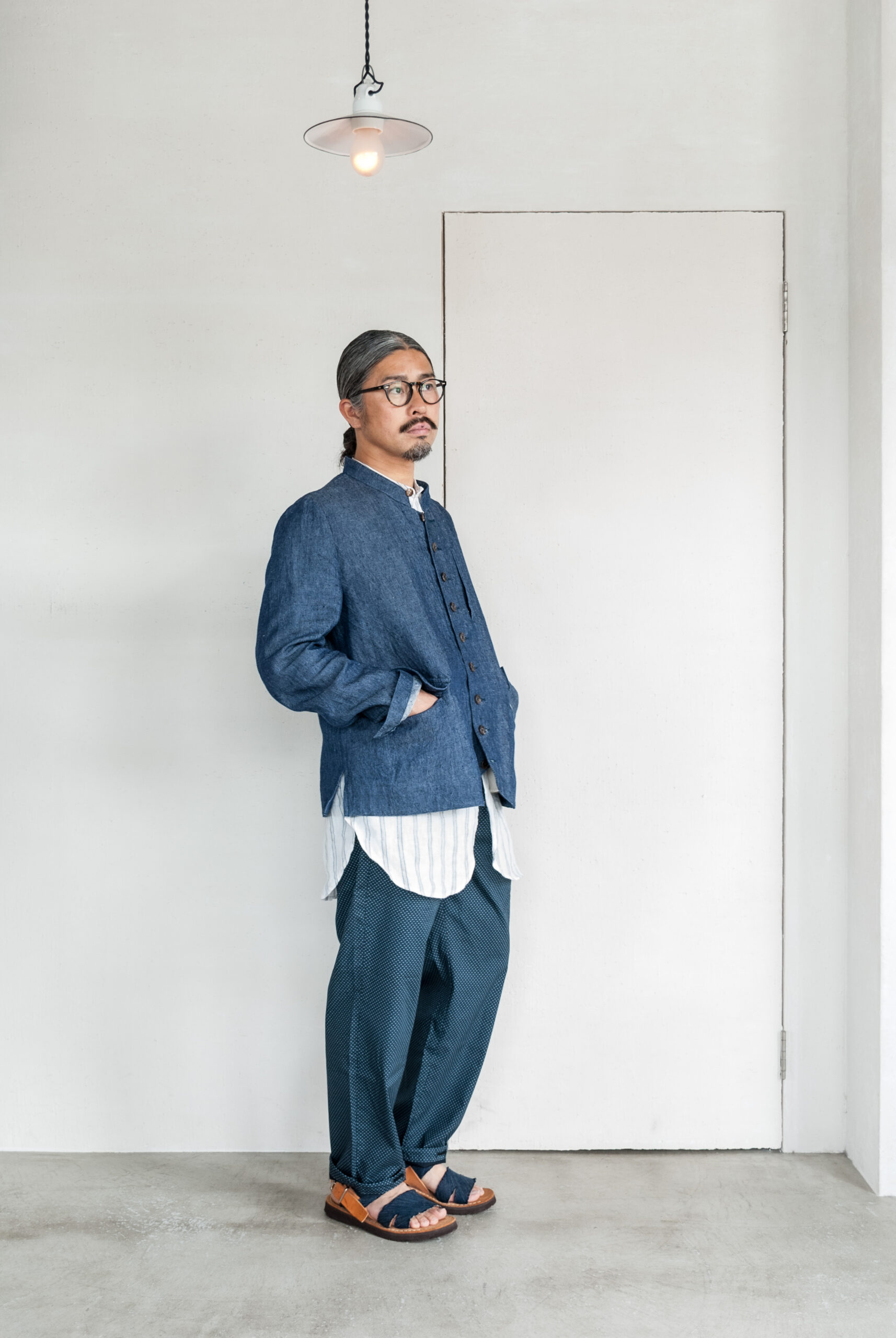インディゴと、ブラックのリネンデニムを使って表現されたQUILP版Chelsea Jacket。