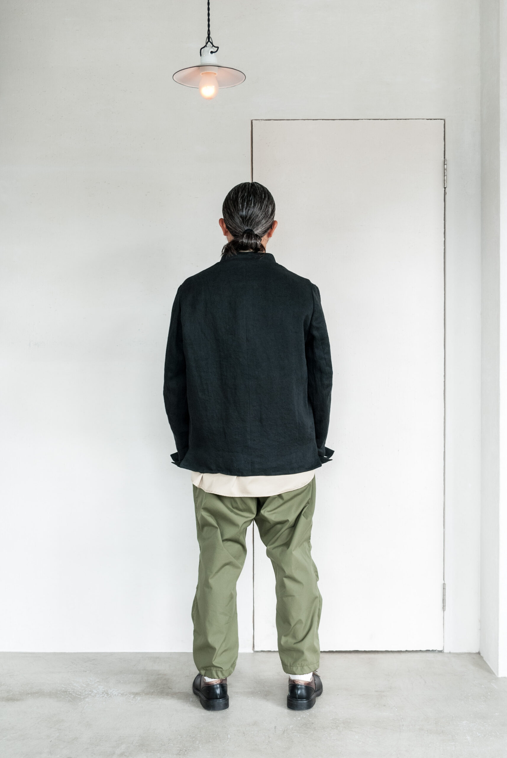 高密度に織り上げられたブラックのリネンデニムを使ったMORRISは、薄手のモールスキンの裏地付き。