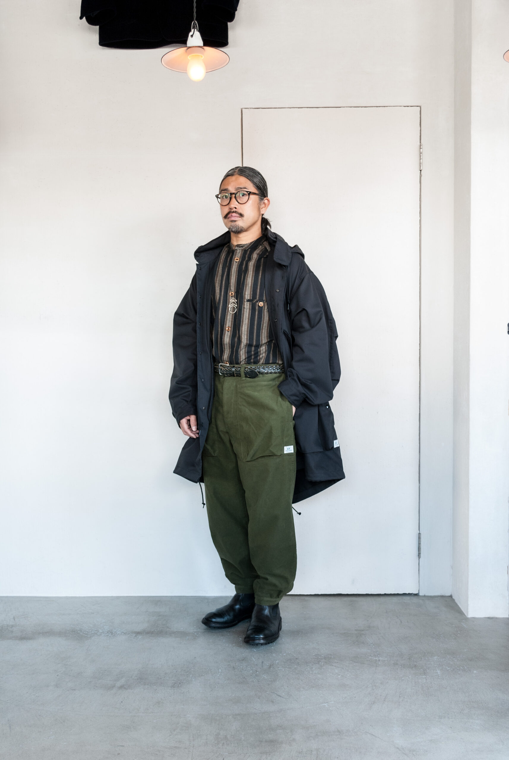 一度試してみると意外と着やすい長い着丈は、タックインしたり、出したりと着こなしの幅も広がります。