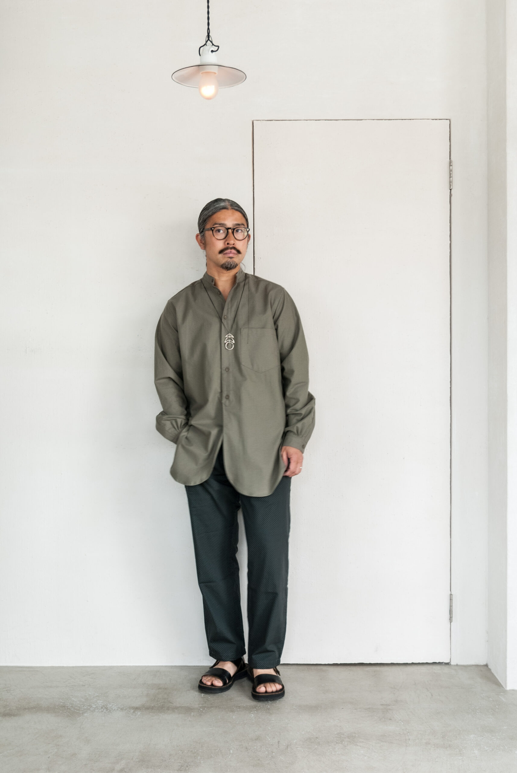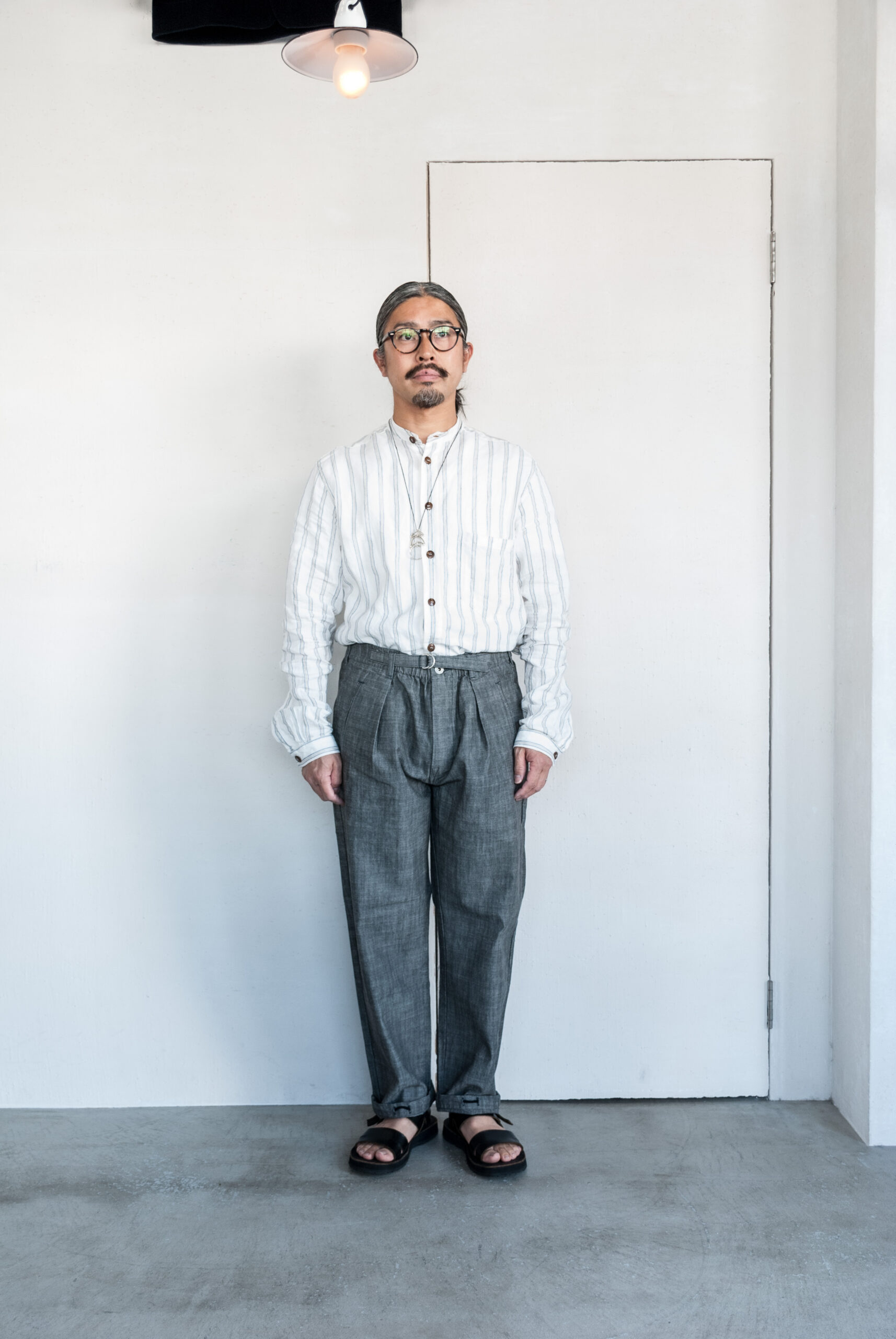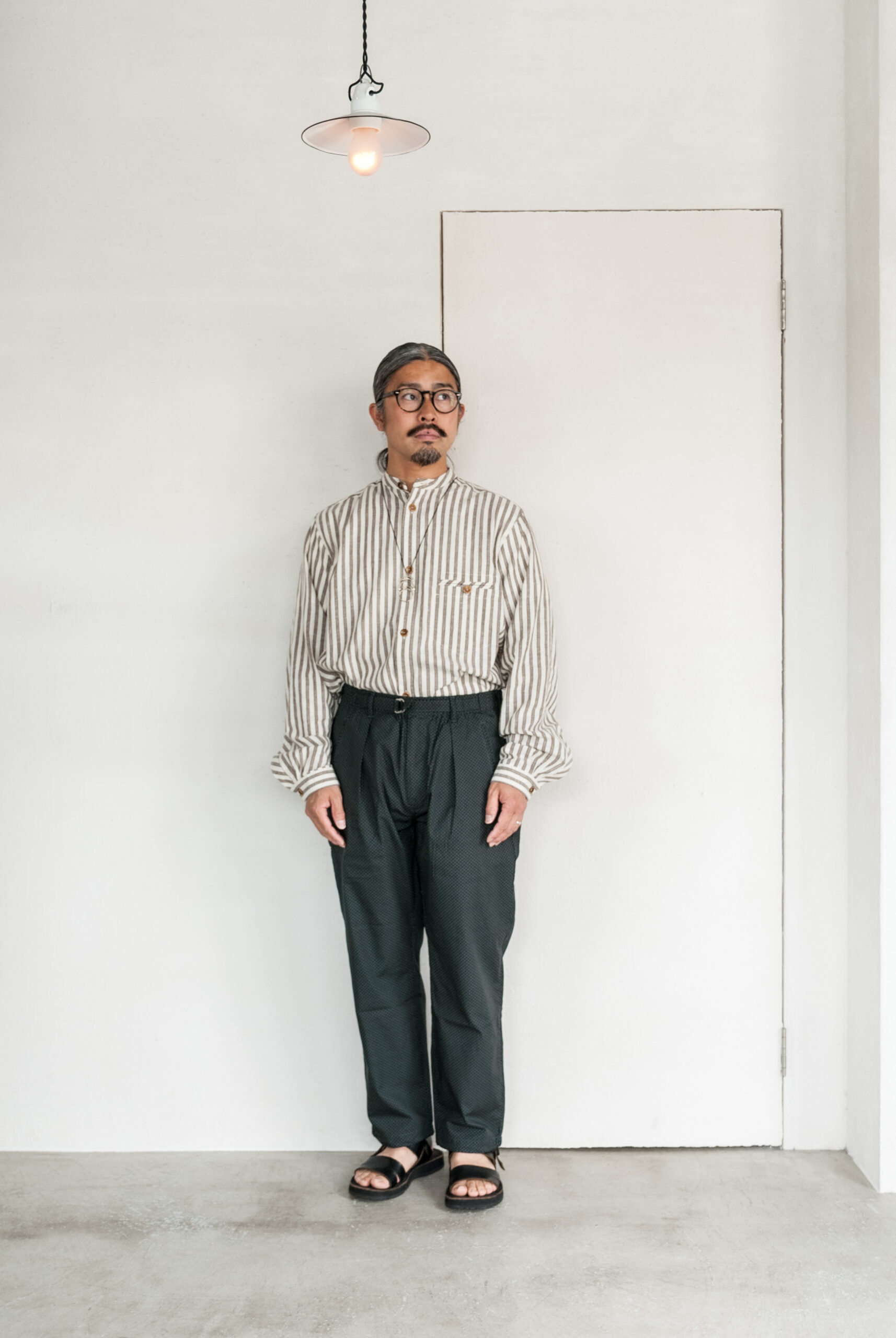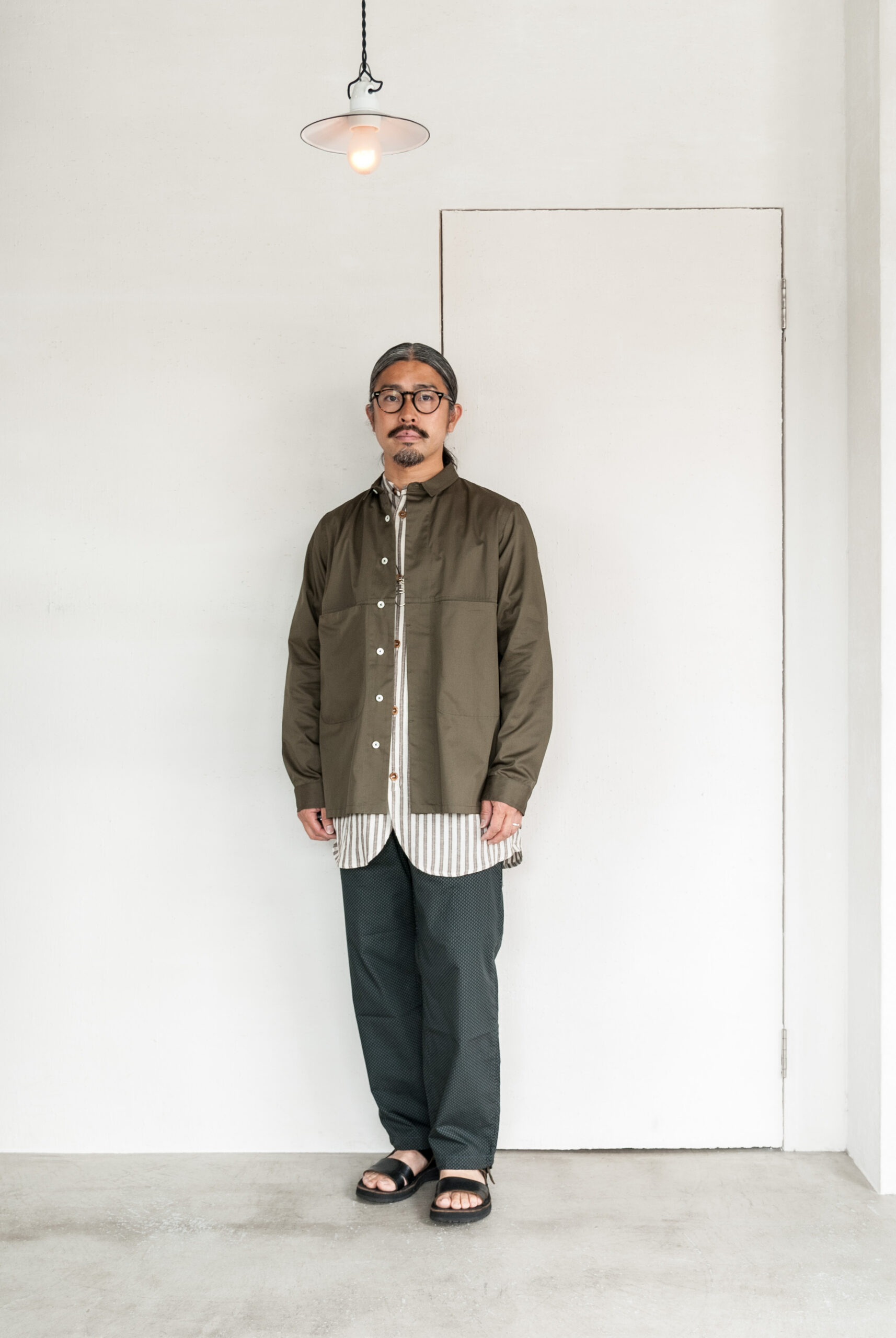 Post O’AllsがN.Yを拠点にしていた時代には、クラシックなチノパンスタイル等に柄もののシャツ生地が使われる事が多く、その当時は僕自身シャツやジャケットに柄を良く着ていたので手に取らなかったのですが、それから10数年経ち、自分自身の気分とリリースされるタイミングがばっちり合ってしまったので、今季はかなりのヘビーローテーションが期待できそうです。