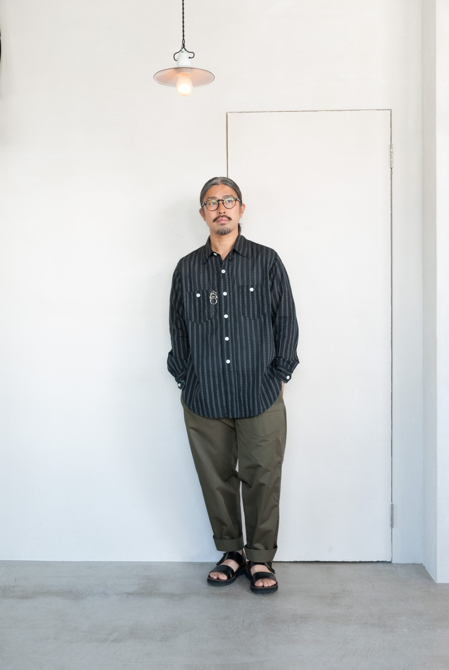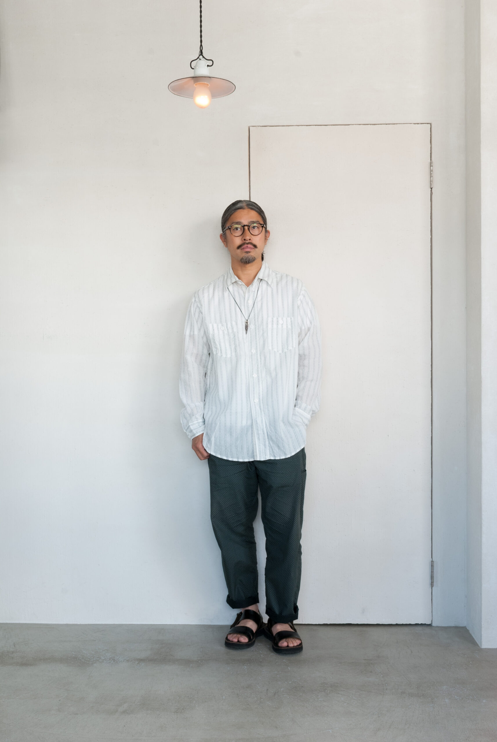 ドビーストライプは、小紋の織りストライプが良いアクセントになってくれるので、合わせるパンツを選びません。さらっとシンプルにコーディネートしてもらえるとOKです。