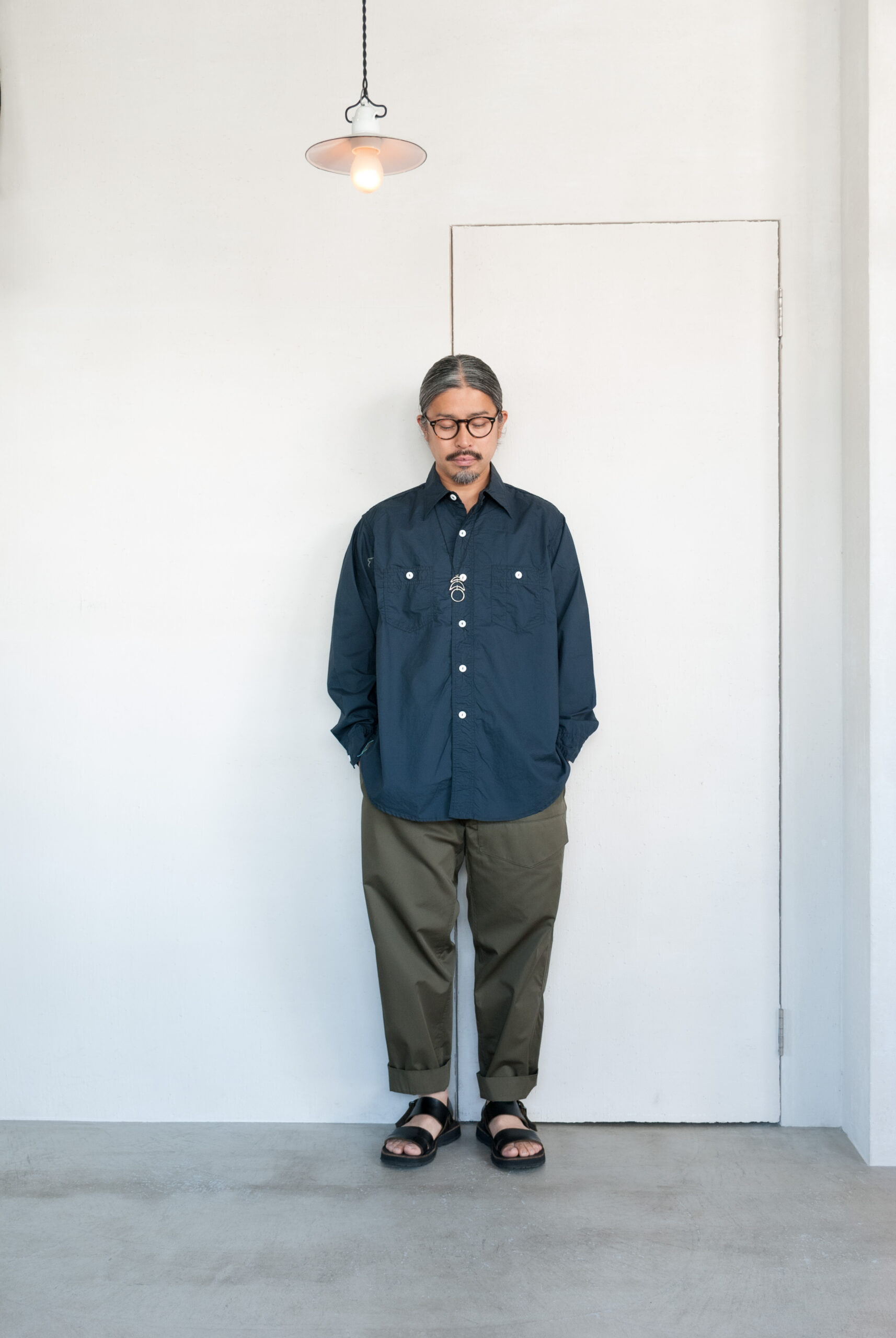 デザイナー大淵氏が、もっともオーセンティックで美しいと考えるホームベース型ポケットデザインが採用された今季の新型ワークシャツ『St.Louis』