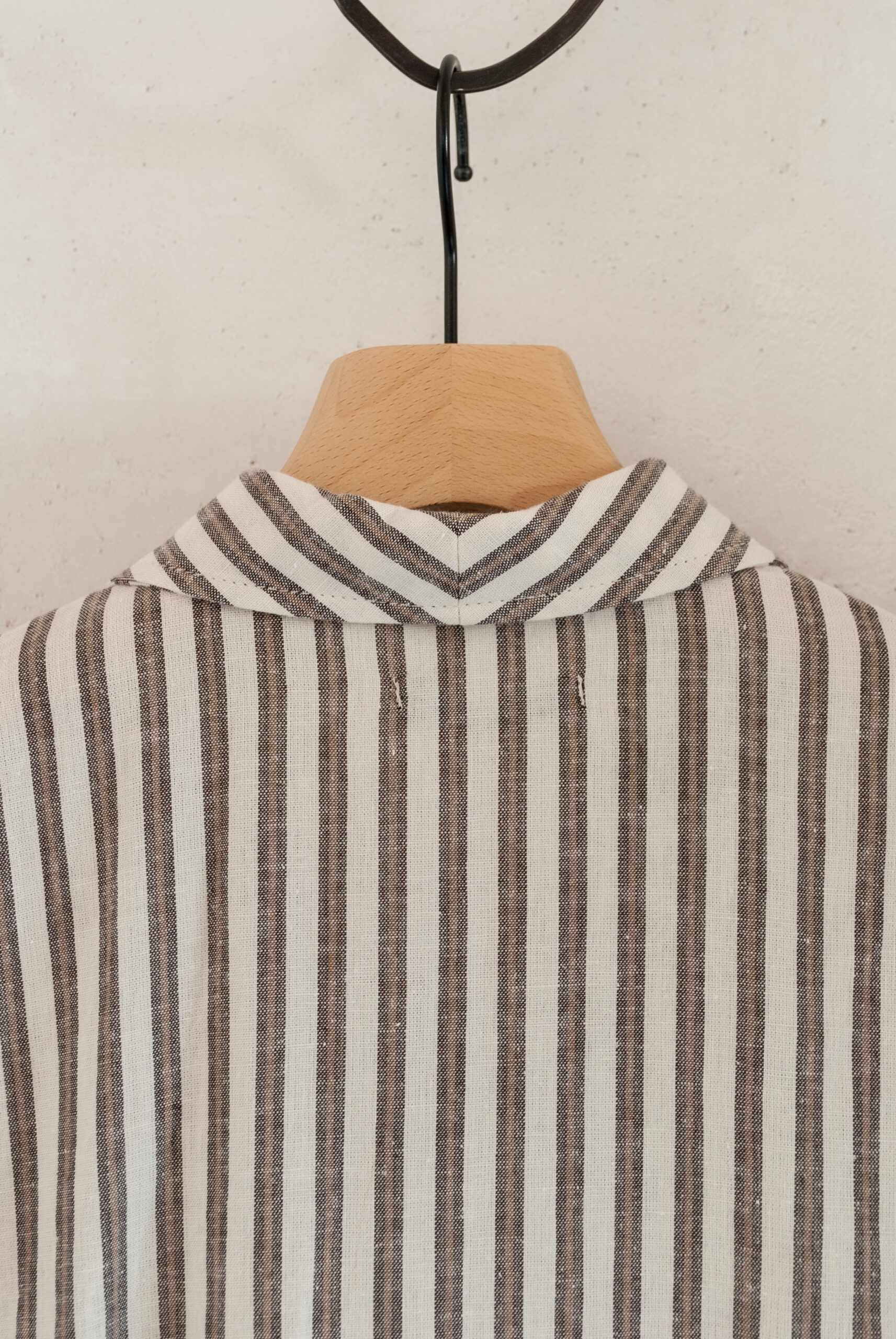 ファーマーズストライプと呼ばれる今回の生地は、コットン60%、リネン40%の少し粗めな軽やかな生地。