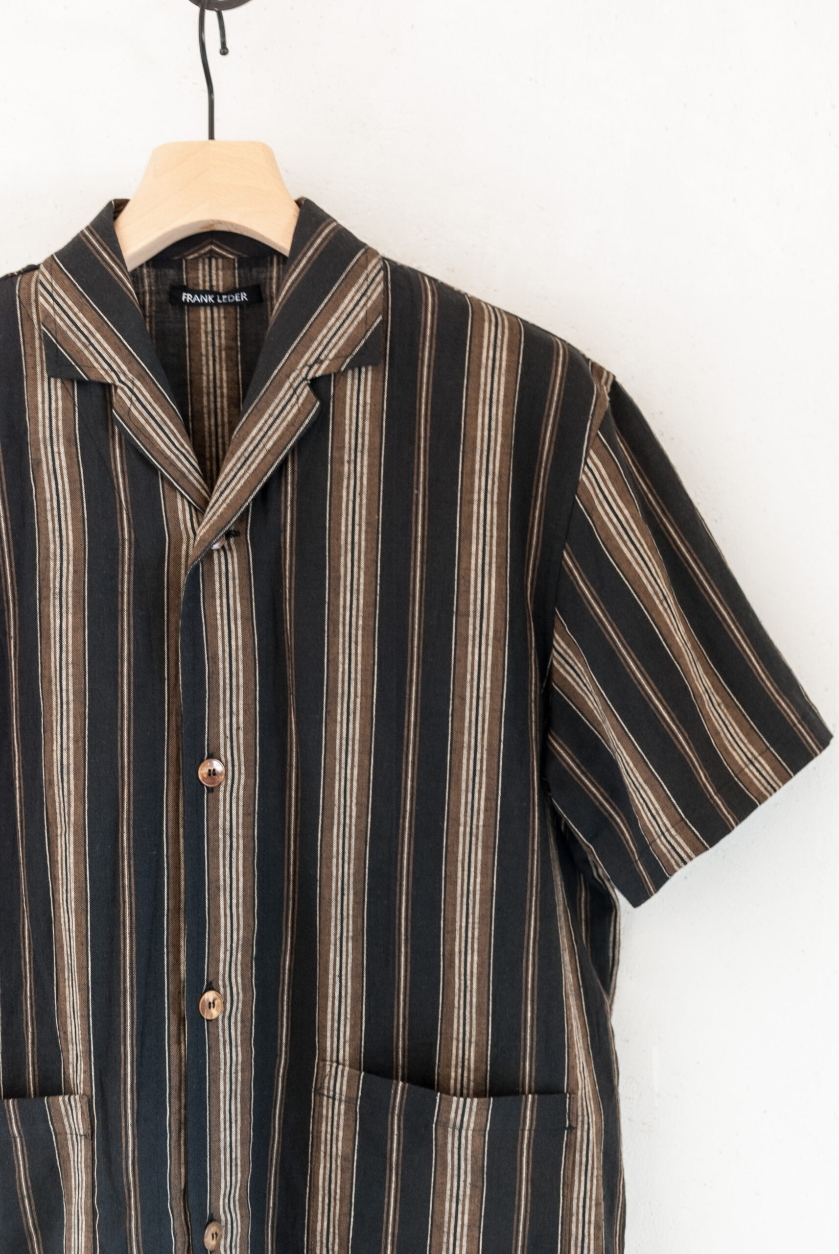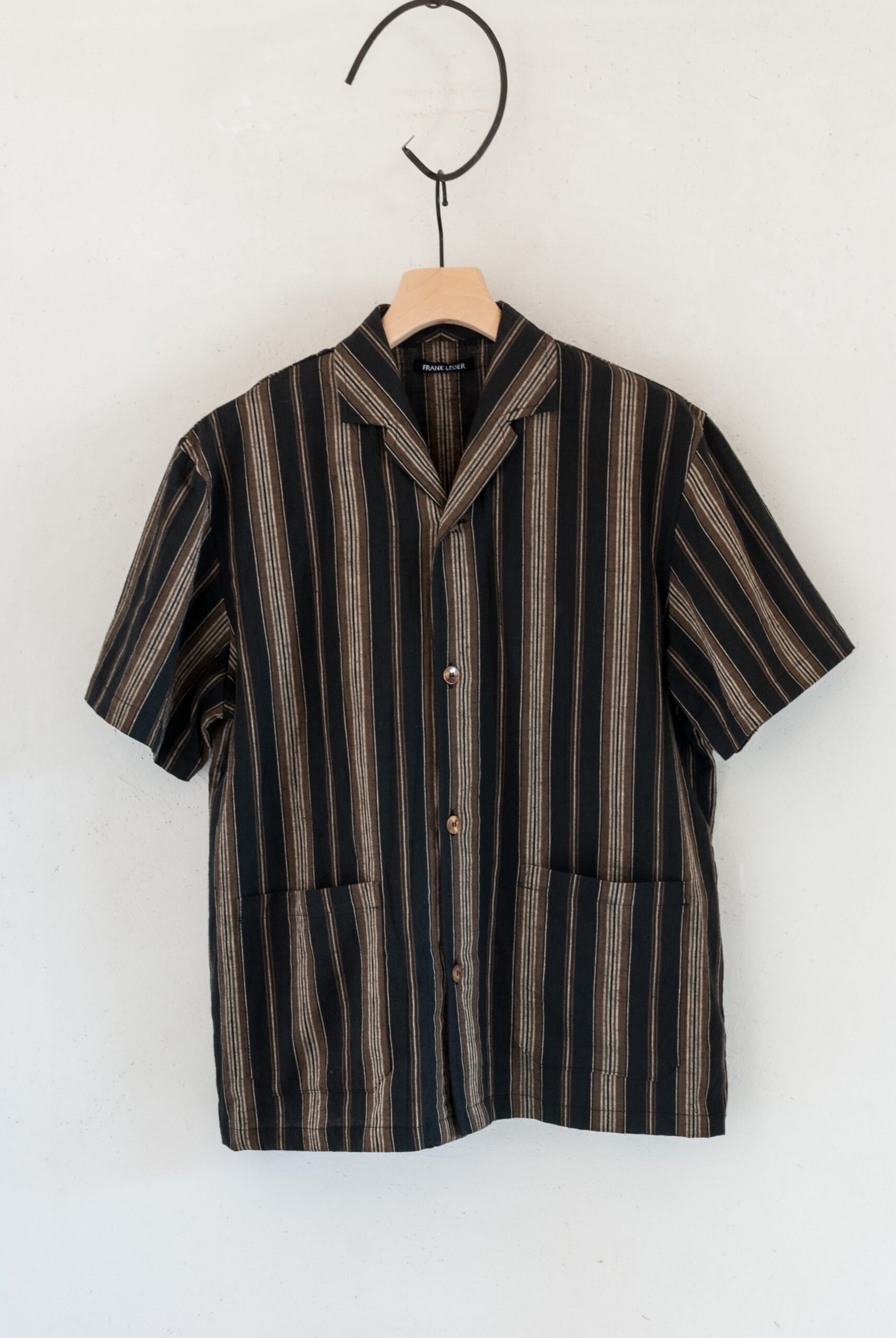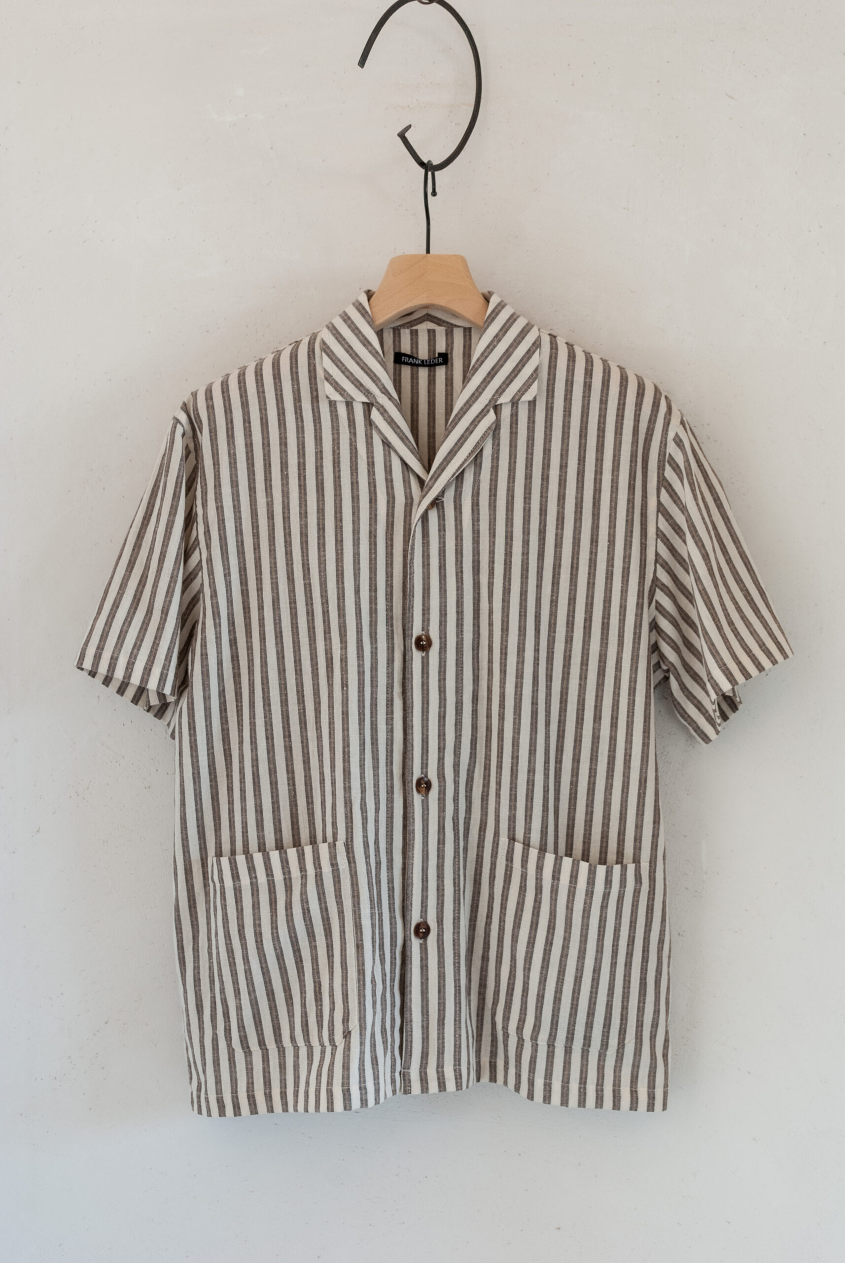 春や秋の肌寒い時期には、長袖Tシャツや七分袖との重ね着で、真夏は一枚でさらっと着て出かけられる存在感のあるストライプが印象的な、ちょうど良い生地感のシャツです。