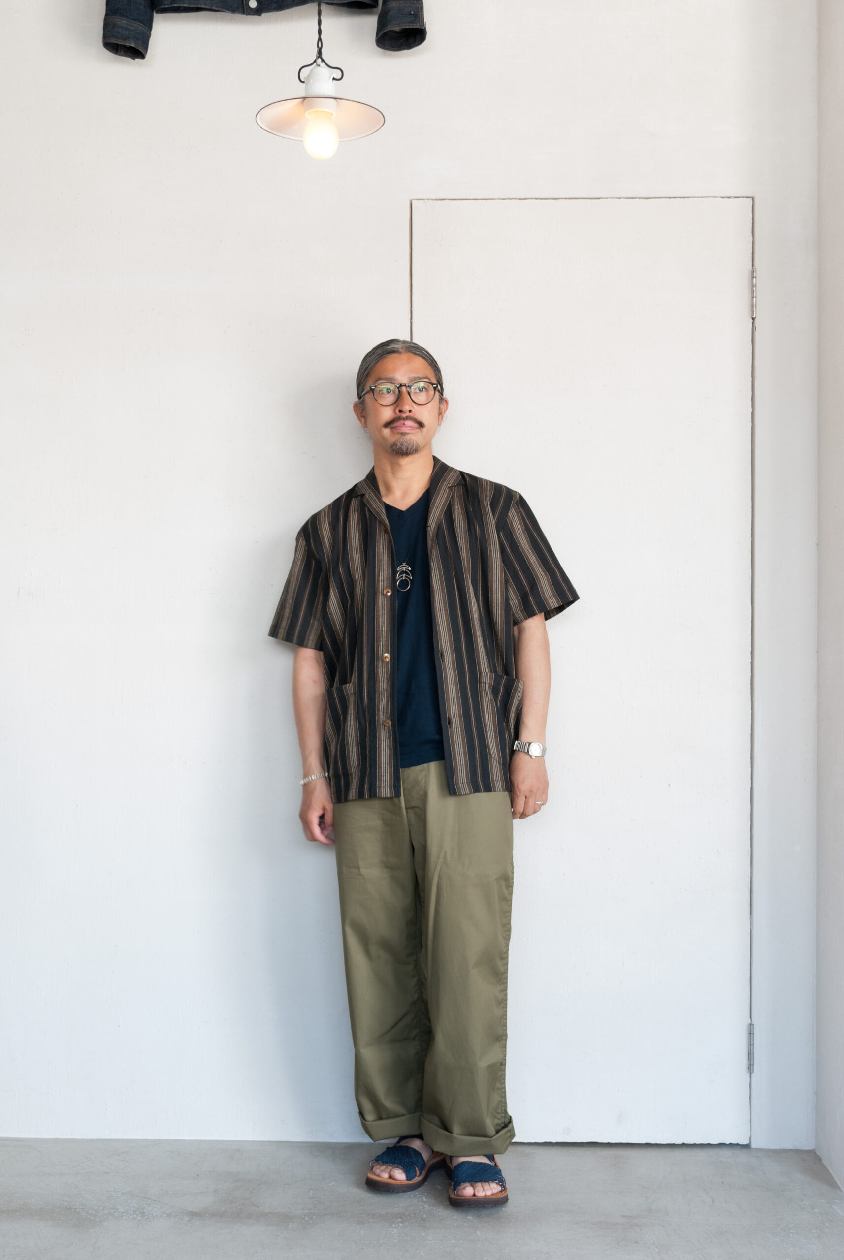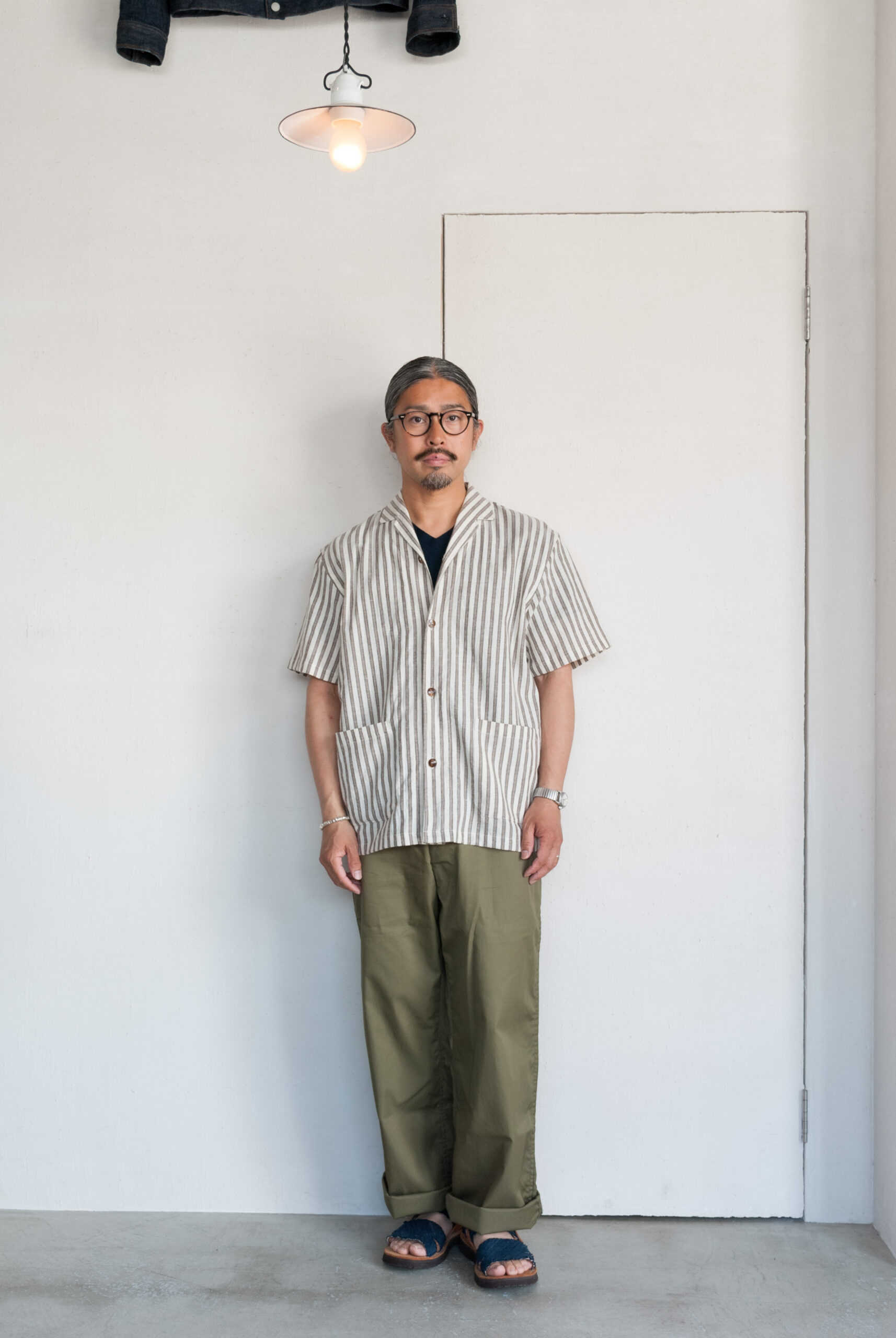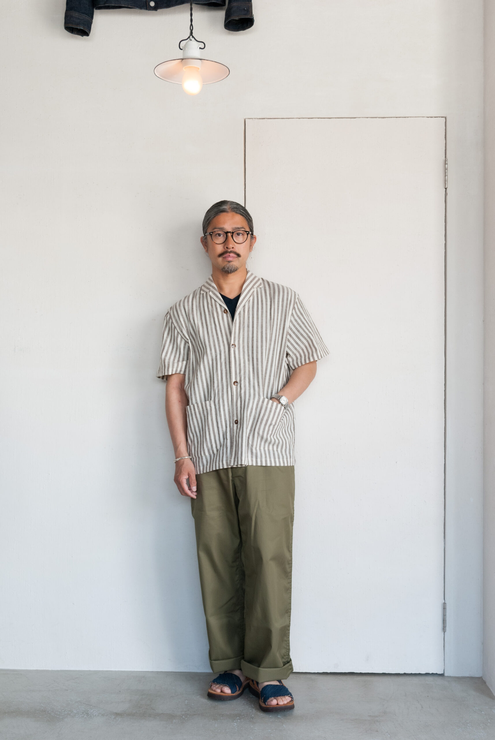一度試してみると意外と着やすいクラシックなムードの開襟シャツは、台襟のないすっきりとしたネックラインとボックス型の着丈が特徴で、わりと幅広い体型の方が取り入れやすい形です。