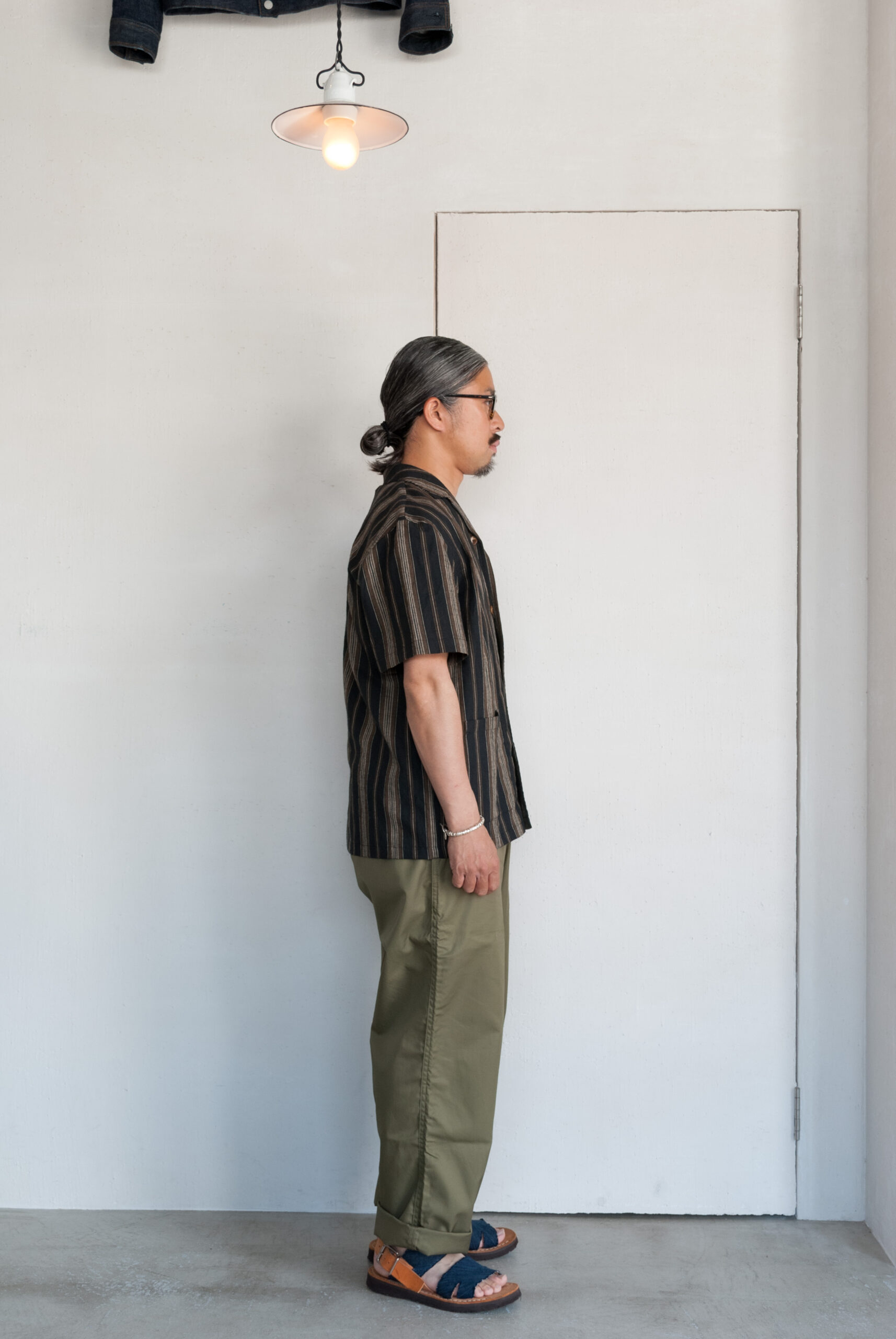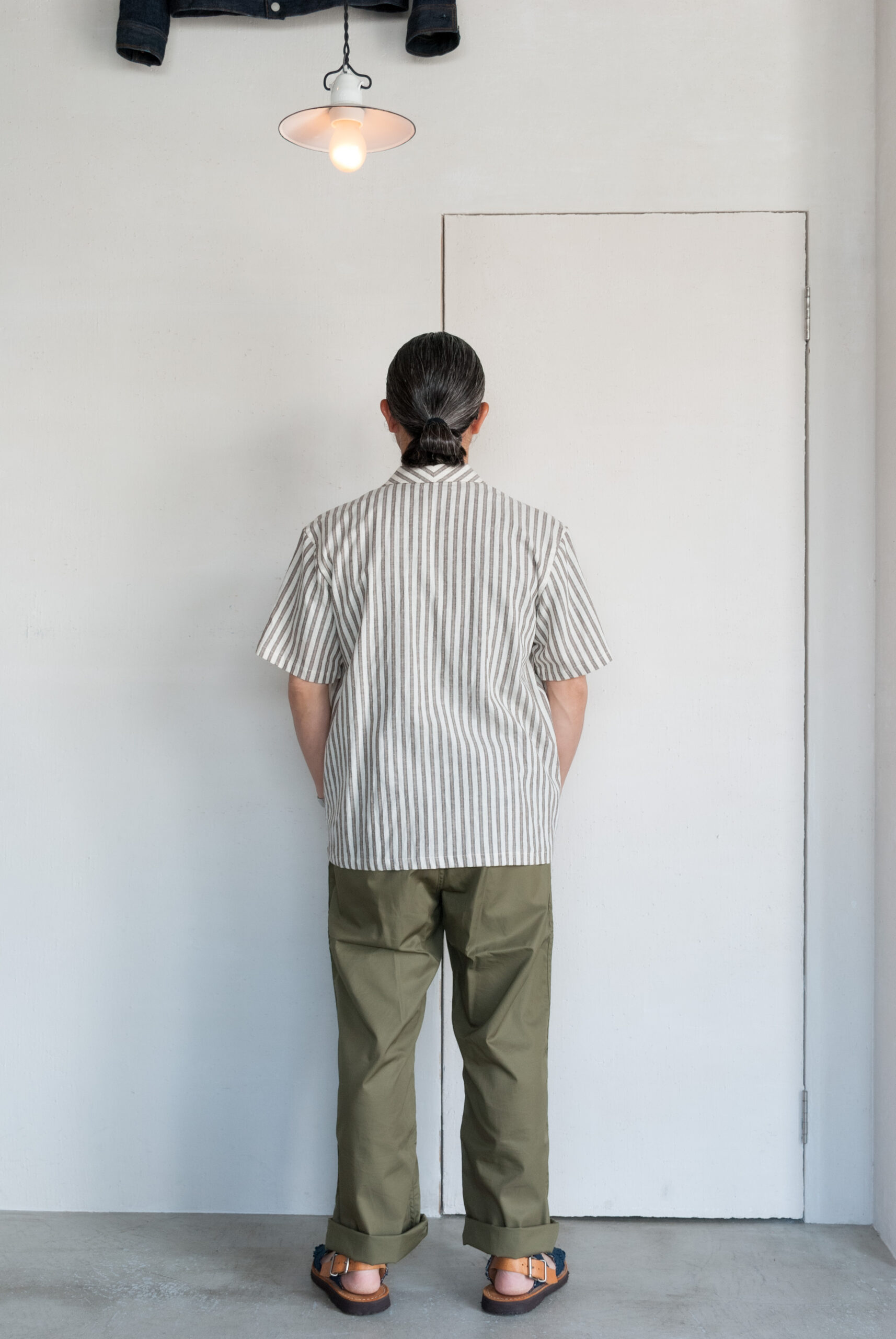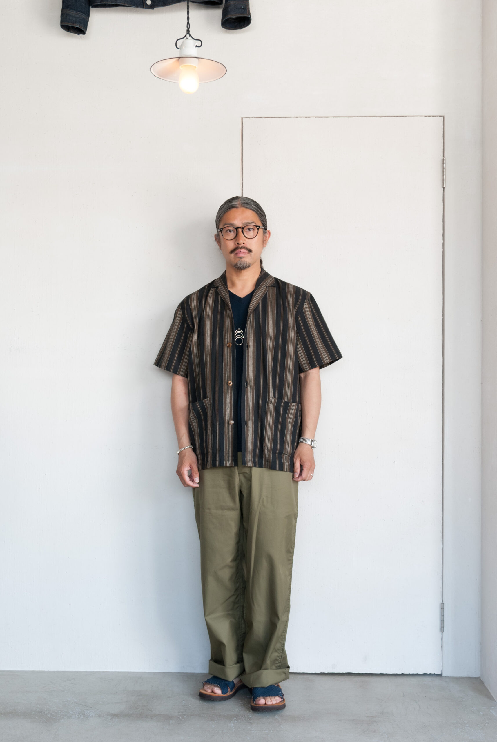 一度試してみると意外と着やすいクラシックなムードの開襟シャツは、台襟のないすっきりとしたネックラインとボックス型の着丈が特徴で、わりと幅広い体型の方が取り入れやすい形です。
