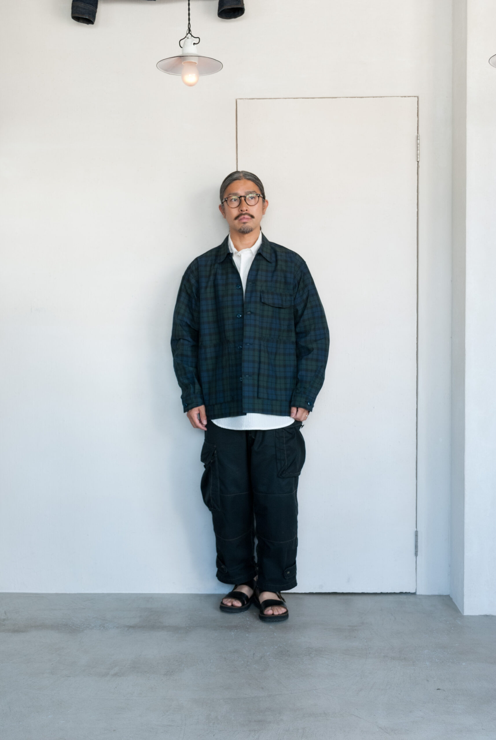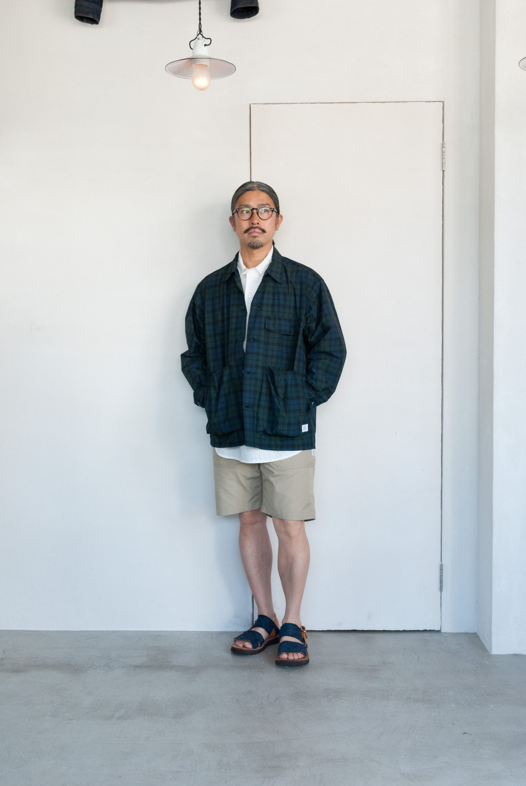 シャツよりは少しジャケット寄りのボックスシルエットで身幅もたっぷり取られているので、ライトアウターとして、半袖シャツやカットソーの上に着やすくなっています。