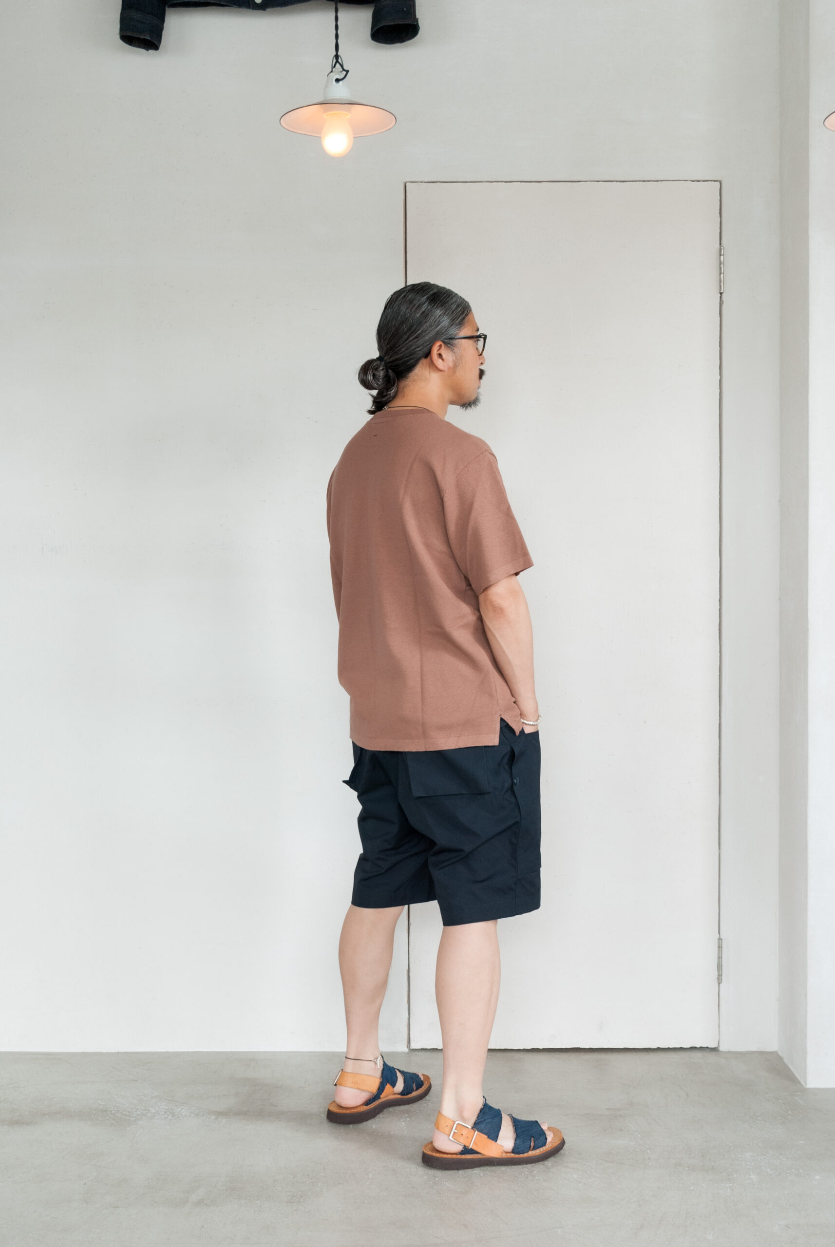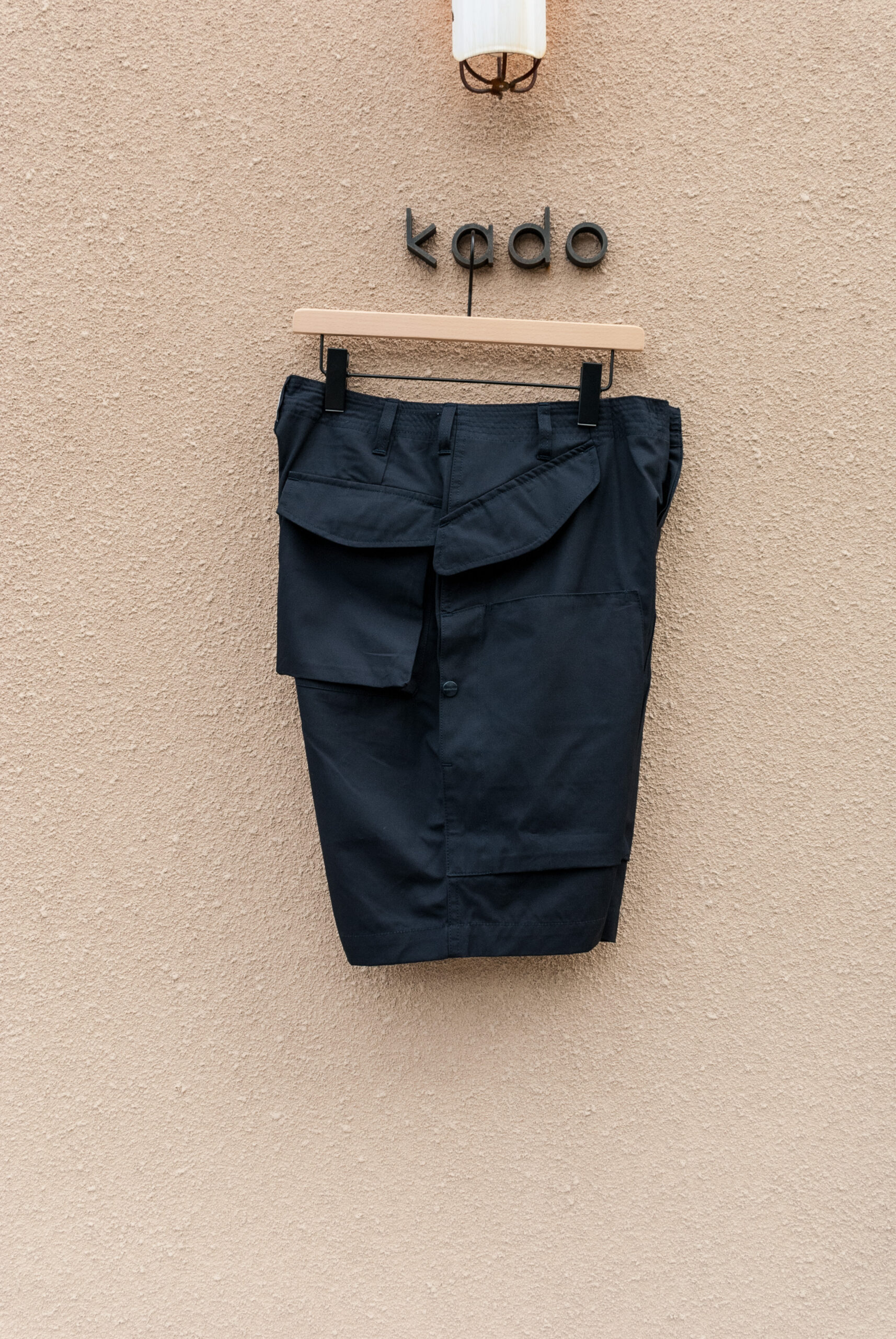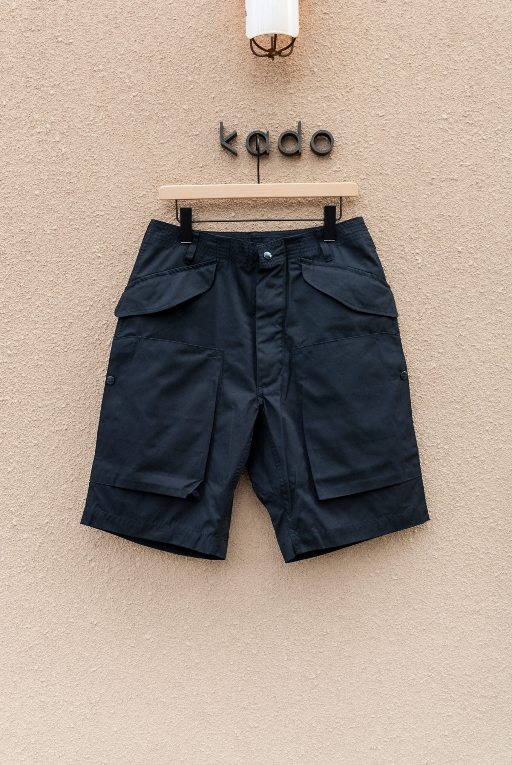 ヘリクルーパンツをベースに、ハーフパンツにポケット8個という、狭い面積に配置された盛りだくさんのポケット。