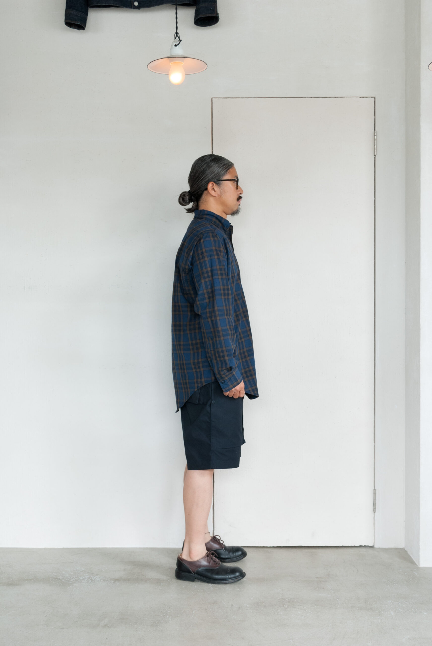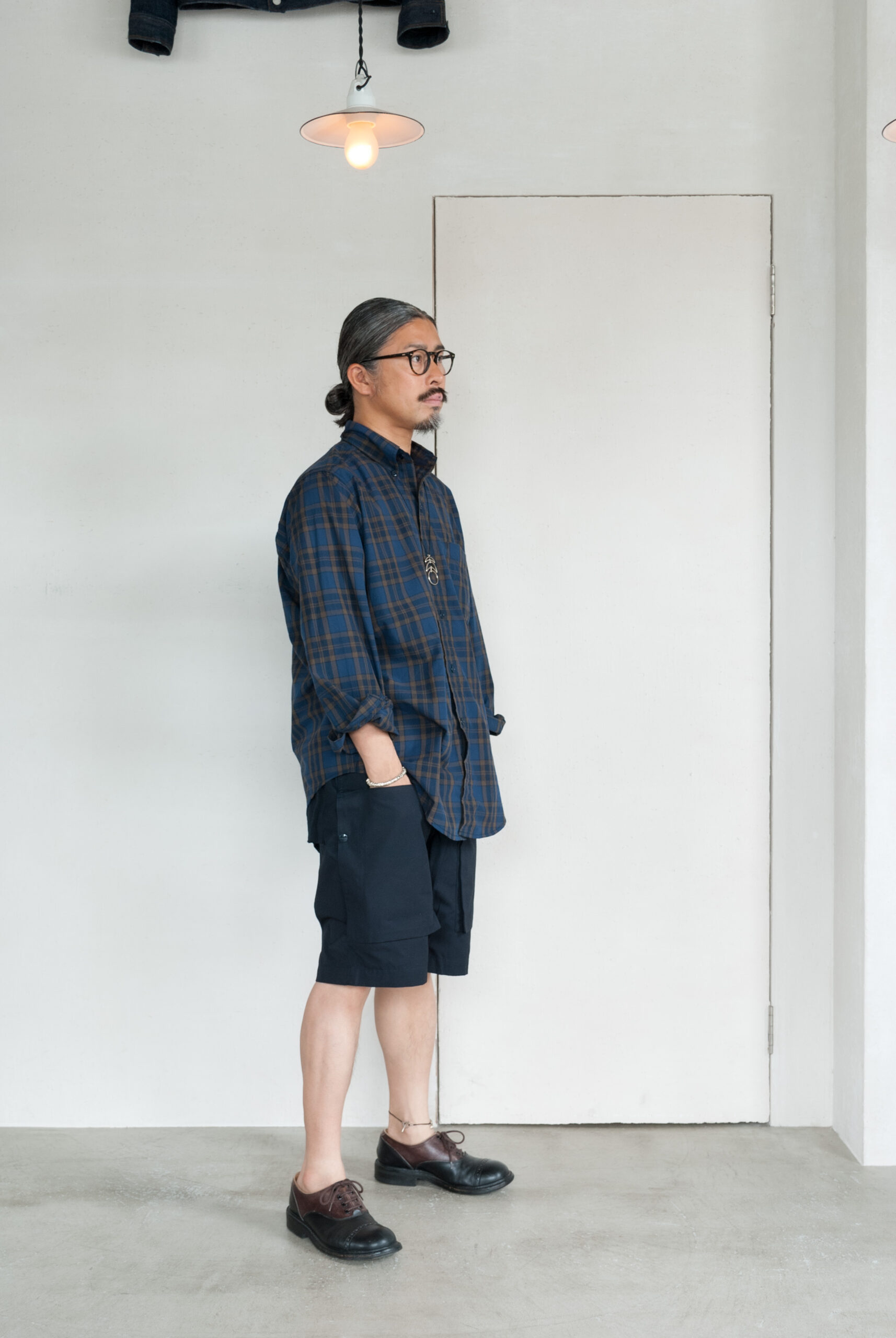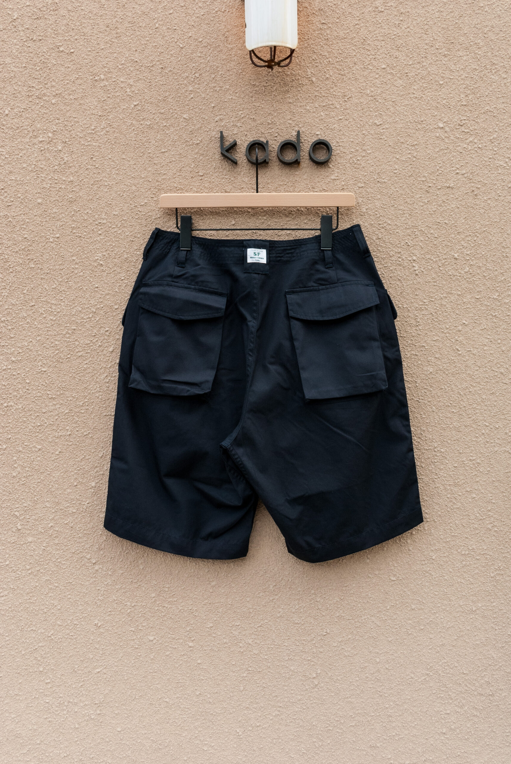 ヘリクルーパンツをベースに、ハーフパンツにポケット8個という、狭い面積に配置された盛りだくさんのポケット。