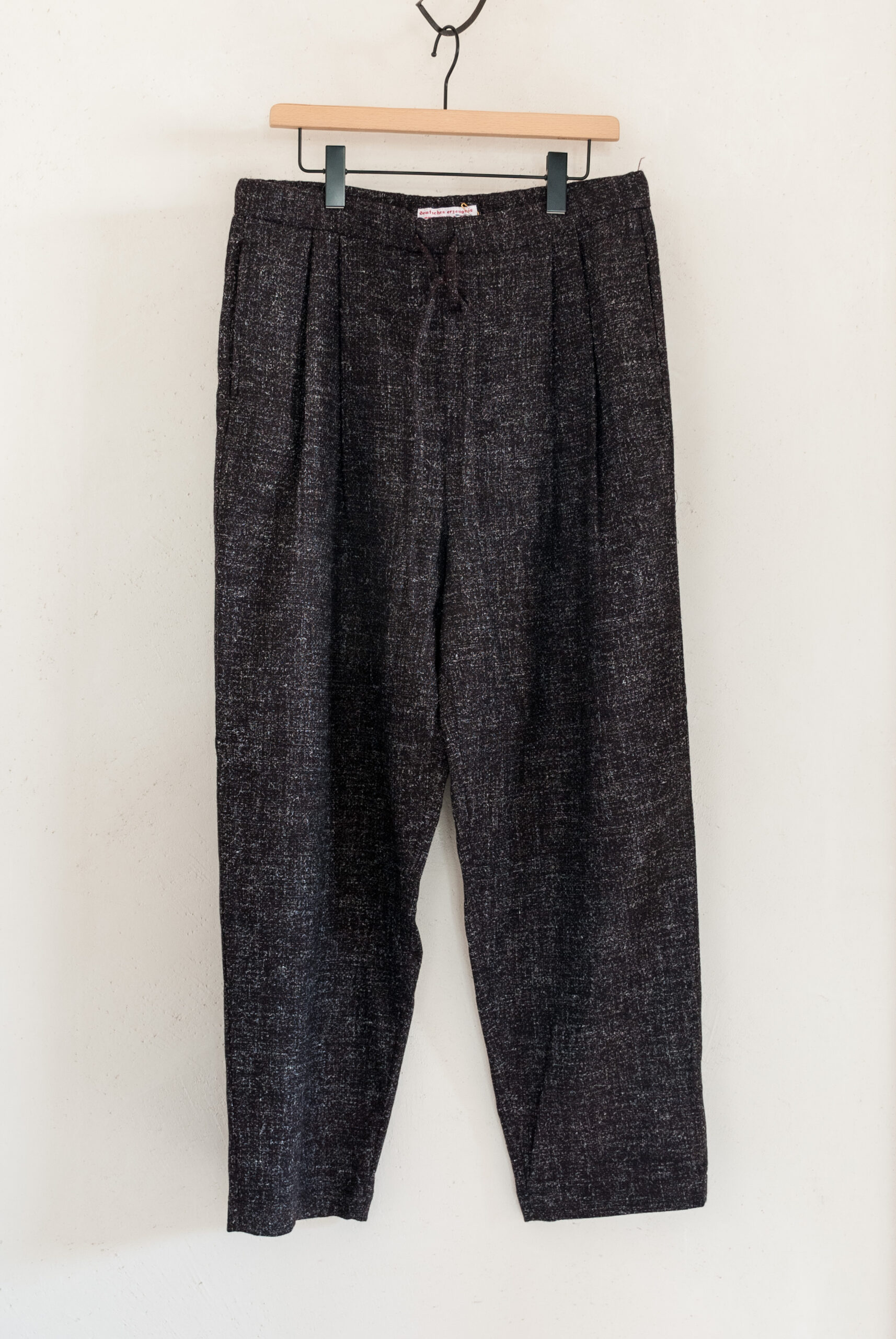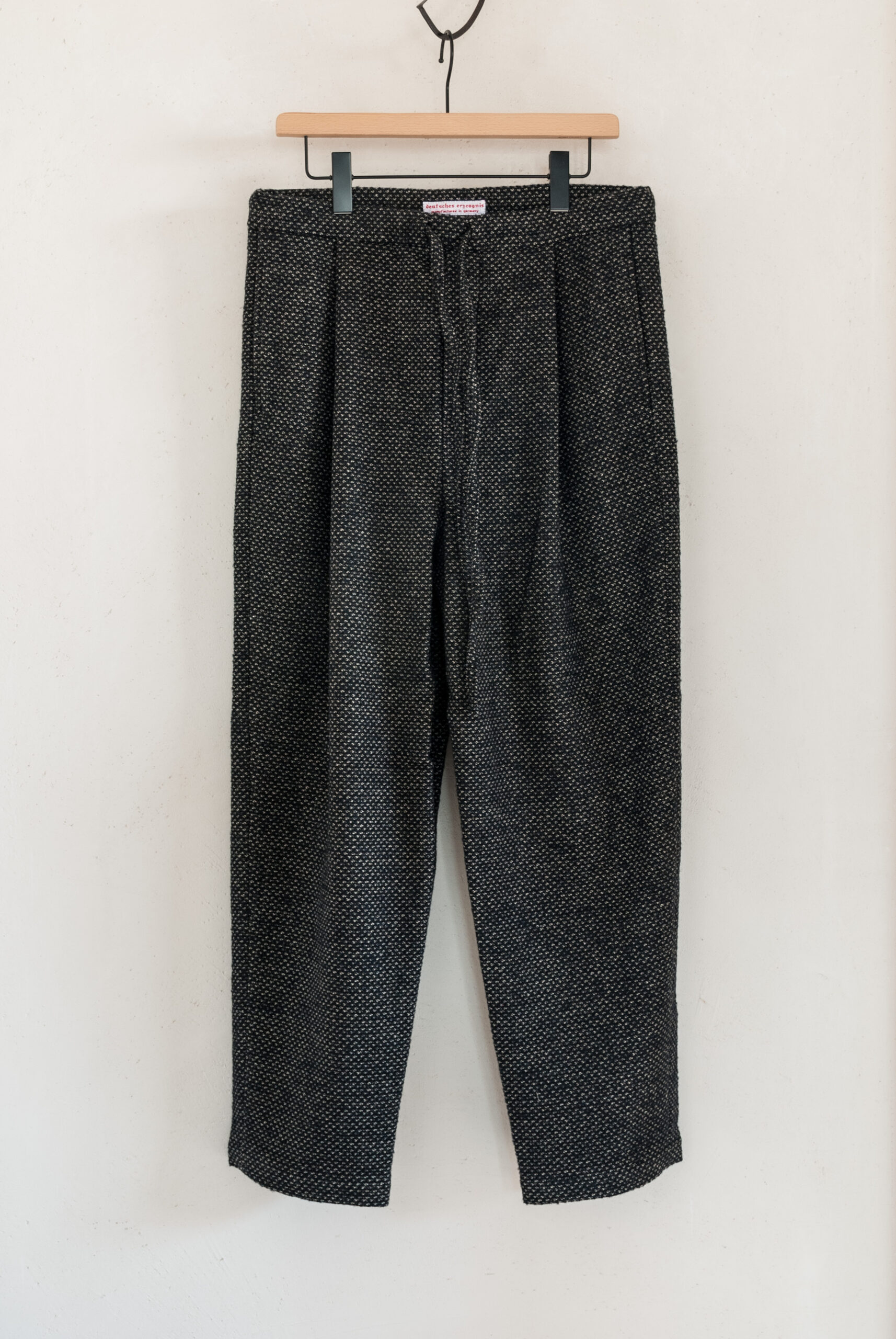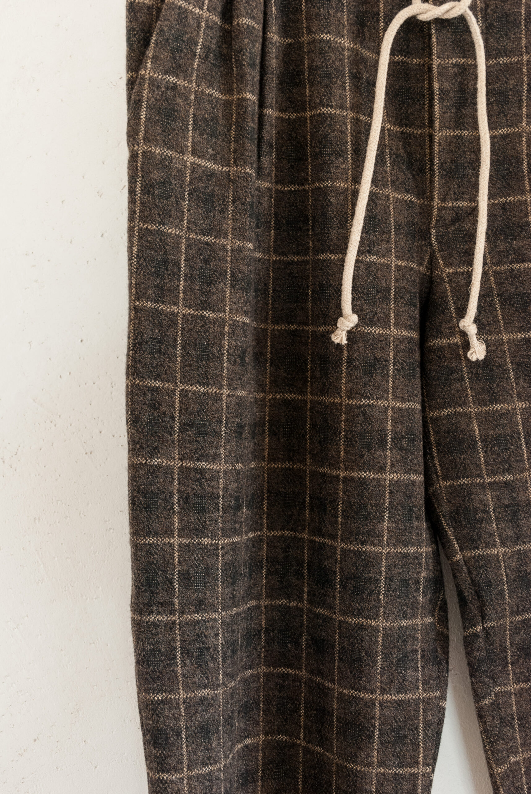 CHEQUERED WOOL JERSEY DRAWSTRING 2TUCK TROUSERS
