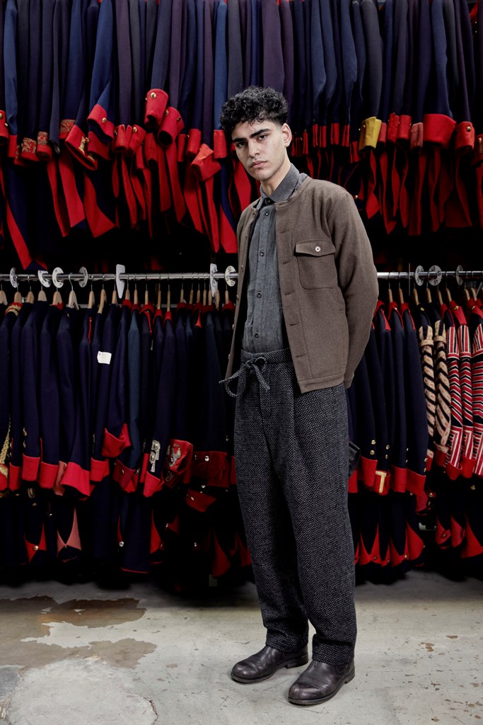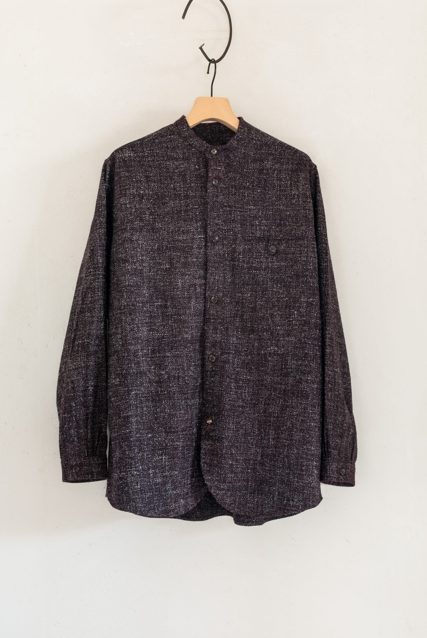 RED / DARK BLUE WOOL OLD STYLE STAND COLLAR SHIRT