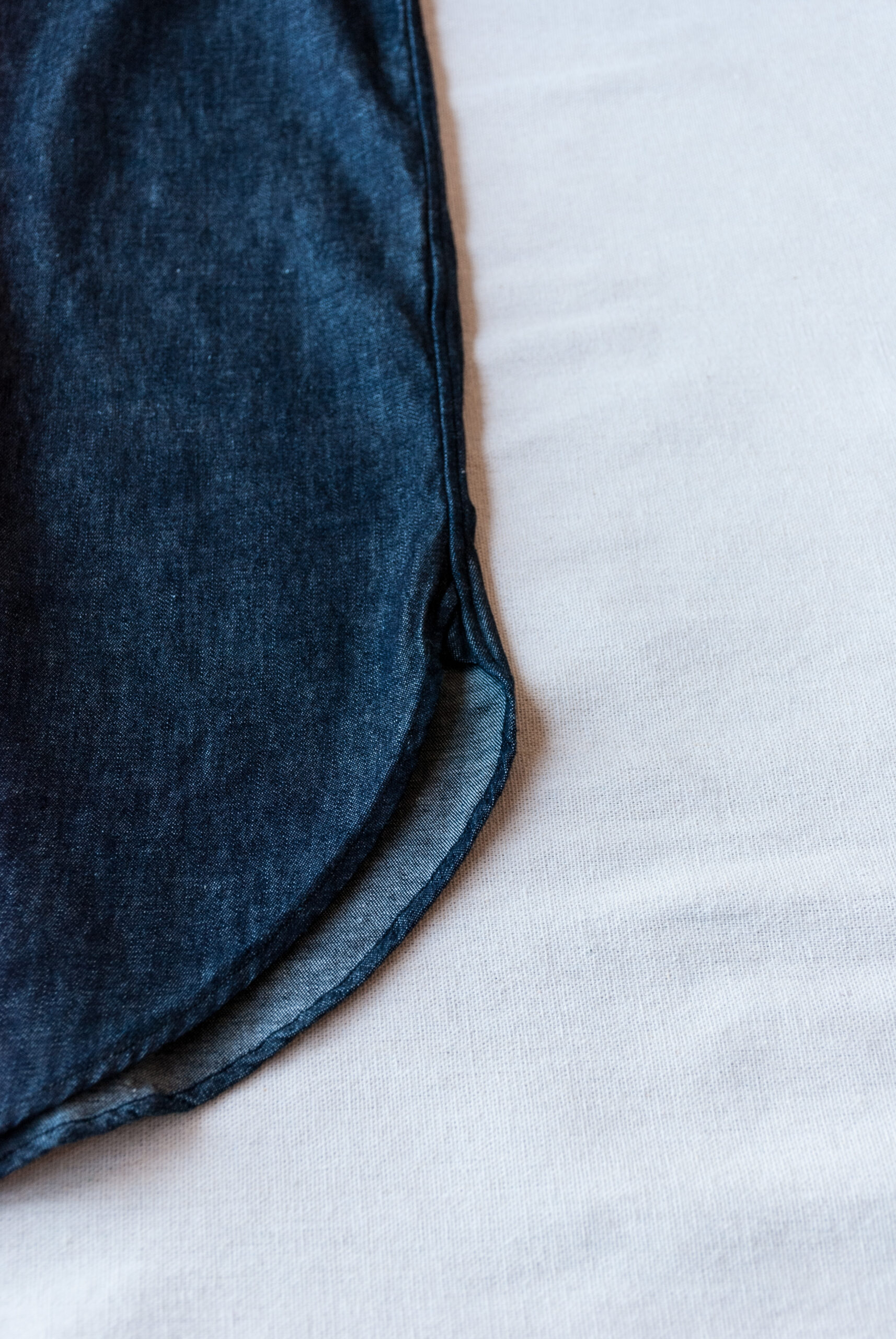 ライトデニムは、ゴワゴワした厚手な感じではなく、しなやかで柔らかい、シャツにもってこいな生地の厚み。