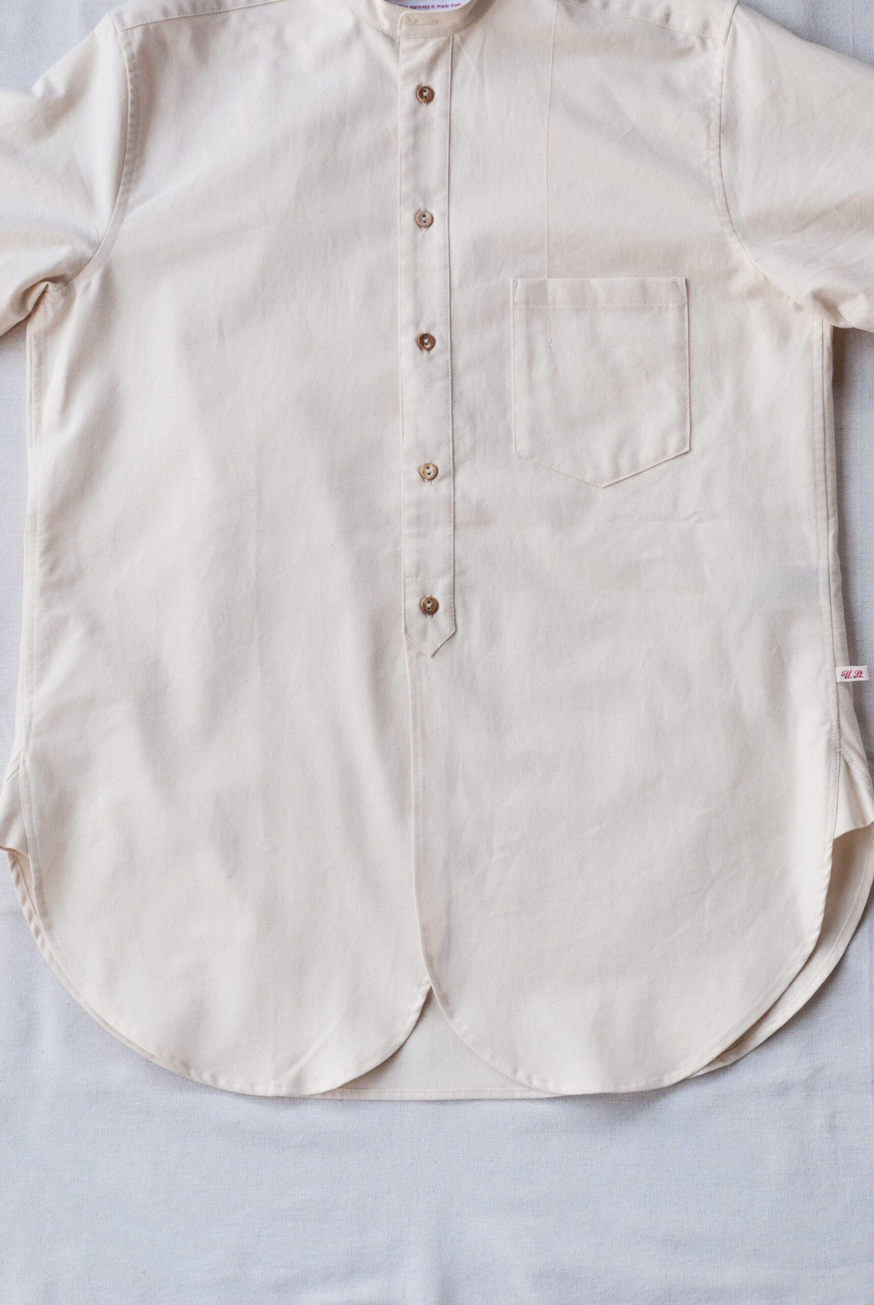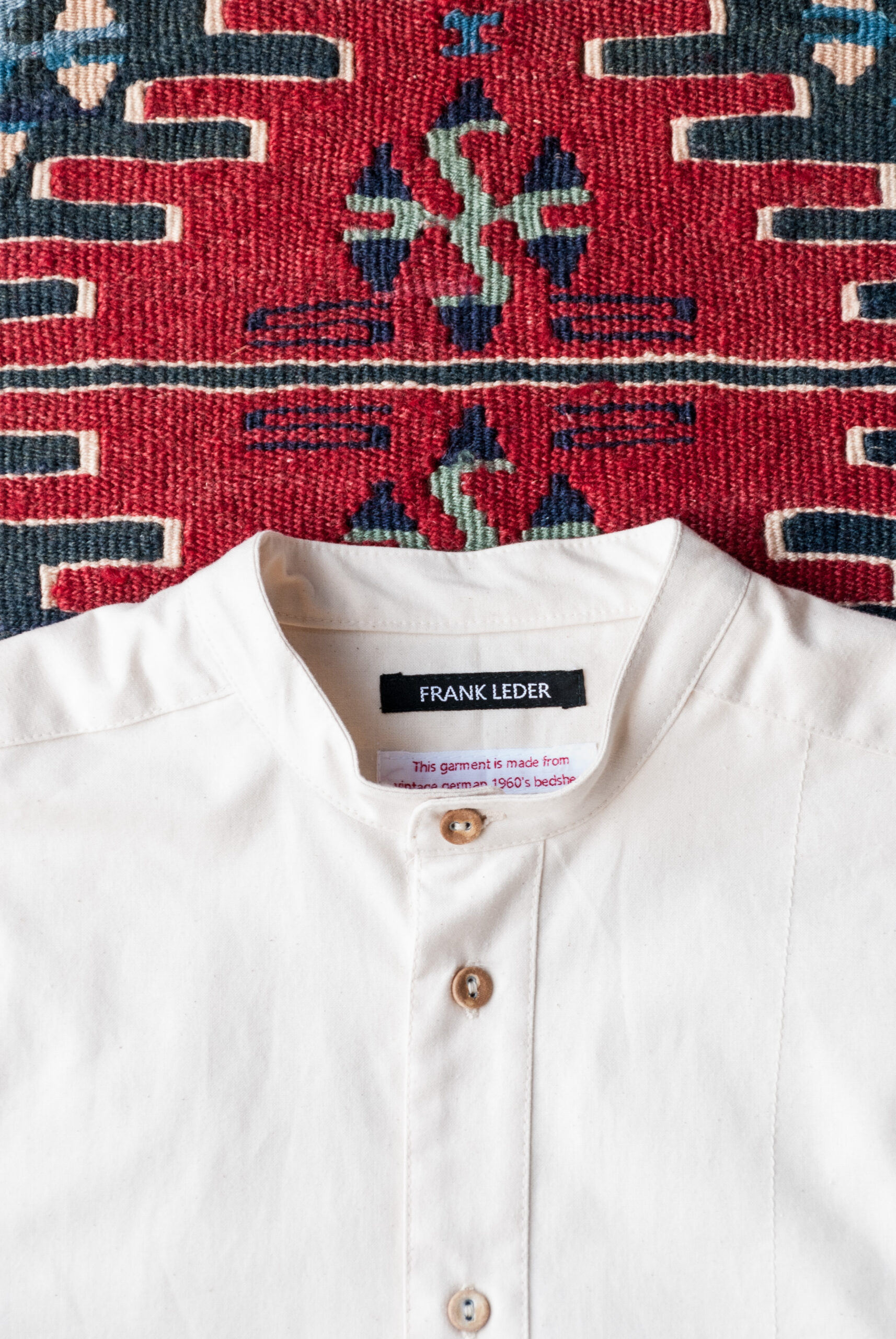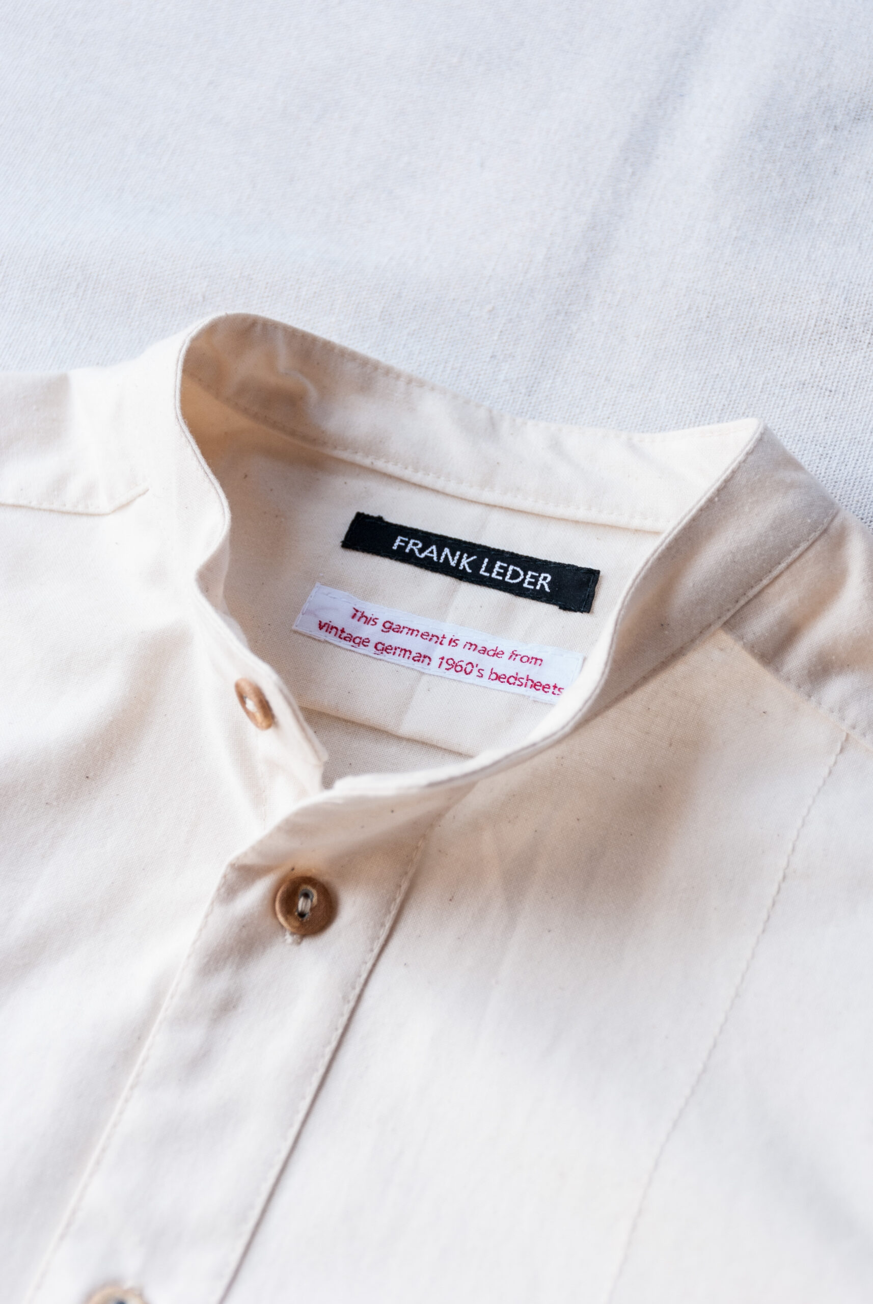 今回ご紹介するシャツは、冷戦によって第三次世界大戦に突入する事を想定して備蓄され、1960年代にドイツ軍で実際に使われていた軍用ベッド用シーツを使った物。
