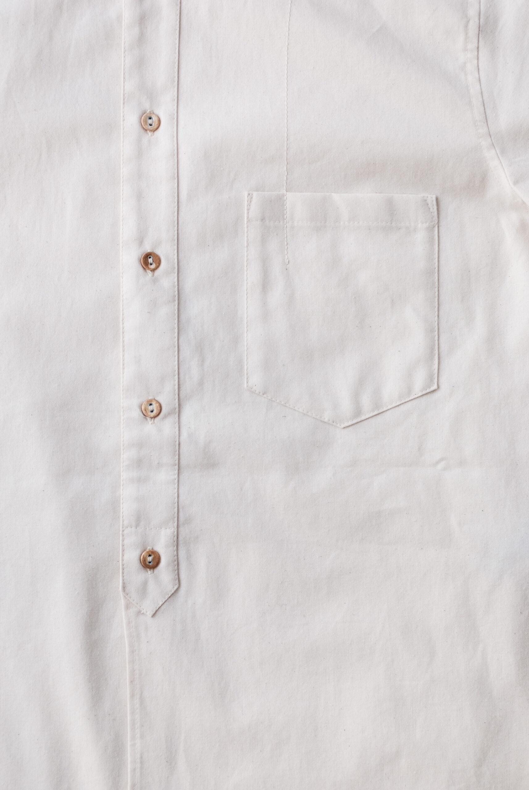 今回は少しベージュがかった生成り色で、ところどころ綿花の殻のカスが生地に少し残ったような素朴な風合いが味わい深い生地です。