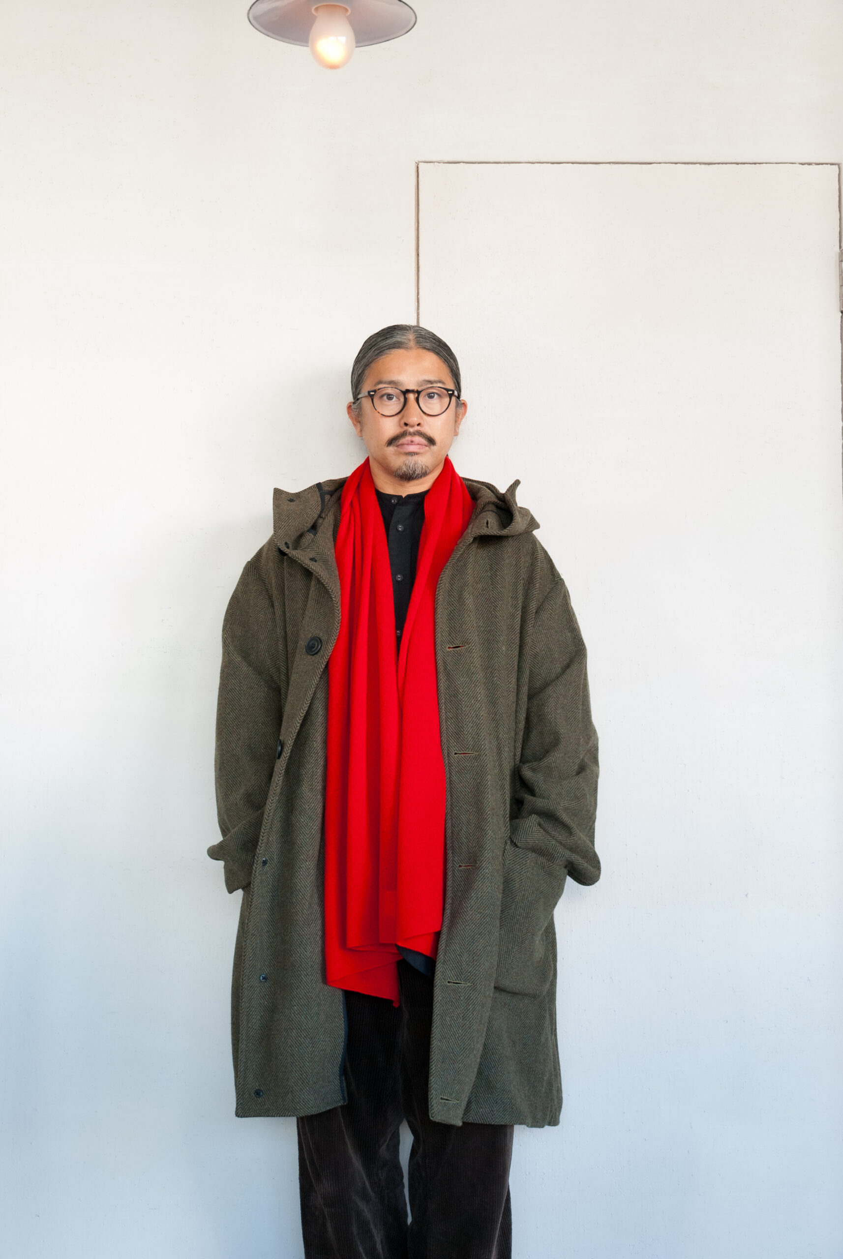 テキトーに首から垂らしても、ぐるぐる巻きにしても、なんだか雰囲気ある感じに仕上がります。