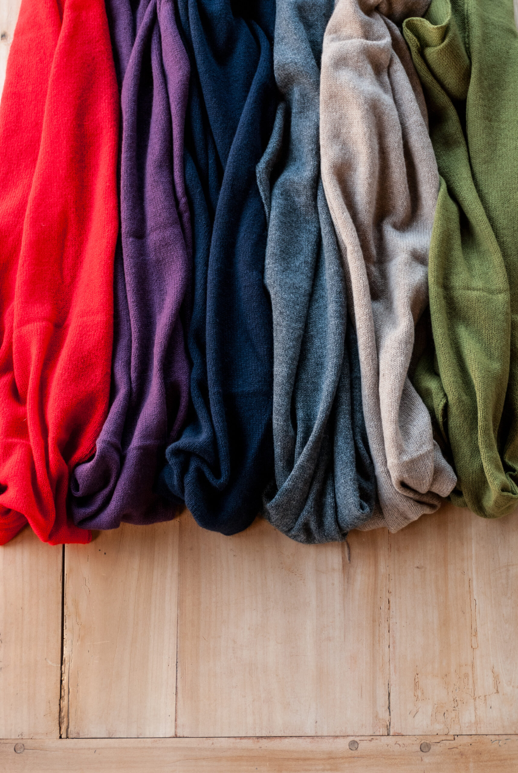 そんなこだわりの編機に『繊維の宝石』カシミヤの双糸を使って、ゆっくりと時間をかけて丁寧に編み立てたからこそたどり着ける境地。