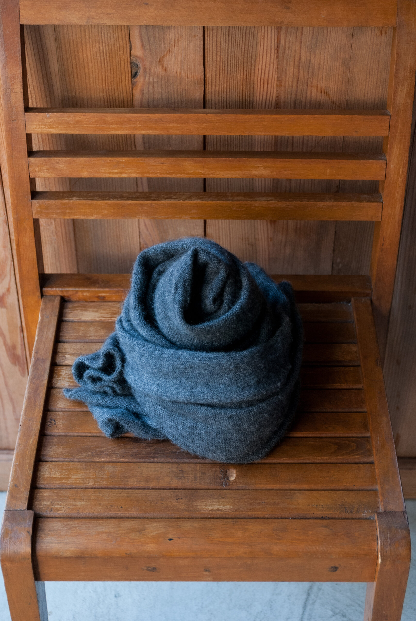 極限までシンプルで模様も装飾もない大判のストールなので、好みのスタイルや年齢、性別を問わず使って頂けるかと思います。