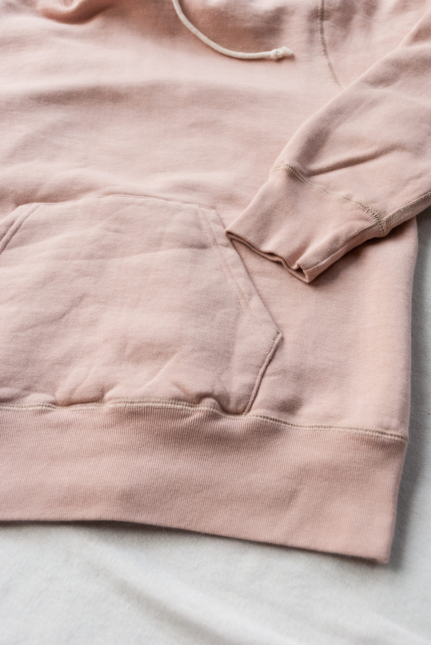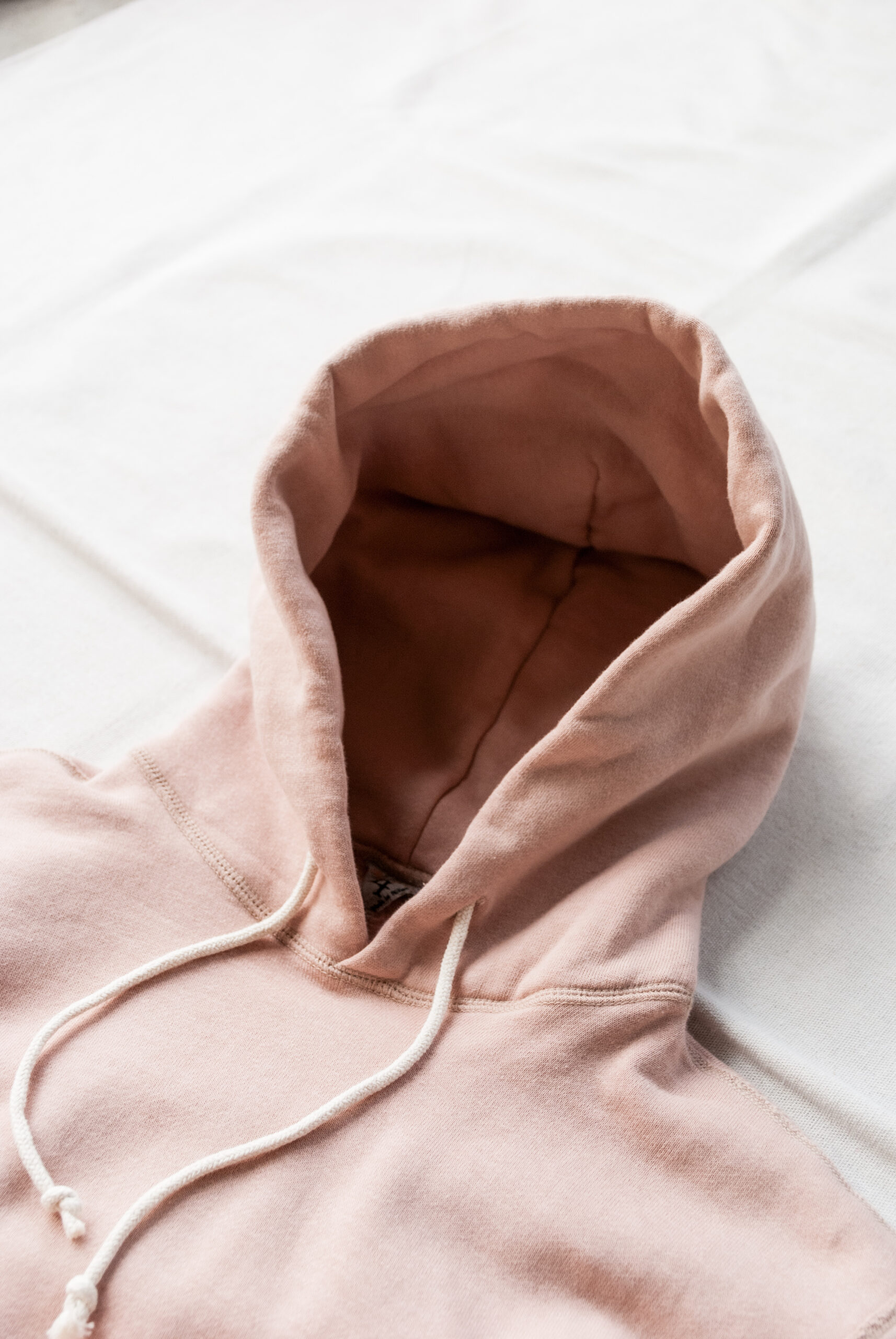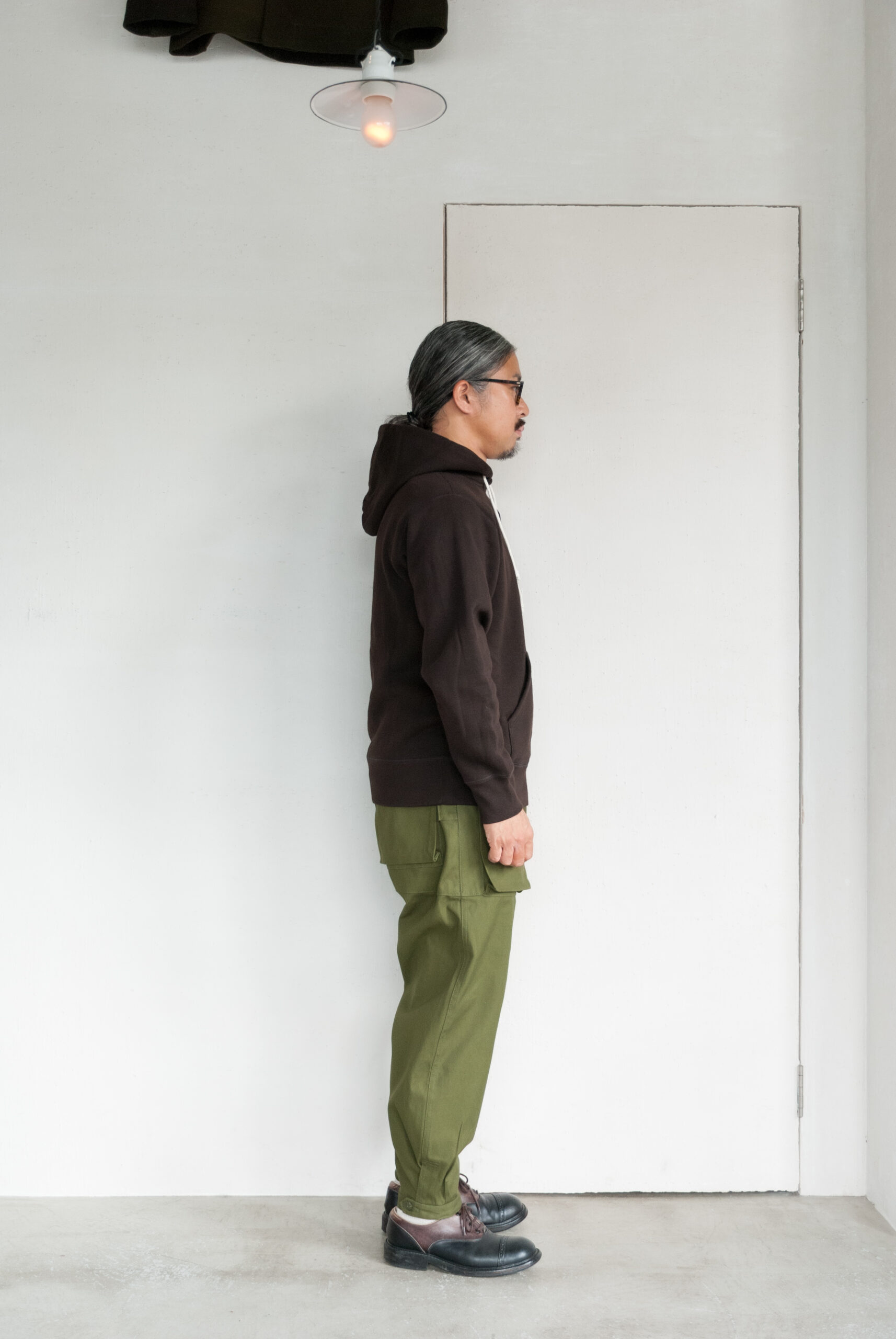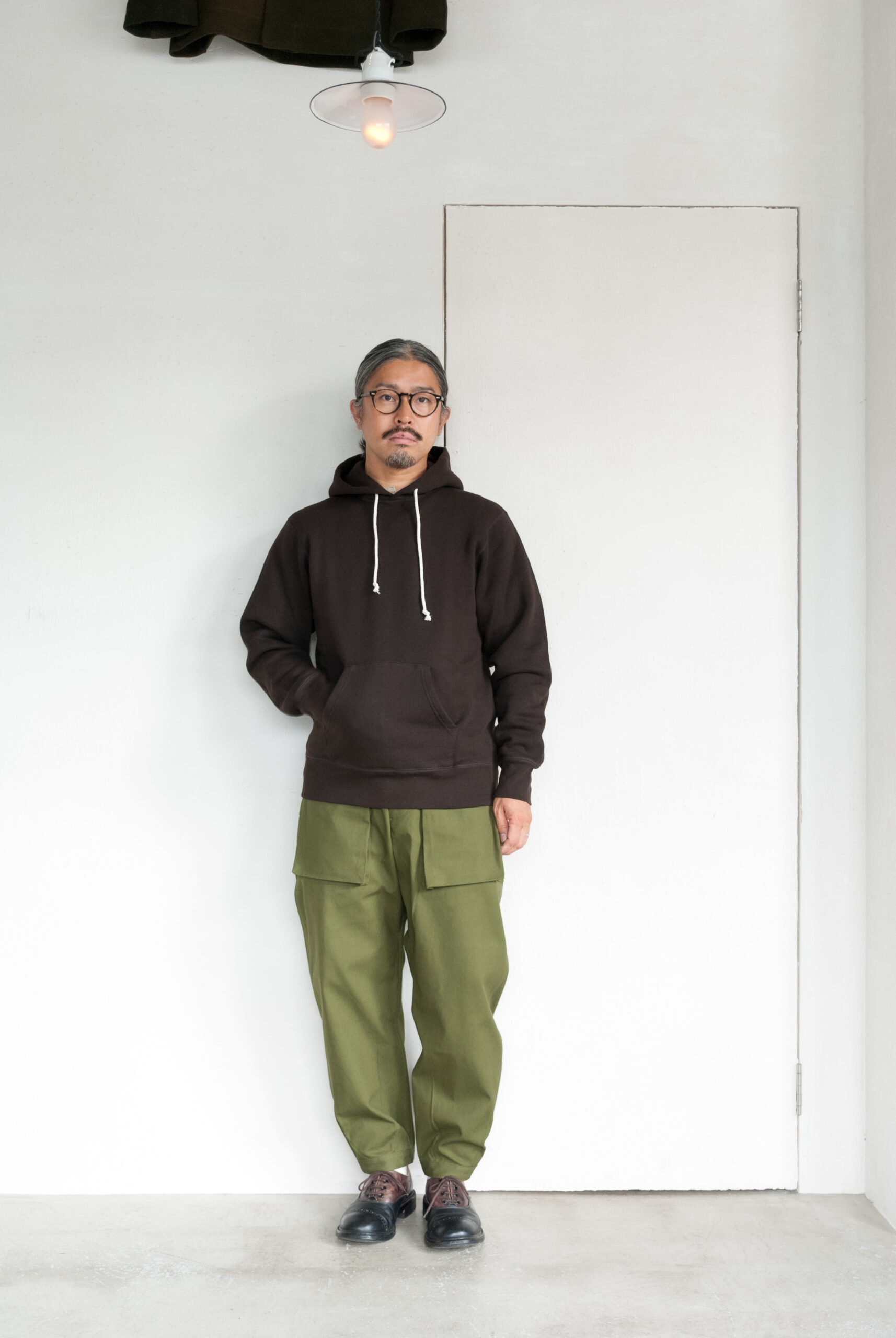 シルエットはとてもベーシック、一枚でも様になり、重ねても変にゴロゴロせず着やすい。フードの肉感もバッチリ。