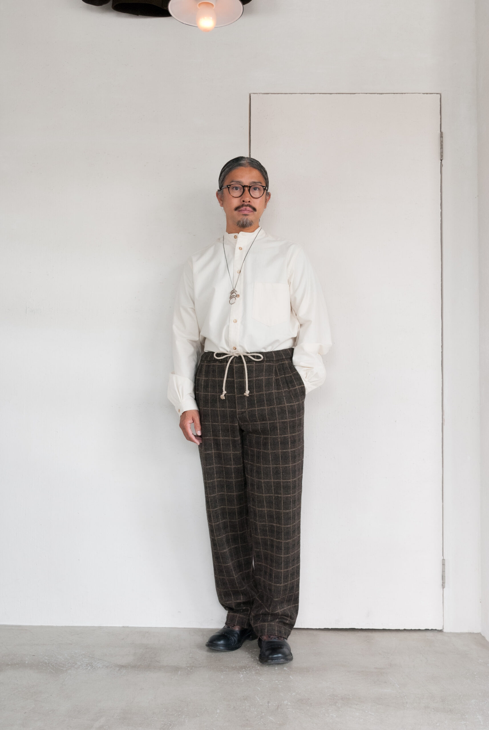 【CHEQUERED WOOL JERSEY DRAWSTRING 2TUCK】