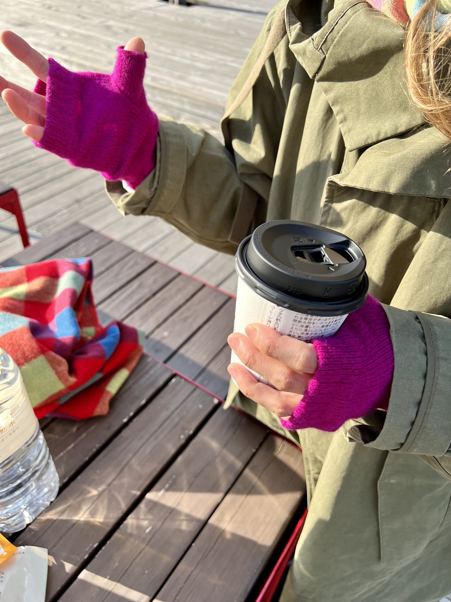 指先が使えるので外さなくてもいろいろできる普段使いに丁度いいミトン。