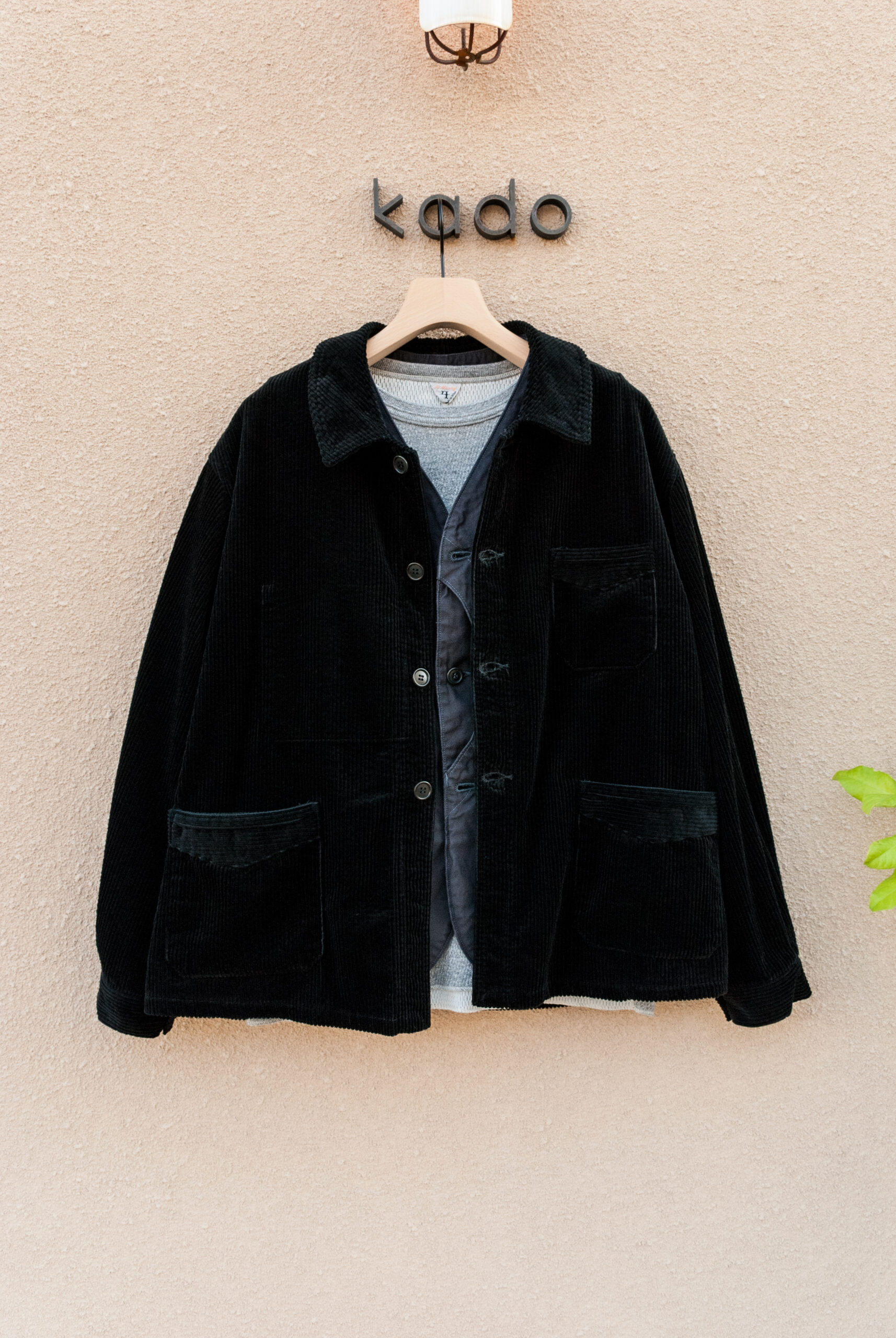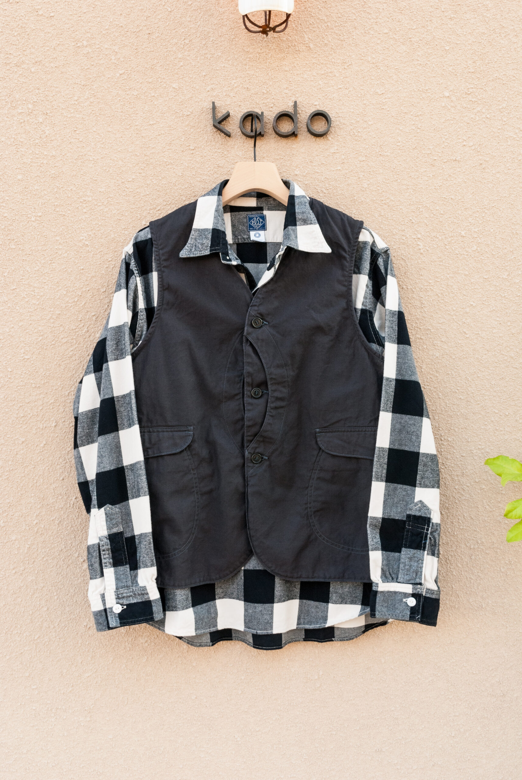 ビンテージのハンティングウエアをベースに、たっぷりとした身幅とレイヤリングしやすい着丈、中央と両サイドに配置されたポケットはかなりの容量を誇り、鞄要らず。