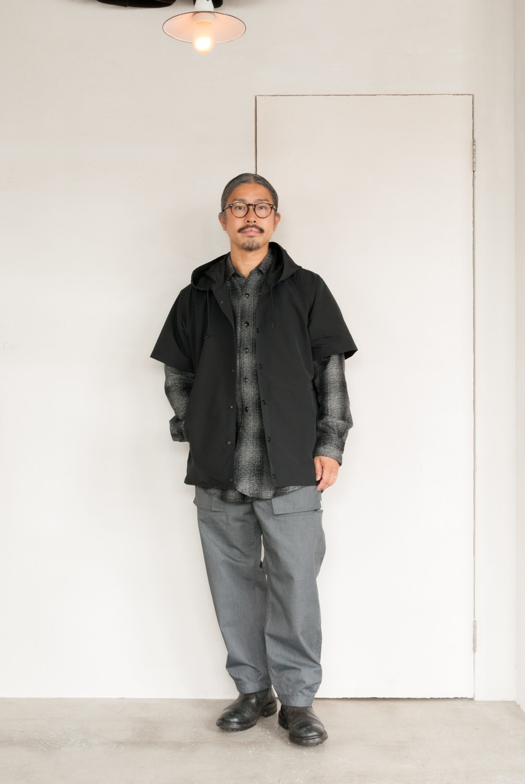 ヘビーネルなので、下にスウェットパーカーを着てみたり、コーデュロイパンツやウールパンツと合わせて冬らしいテクスチャーの感じを主張させたり、使う色をモノトーンに制限して、クリーンに仕上げたり、裾のガゼット(マチ)部分がレフライトのリフレクター仕様になっているので、そのあたりの感じをひろってスウェットパンツにスニーカー(ニューバランスかな)とかも良さそうですね。