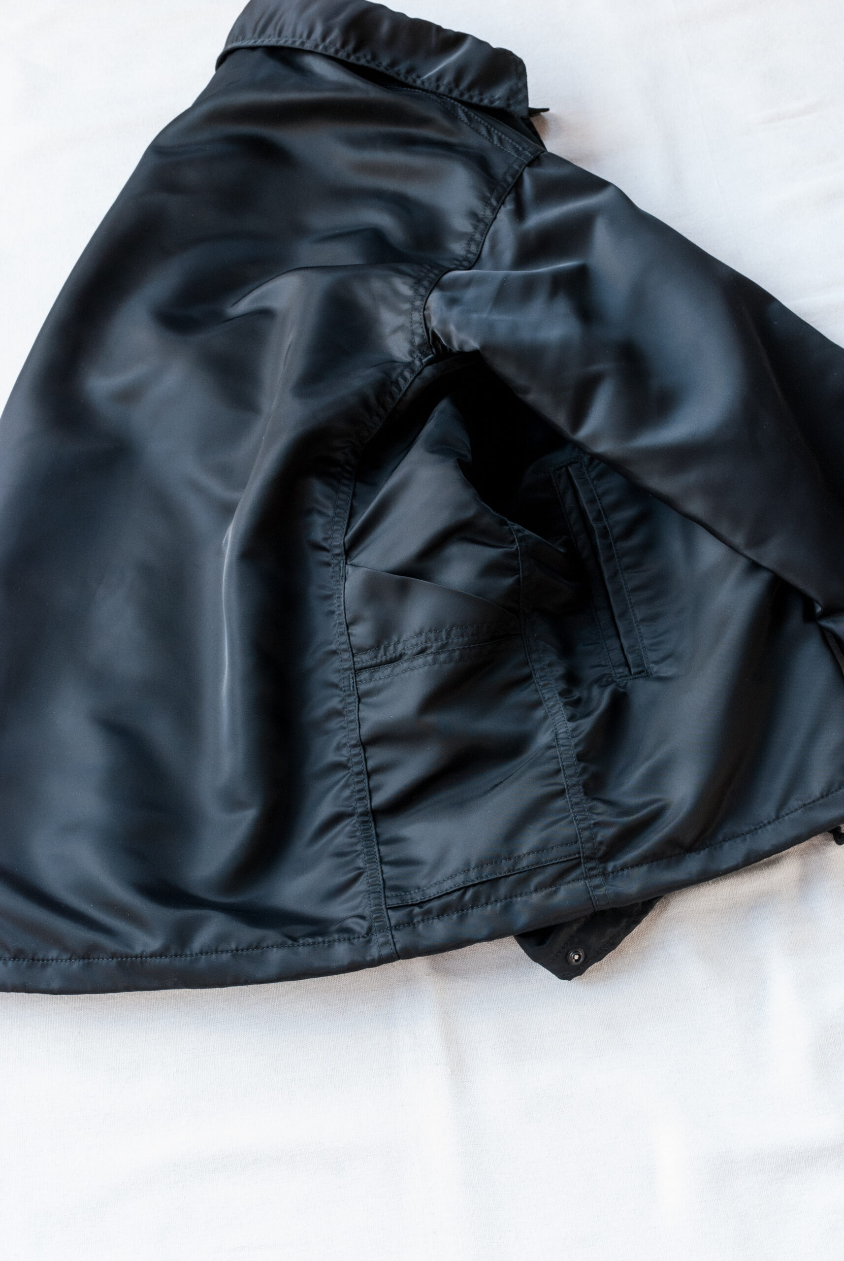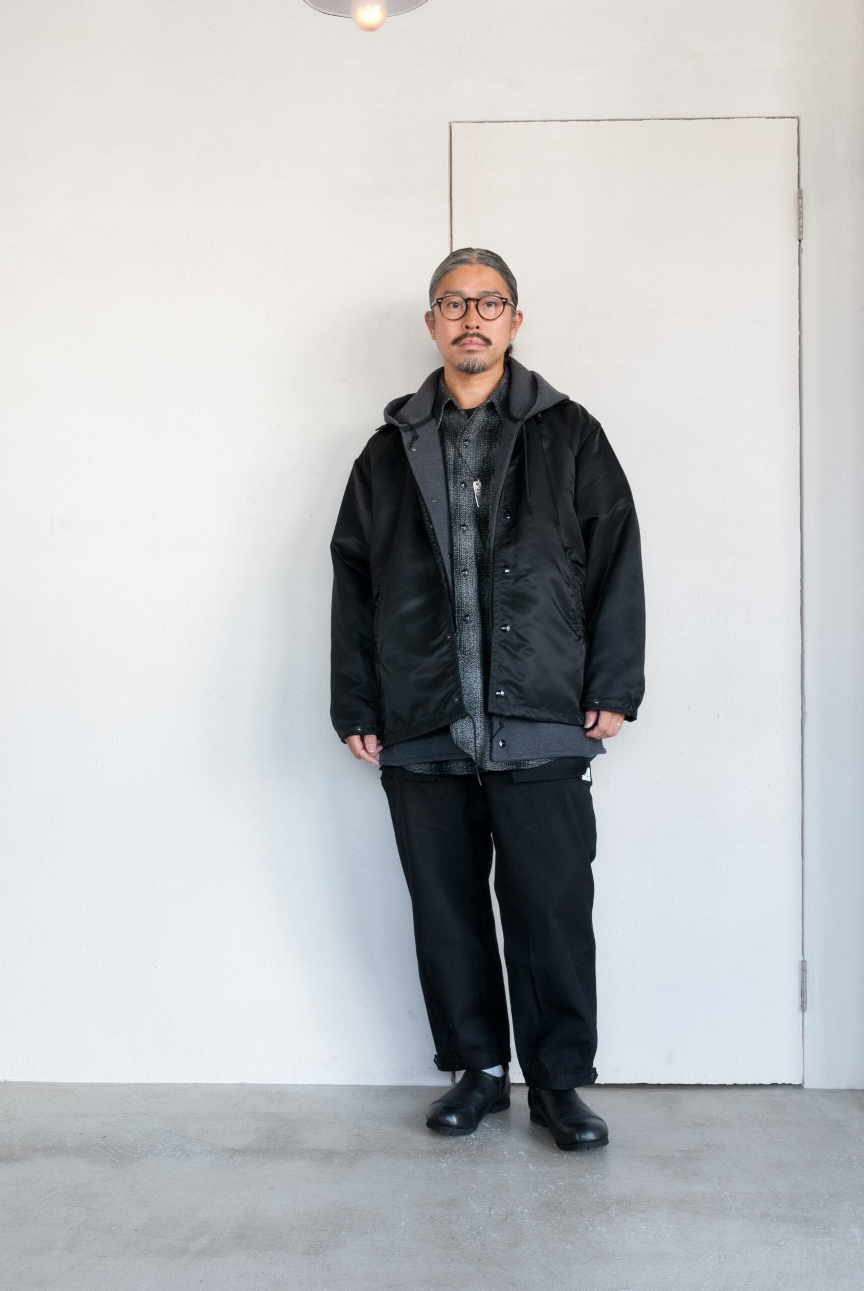 ナイロン100%の服は、ほぼ仕入れたことがないので凄く新鮮ですが、この光沢感のある生地を、ちょっとかっちりしたスタイルに混ぜ込んだり、逆にワンマイルウエアと合わせたり、モリモリに重ね着したりしてみました。
