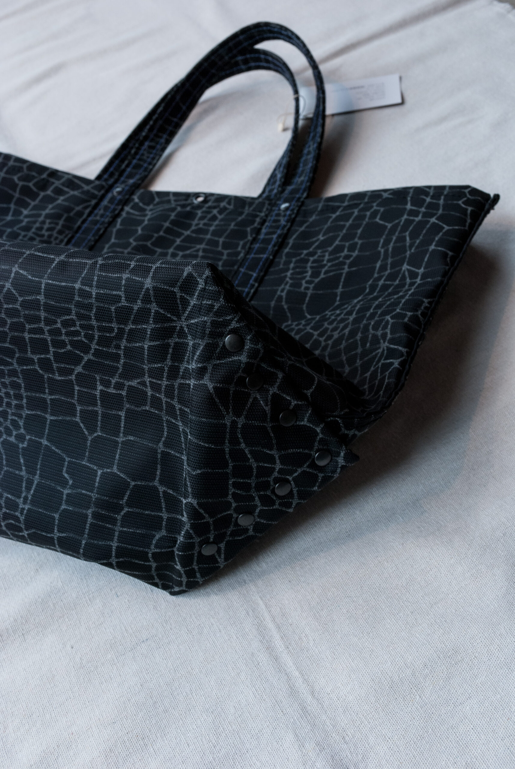 反射する蜘蛛の巣柄のナイロンか、味わい深いインディゴキャンバスか