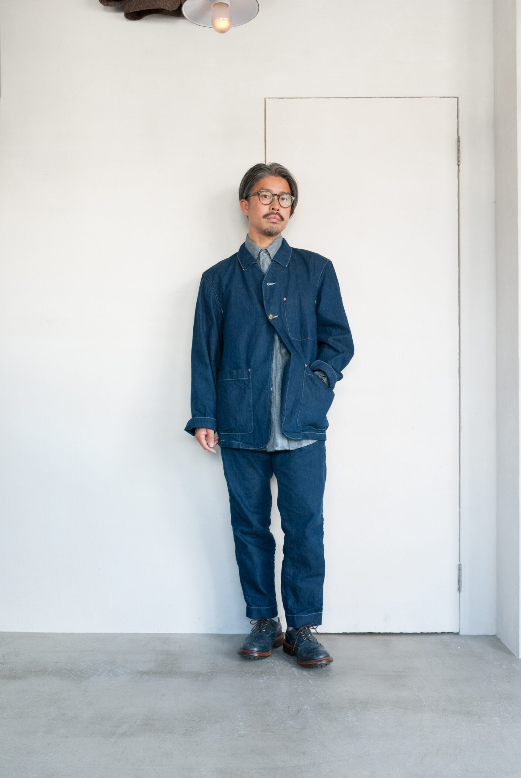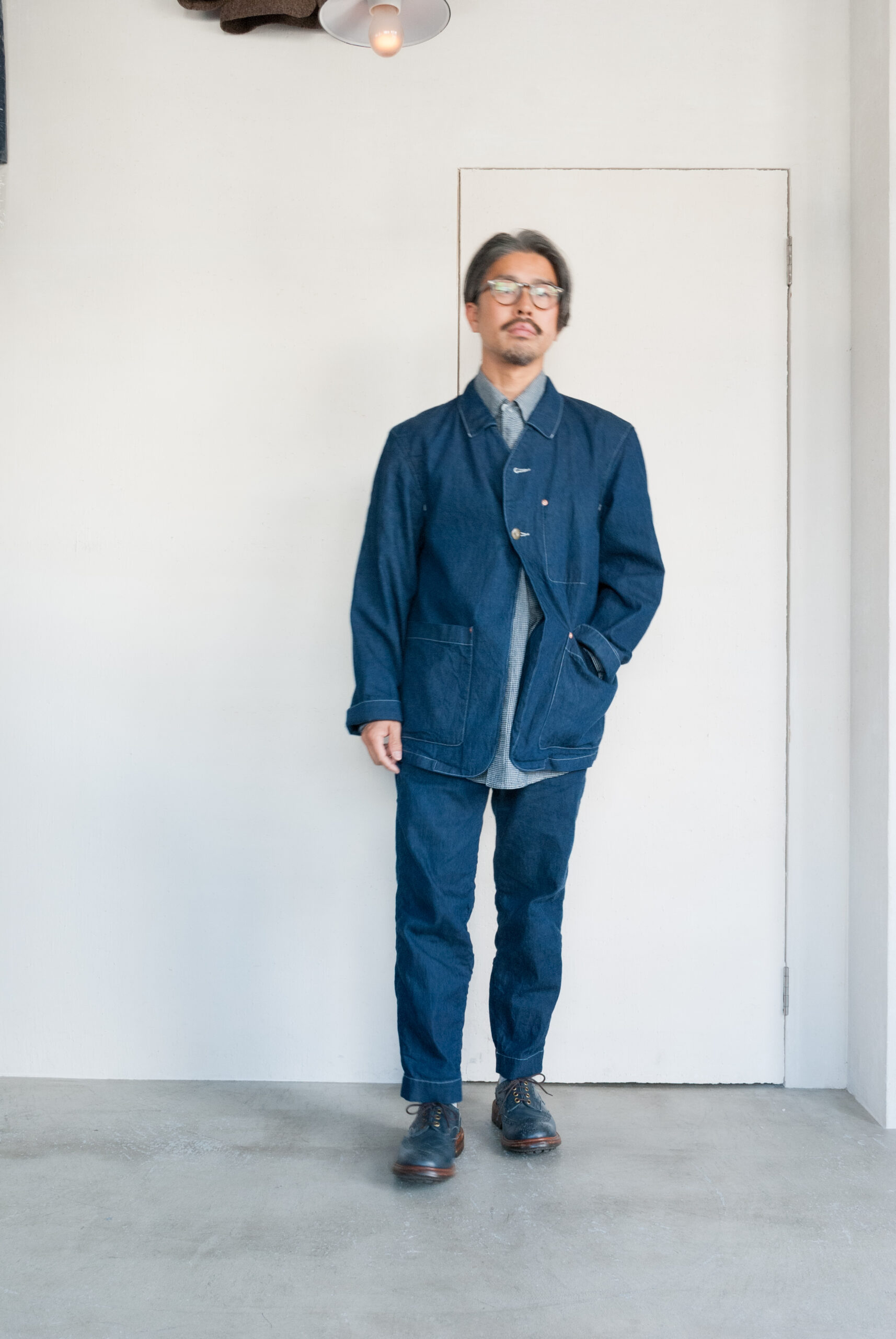 インディゴは何度も染色を繰り返し、仕上げに糊付けした結果、U.S.NAVYのデッキジャケットのようなどんより曇った暗めのブルーですが、洗ってあげると綺麗なインディゴブルーに変わってきます(私物で実証済み)。