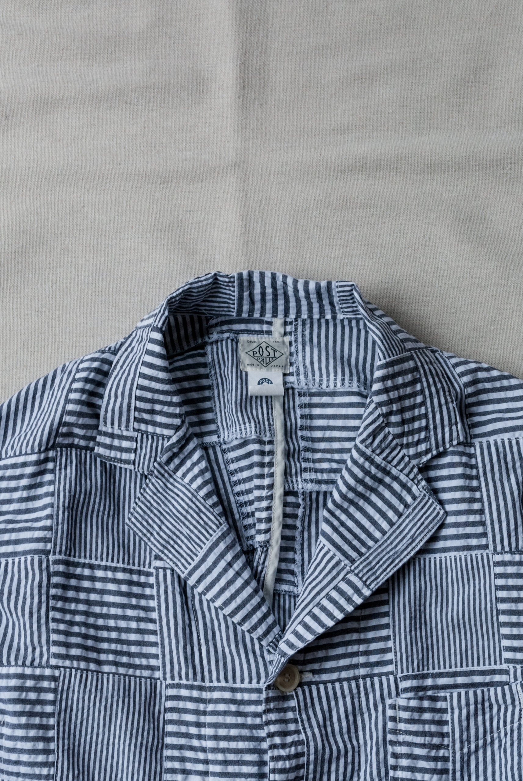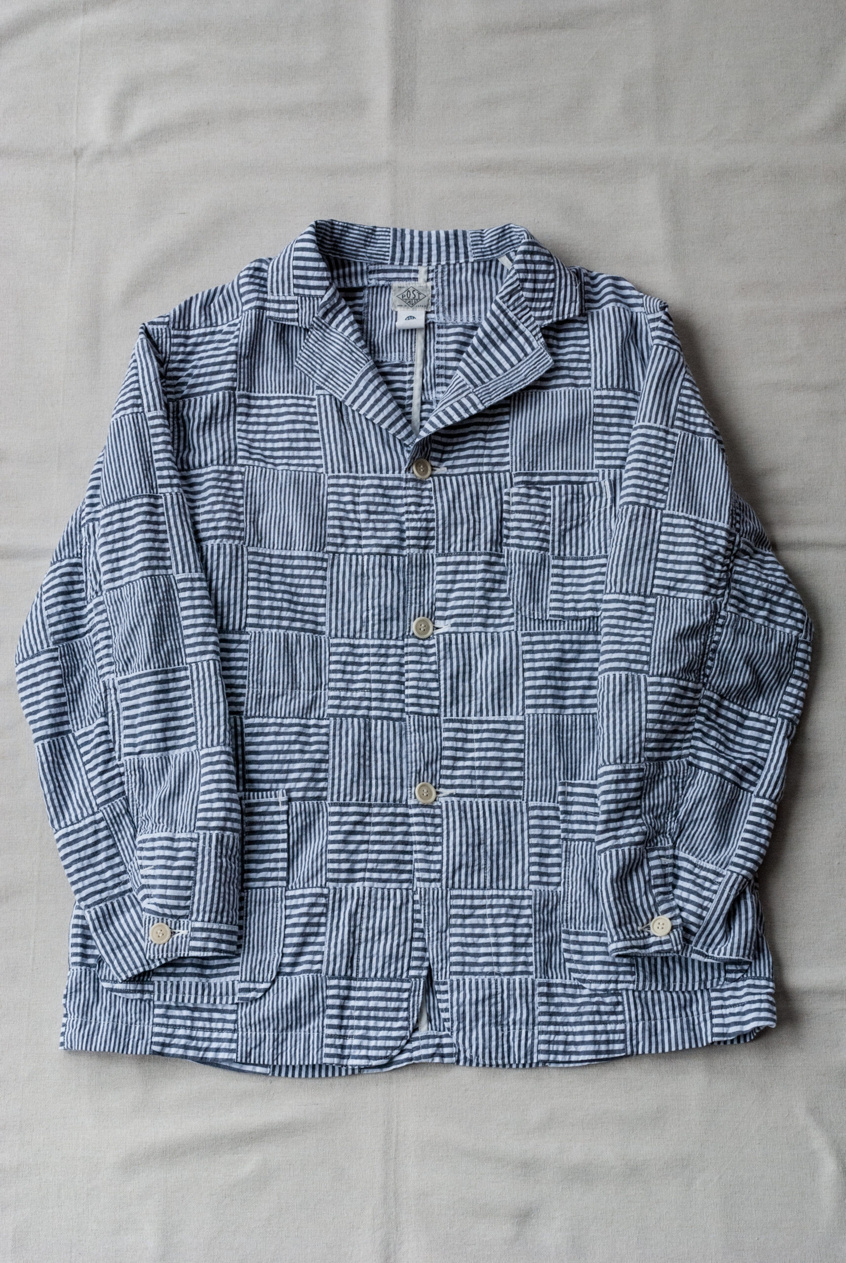 パッチワークシアサッカーは、シアサッカーという表面に凹凸感のある縞状のシボが入っている夏も快適な生地を、パッチワーク状に切り替えた個性的な柄です。
