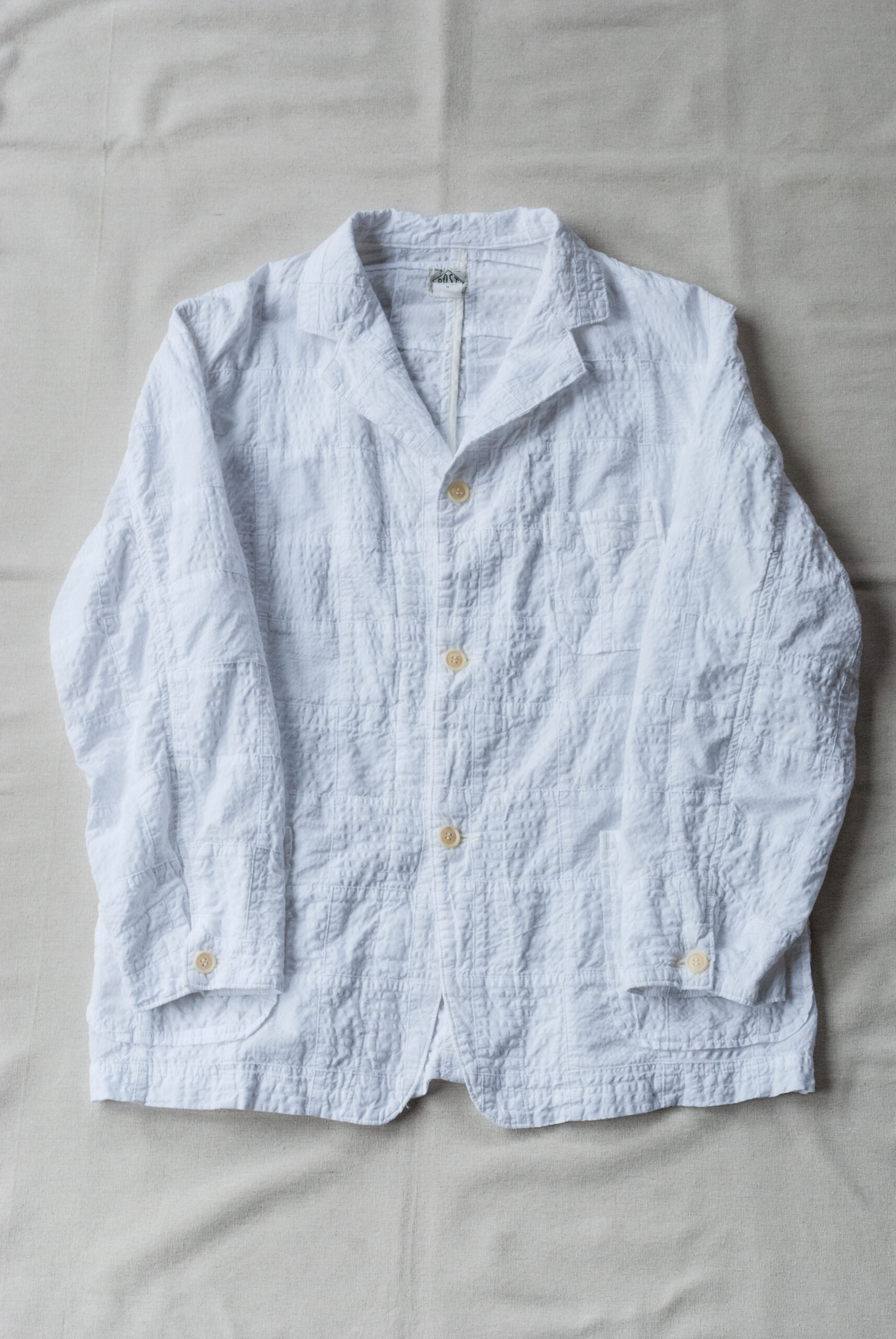 幅広いシーズン着用可能な適度な肉感と、その名の通り『鳥の目』のようなリズム感と凹凸感のあるバーズアイは、イギリスの伝統的なスーツ生地としてウールで織られることの多い生地ですが、今回はコットン100%なのでご家庭で洗濯も可能。