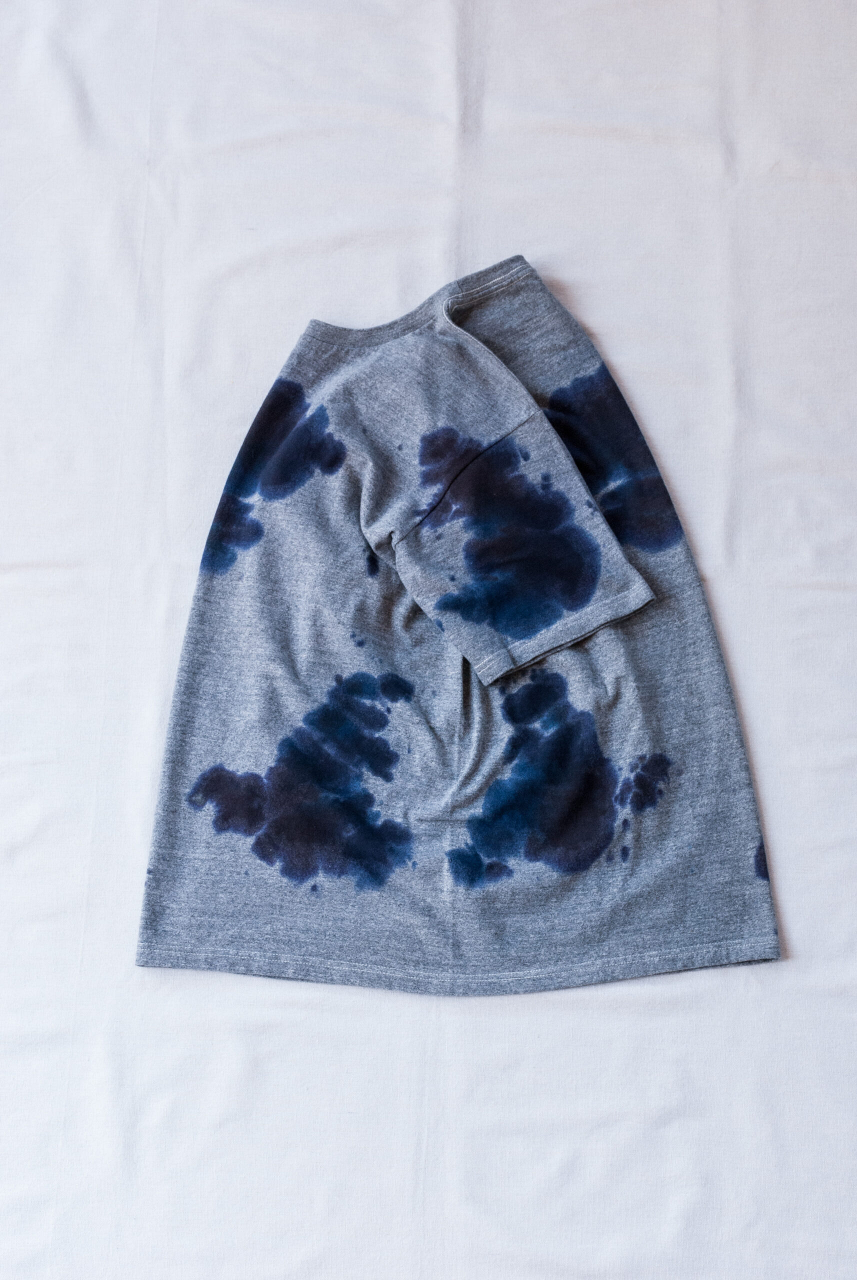 生地の状態で染めているわけではなく、Tシャツの形を作ってから染めているので、組み立てる時にありがちな、変な柄の切れ目がなくとても自然な仕上がりです。
