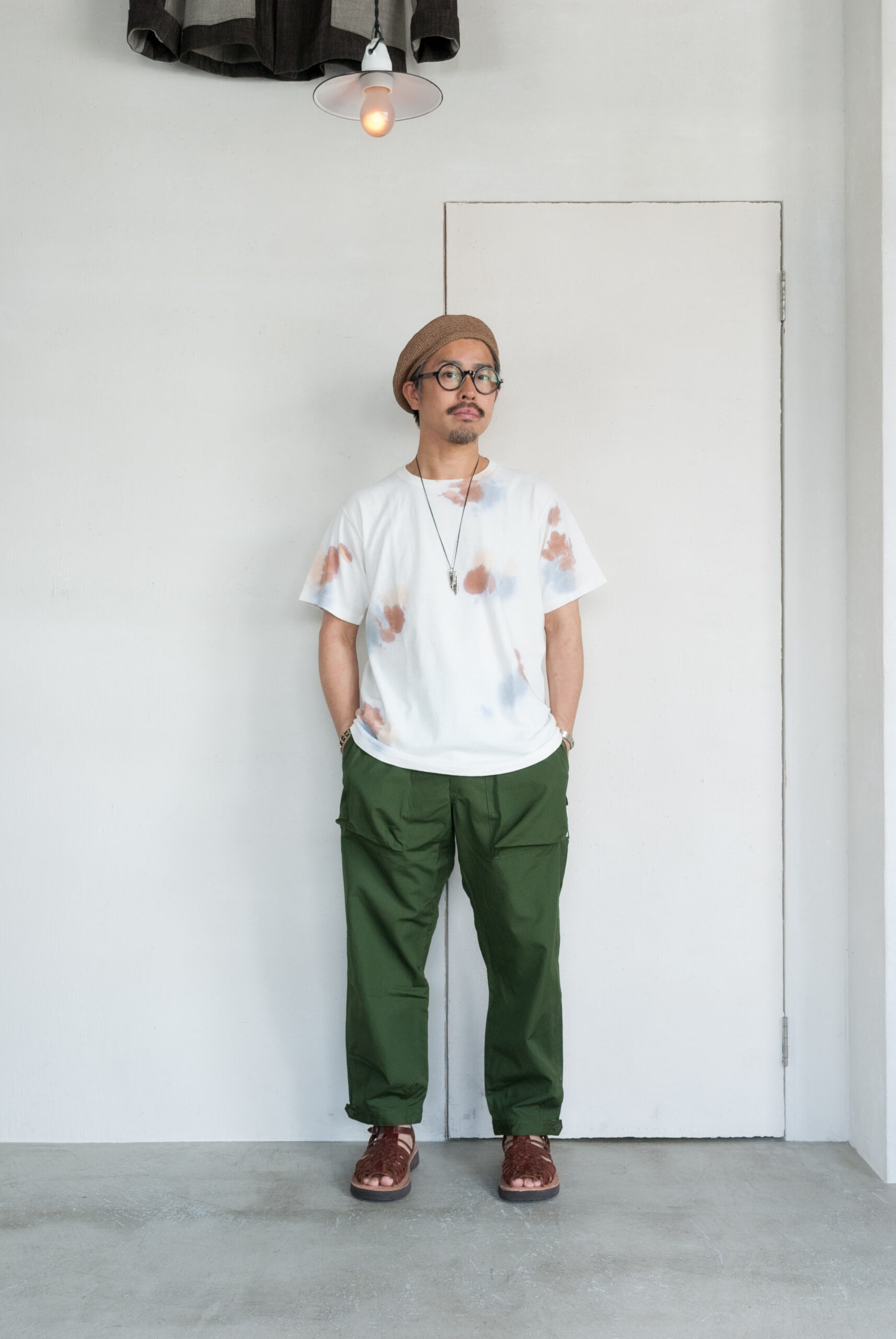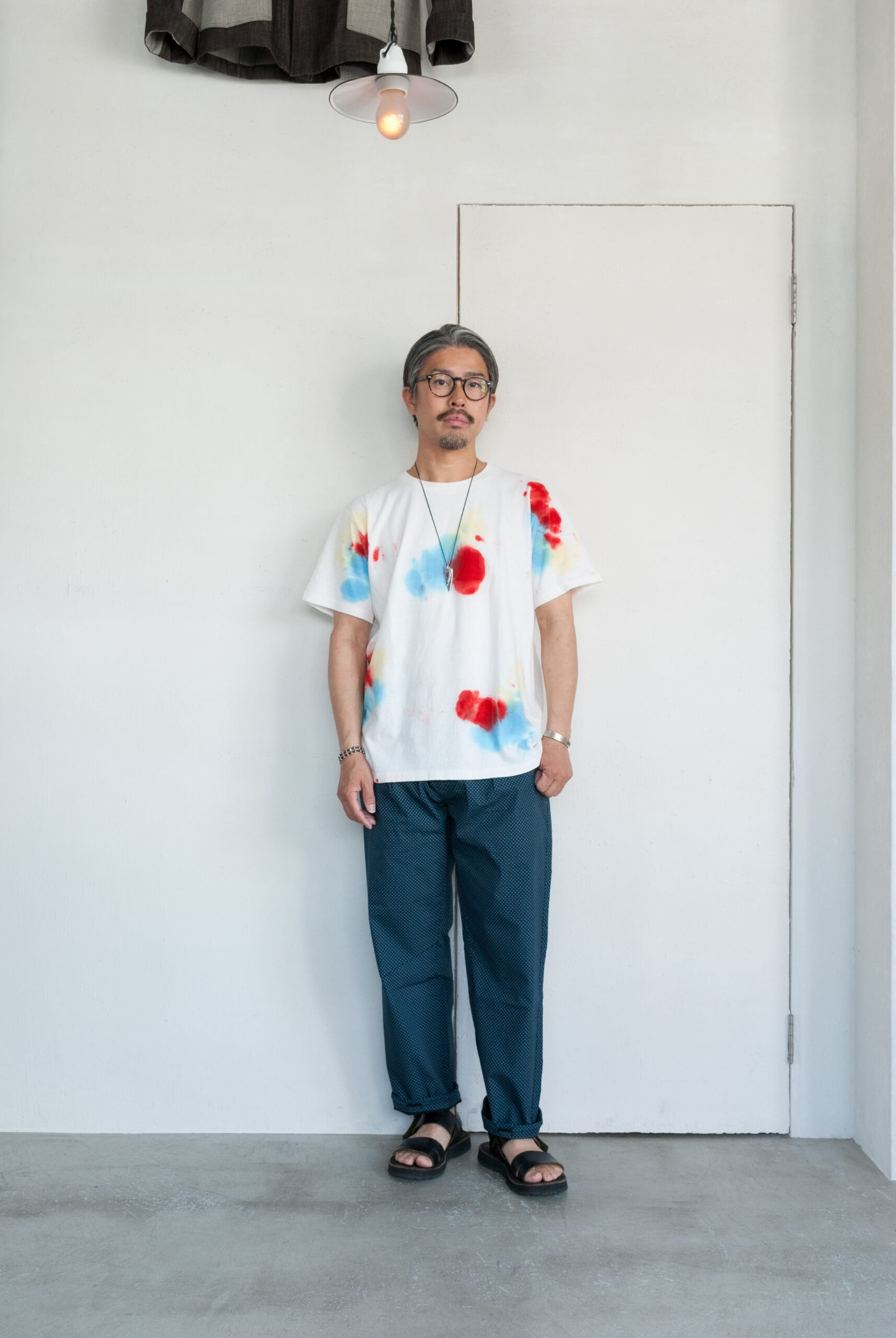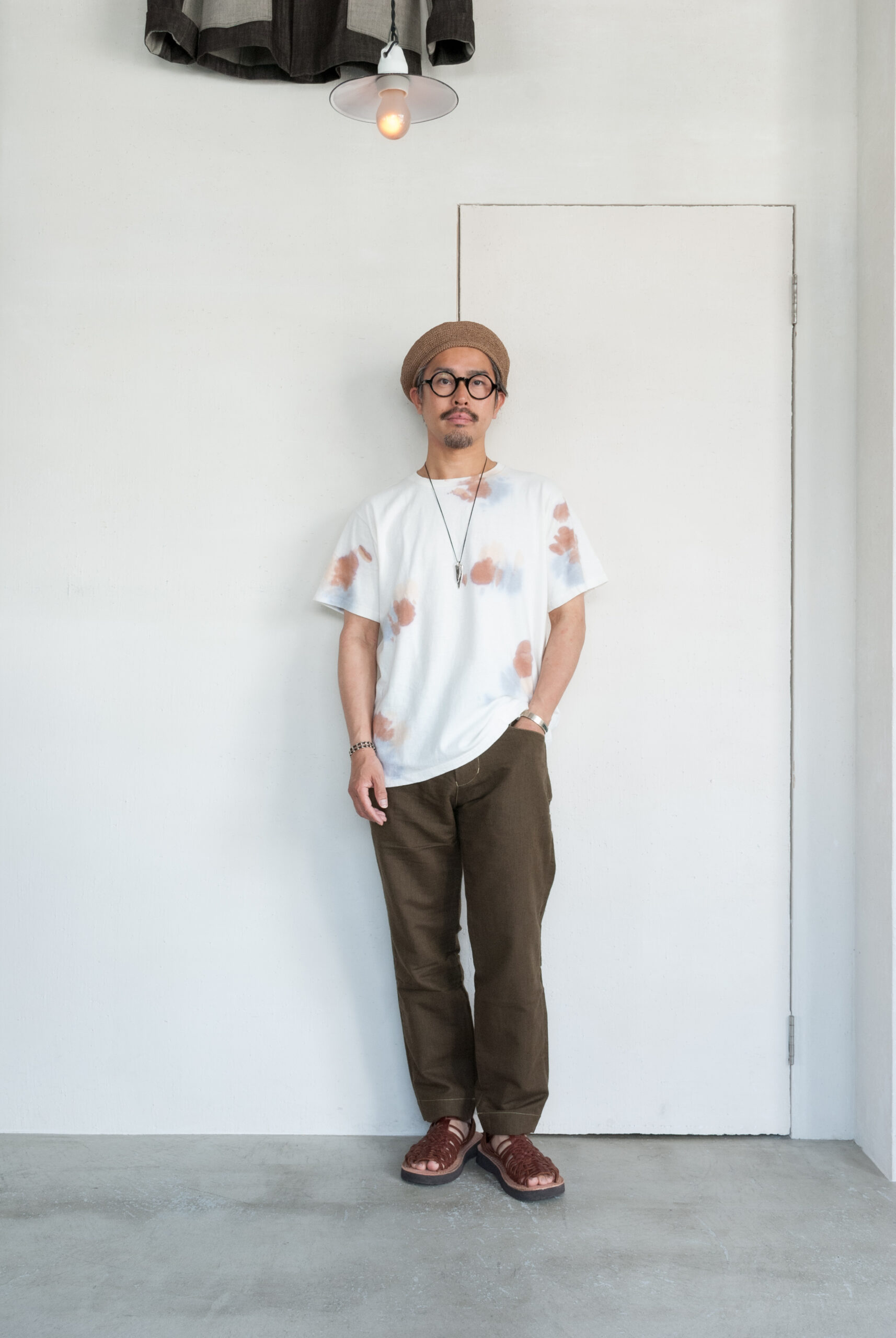 同じものが存在しない手染めのTシャツは、見た目良し、着心地良しな、今シーズン注目の一枚です。