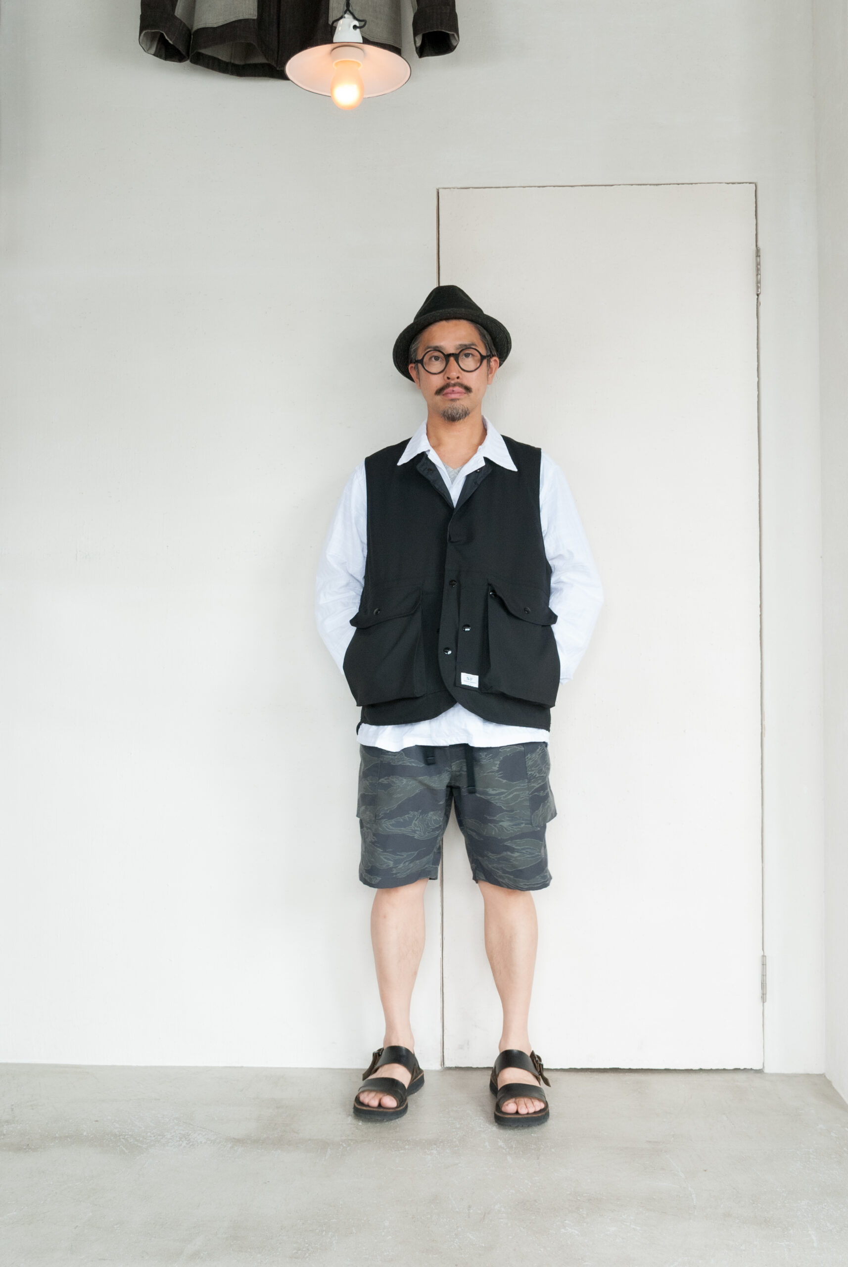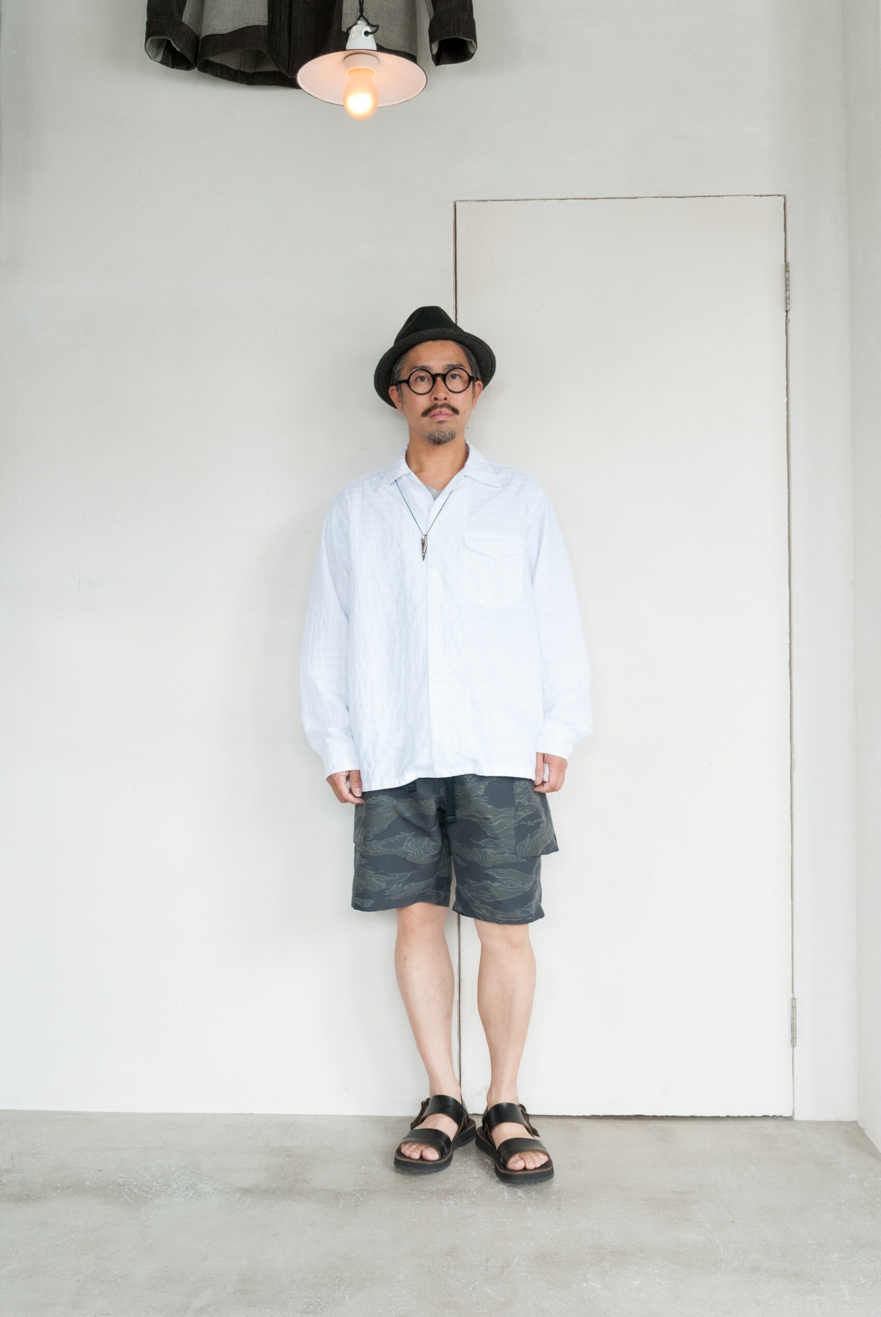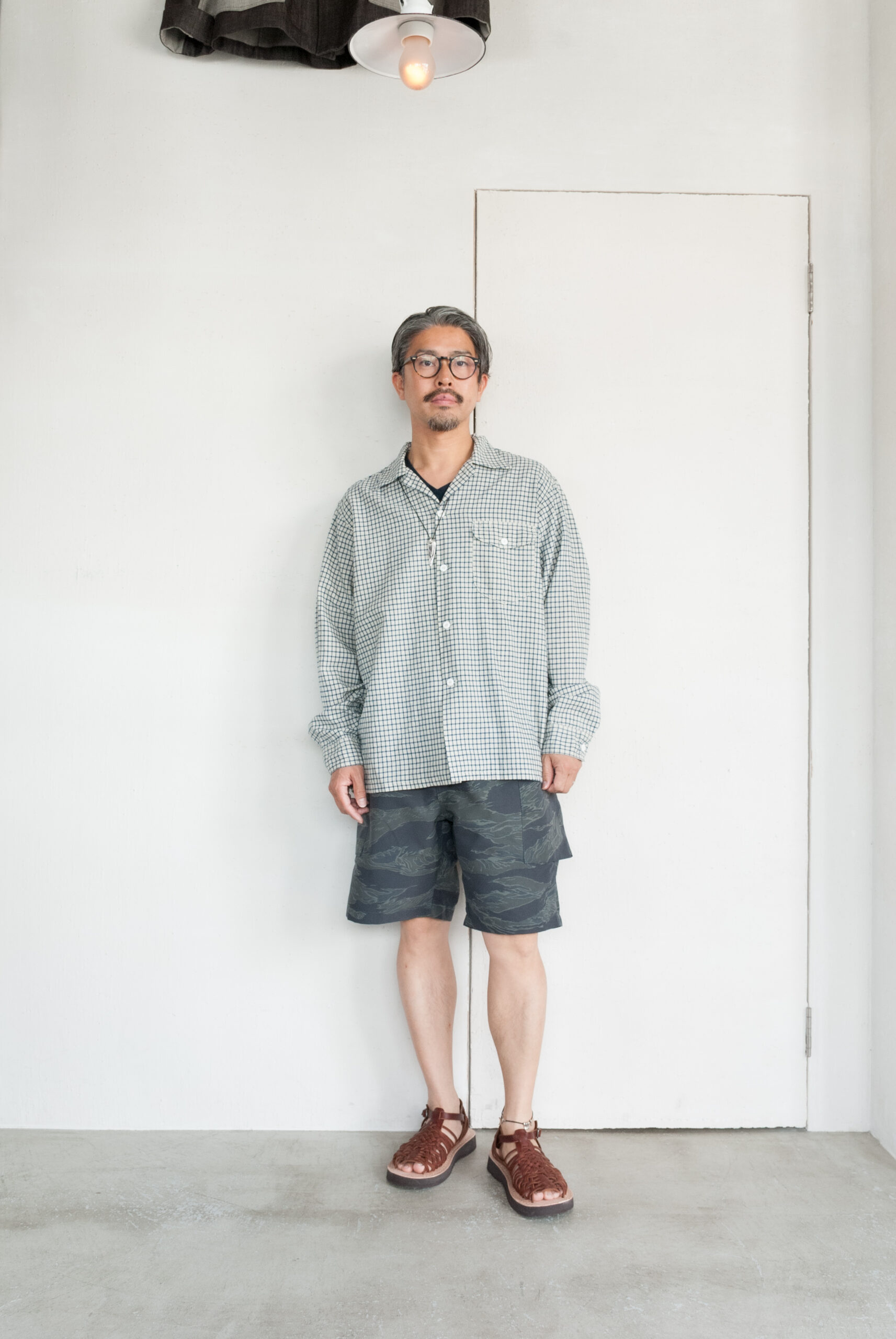 個人的な好みとしては、ショーツに関して、すっきりとしたものよりもポケットが多かったり、短すぎず、裾幅をたっぷり取っている、いわゆる『軍パンをぶった切った』ようなものが好きです。