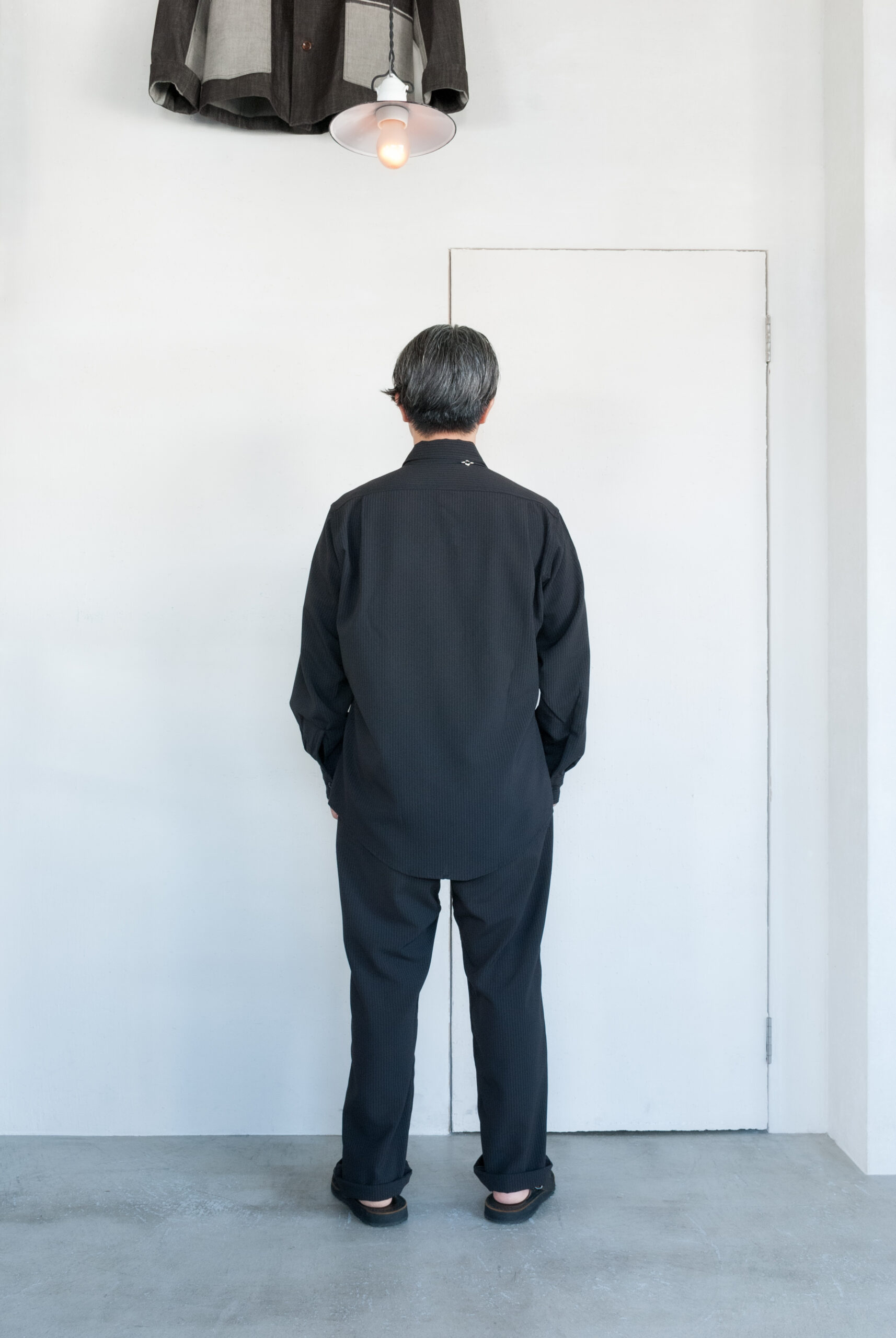 一枚あると便利なシャツ、ライトアウター的立ち位置のFeel Sun Halfは、着丈が少し長めの設定なので、ボタンを全部とめてエプロンをつけている感覚で着ても良いし、ゆったりめの身幅は前を開けて中に着込んでも雰囲気よくおさまります。